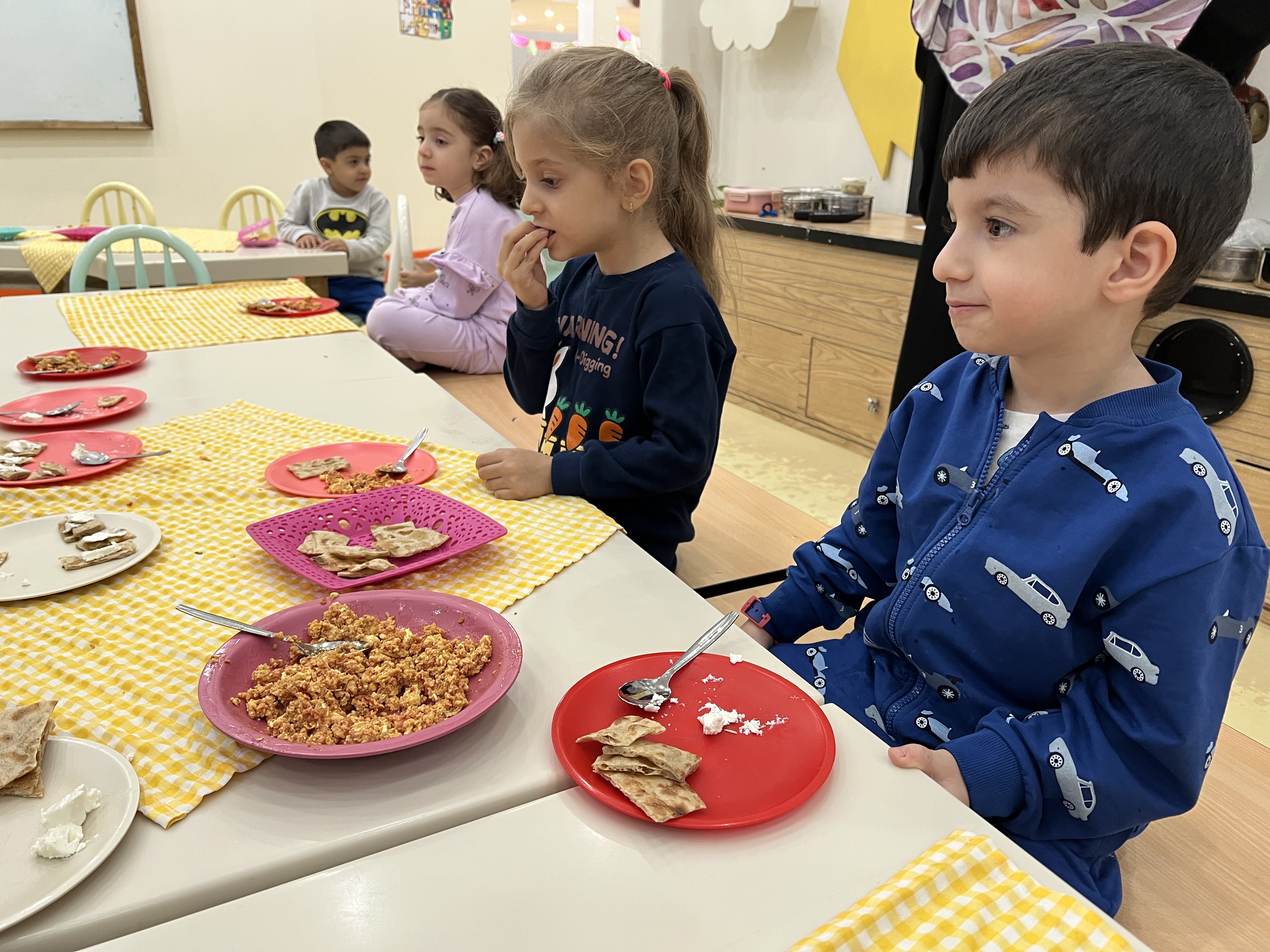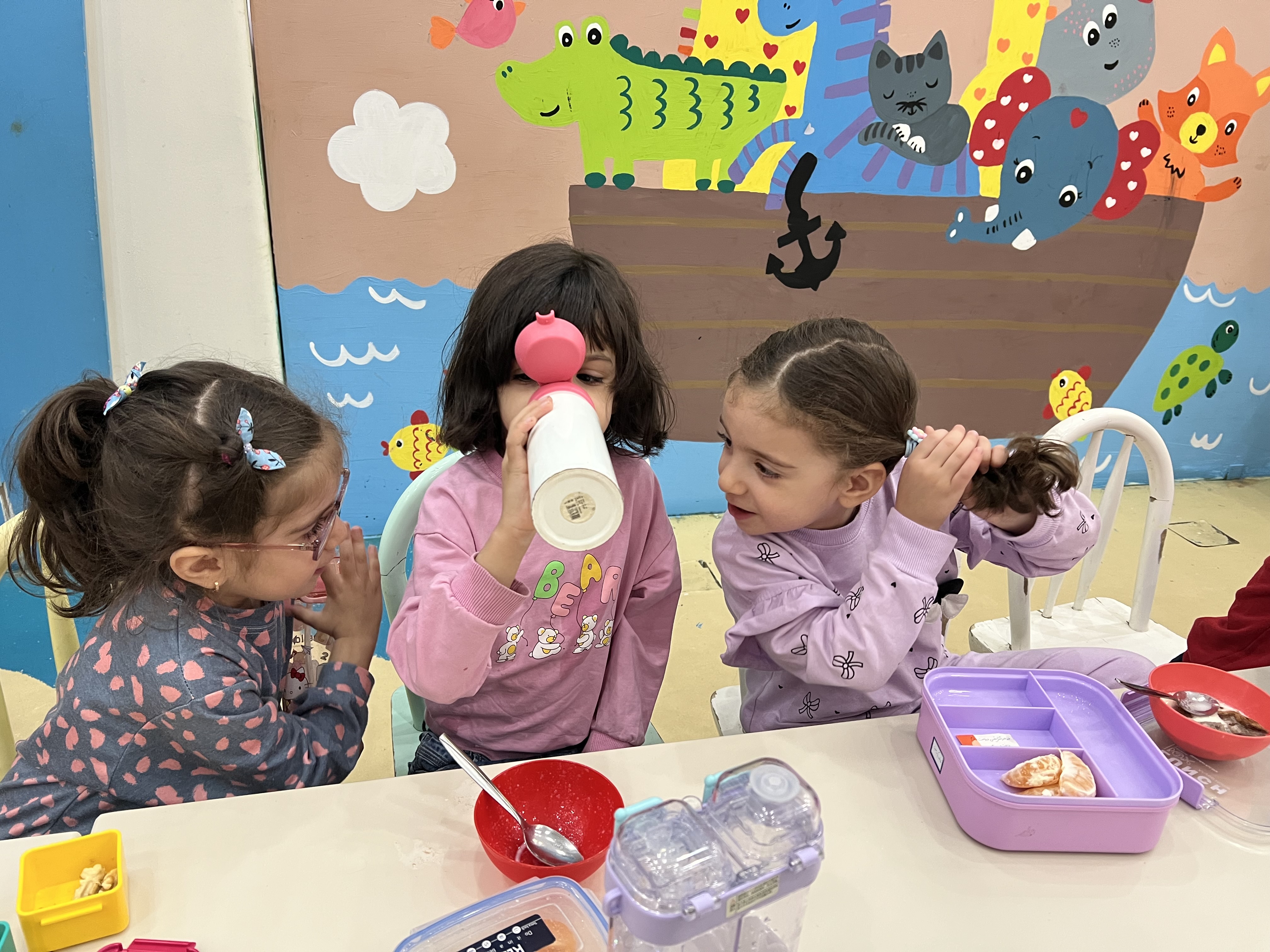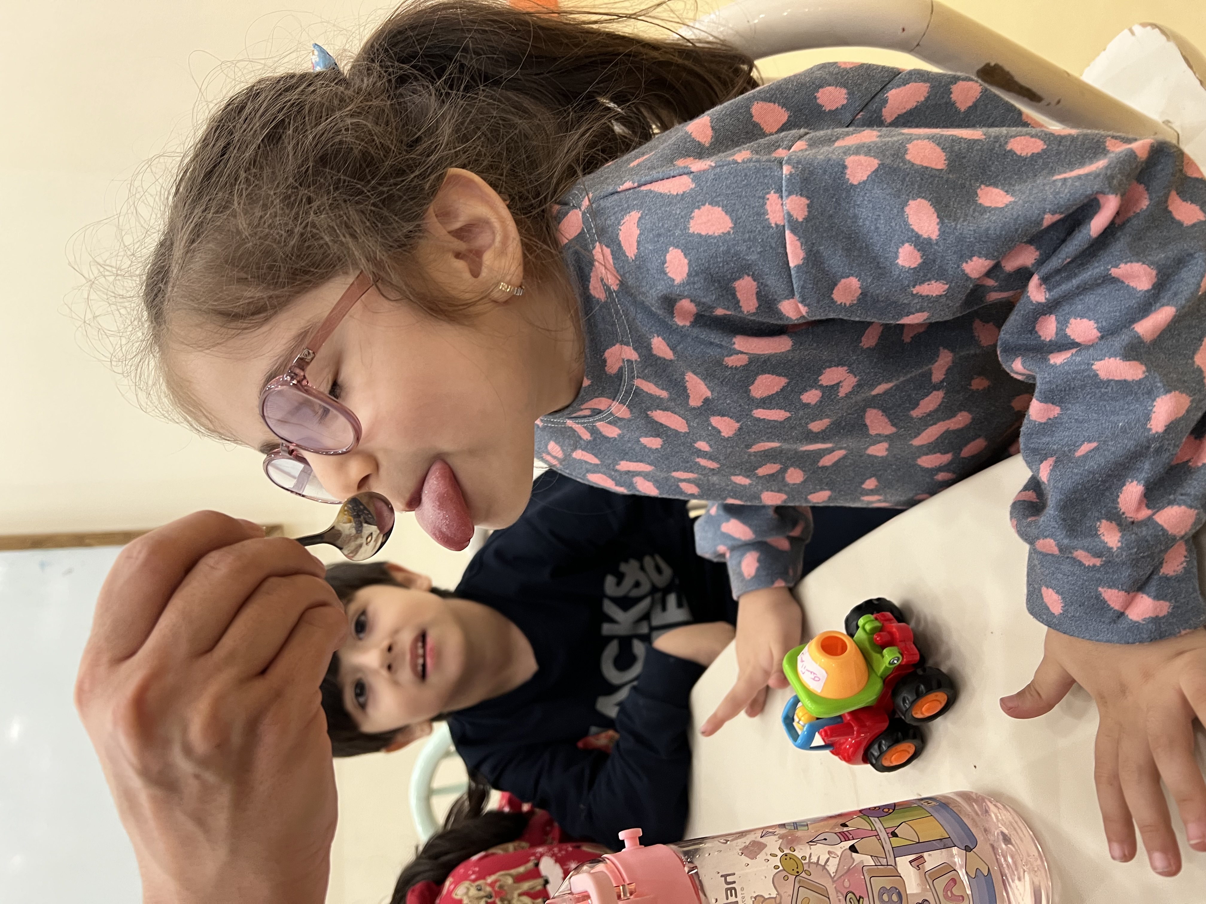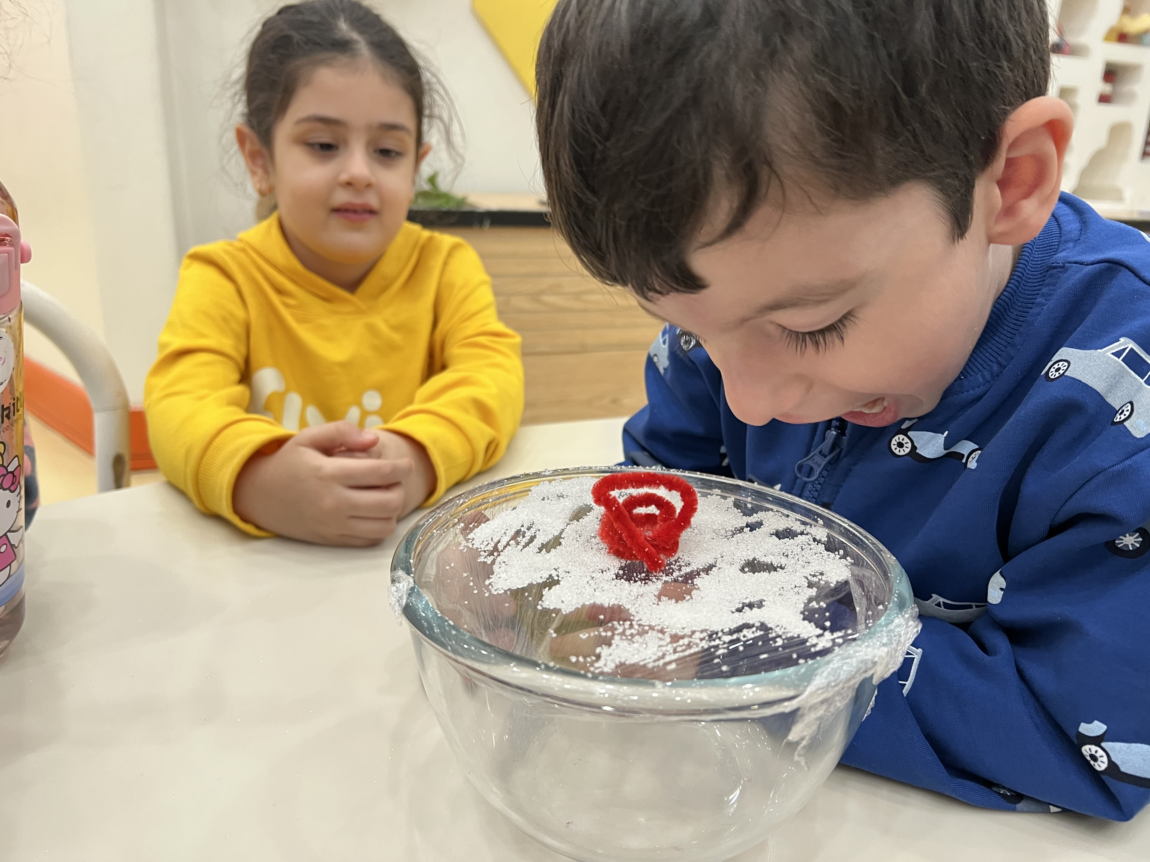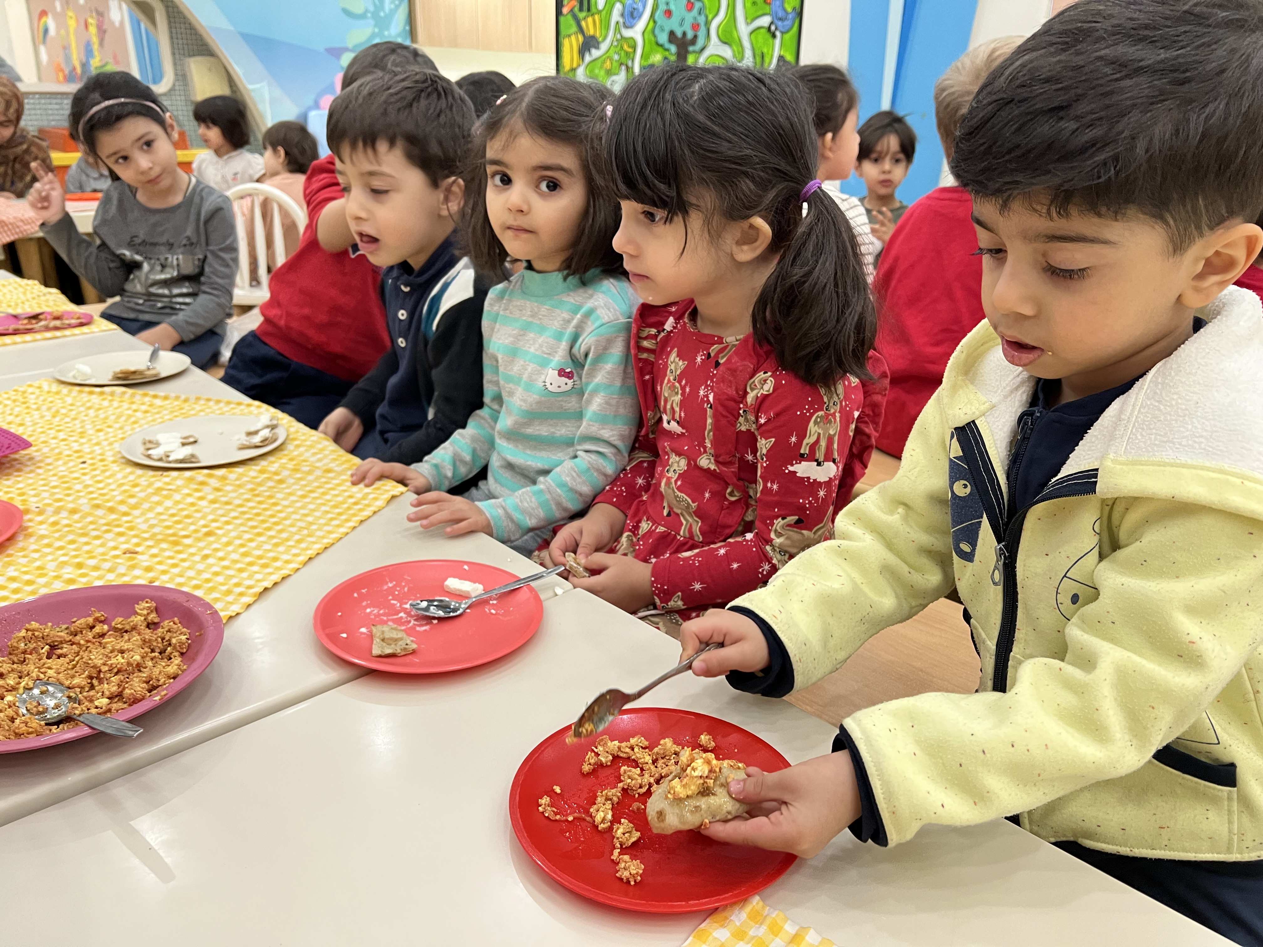 کلاس کاوشگران کوچک که با آزمایش، حس شنوایی🦻🏼 رو شناختیم و با تست یه سری خوراکی با حس چشایی👅 آشنا شدیم و کوشانامه علوم رو کار کردیم.