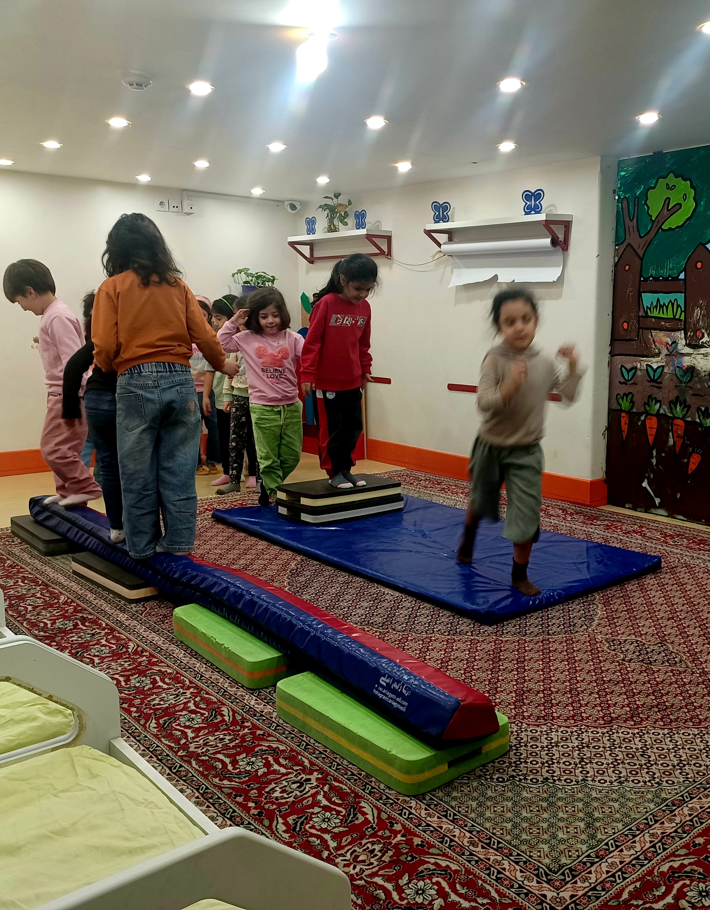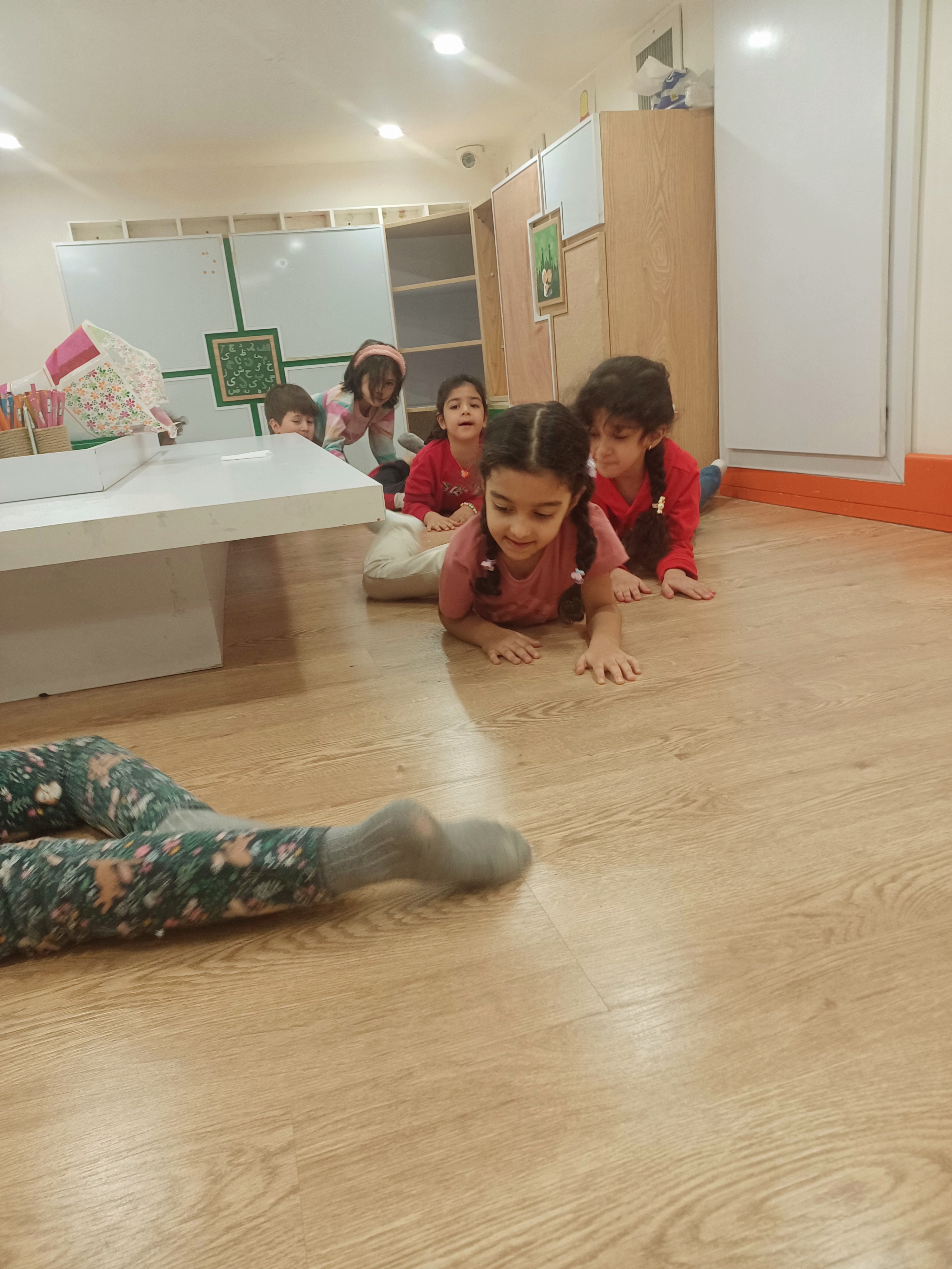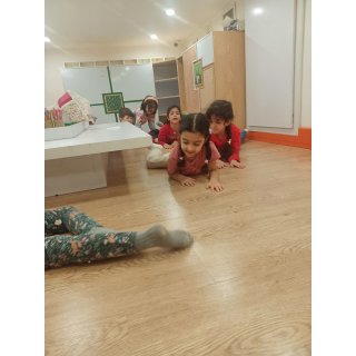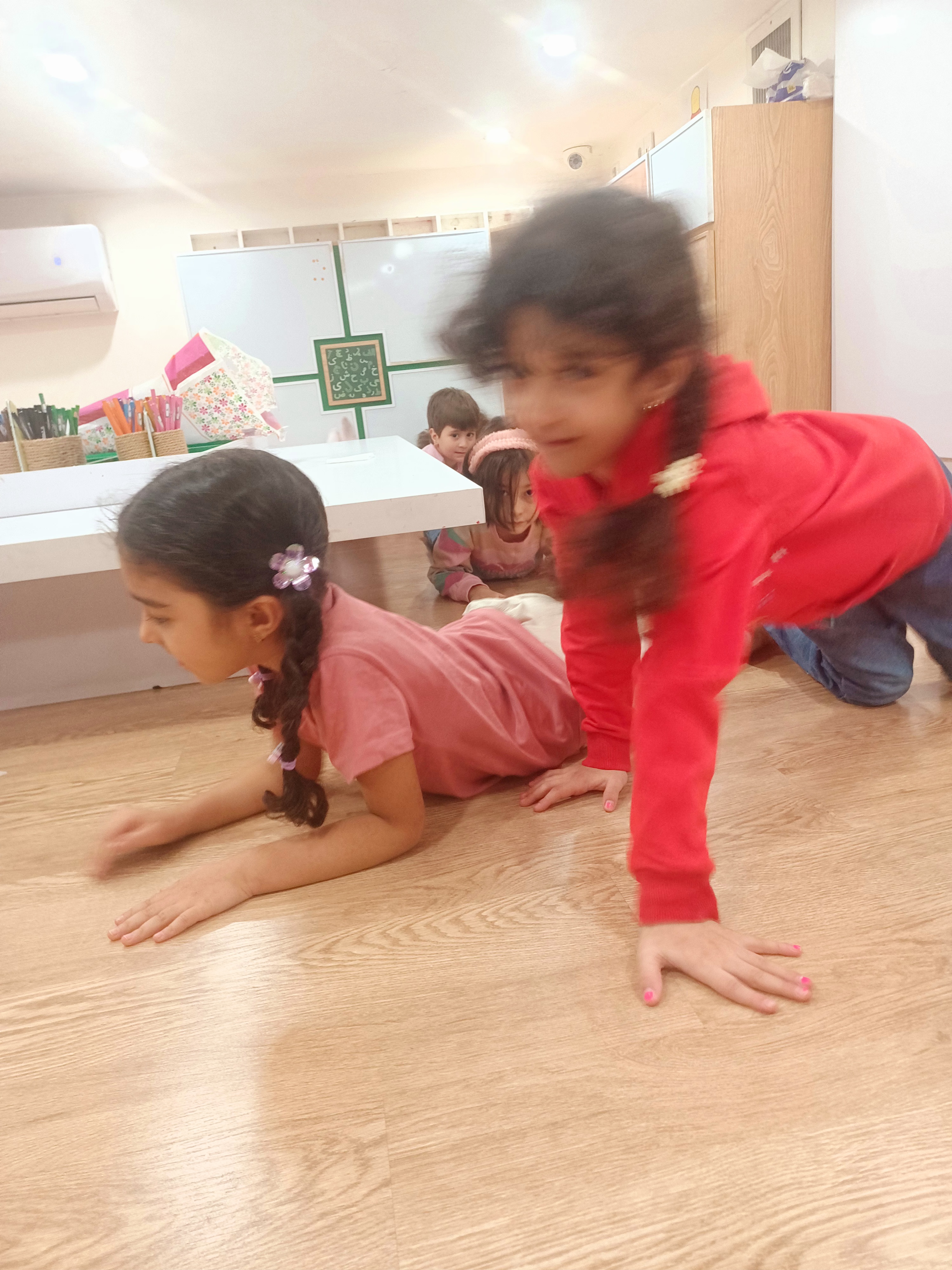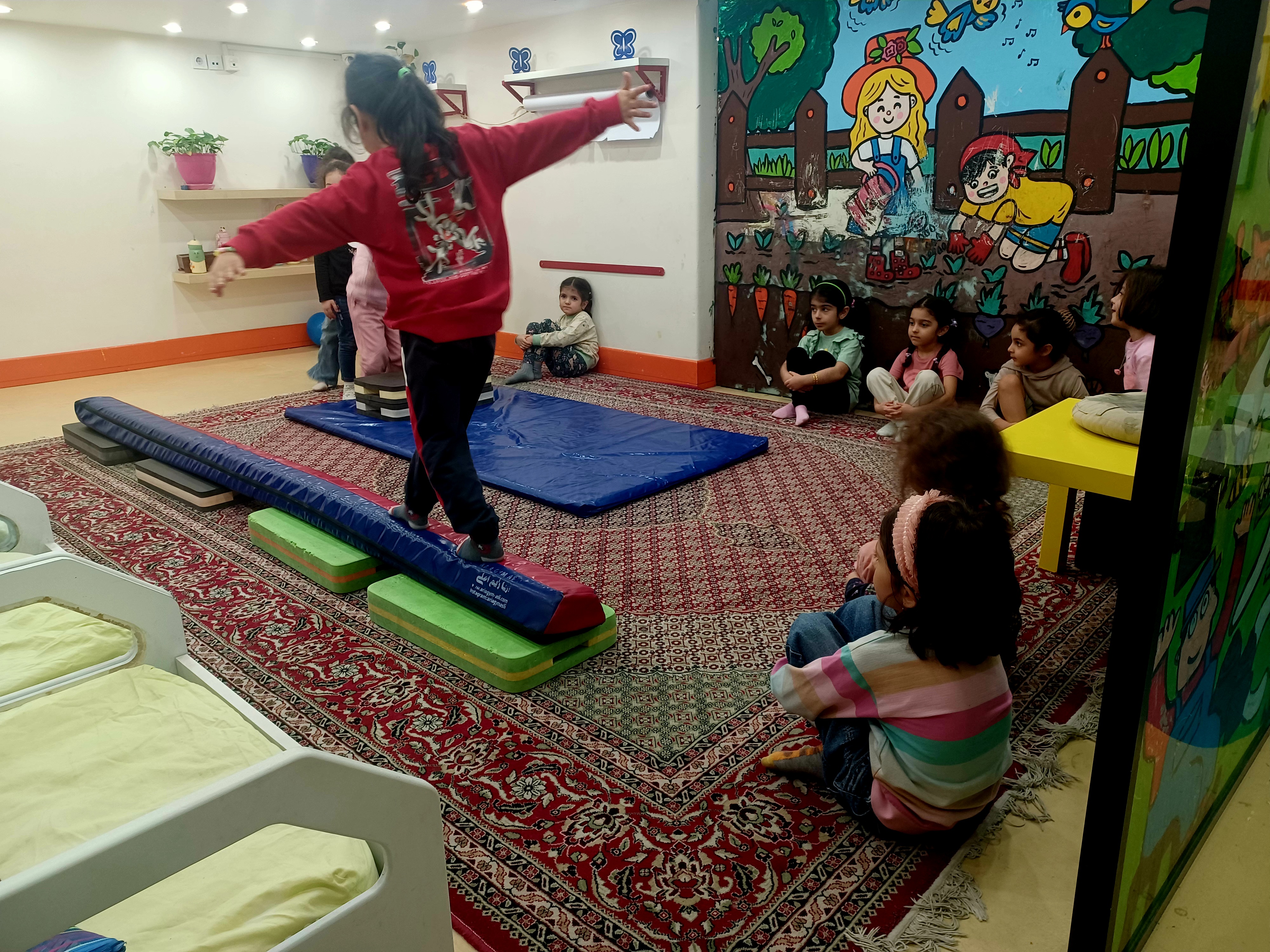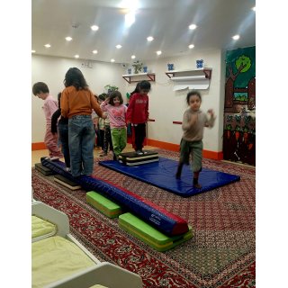 سلام.صبح تون بخیر.جلسه اول شنایی با بچه ها و قوانین کلاس ورزش.آموزش حرکات نرمش و انجام بازی های حرکتی.جلسه دوم نرمش.انجام حرکات چهاردست و پا و سینه خیز برای فعال شدن دو نیم کره مغز و هماهنگی دست و پا.جلسه سوم نرمش.انجام حرکات تقلیدی حیوانات مانند قورباغه و خرس و خرچنگ.آموزش چرخش روی یک پا برای افزایش تعادل.جلسه چهارم.نرمش.تمرین حرکات جلسات قبل.آموزش پرش پاباز و انجام از روی استپ ها.