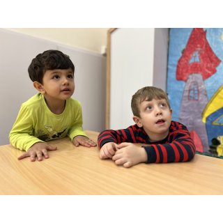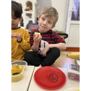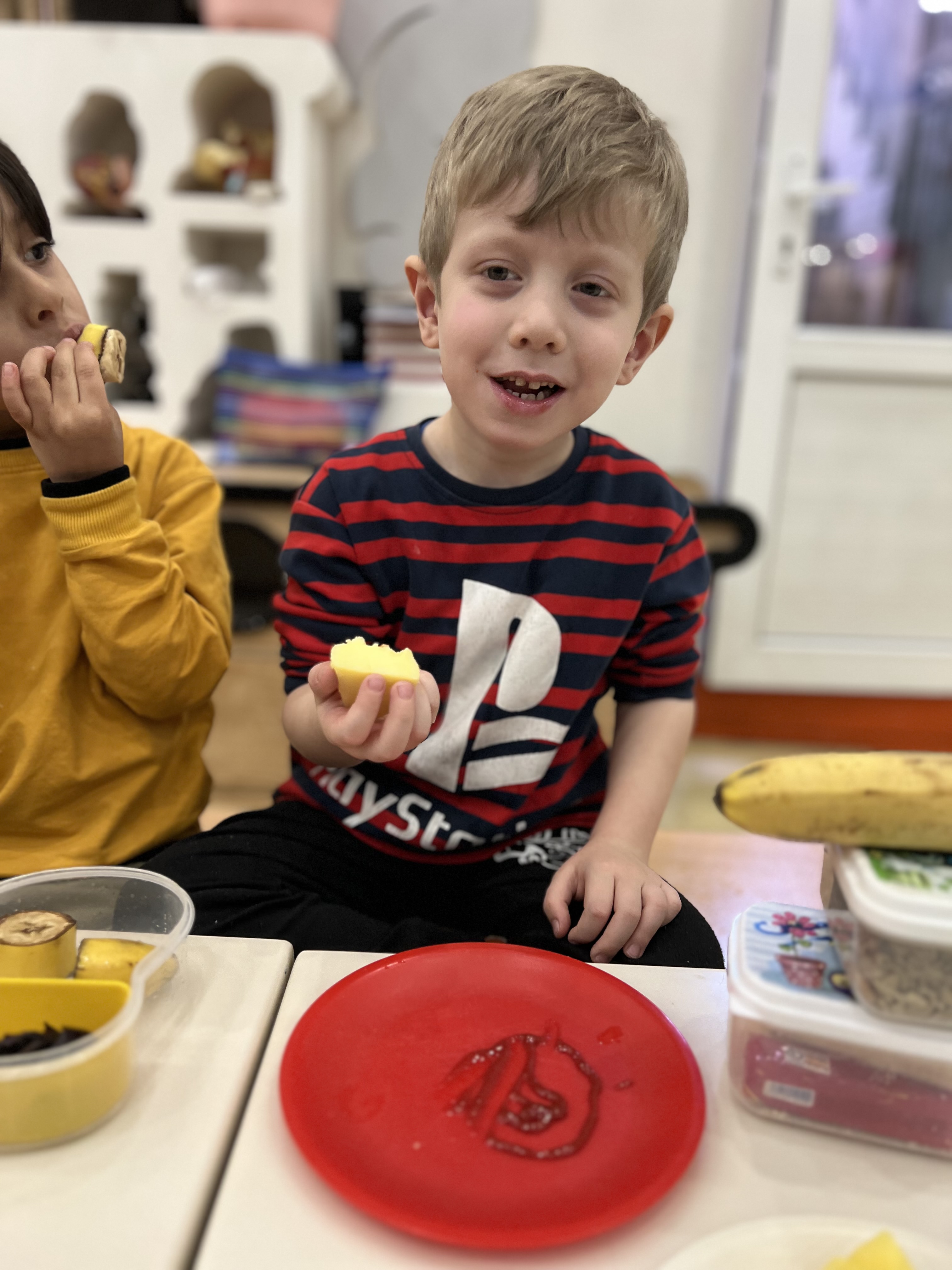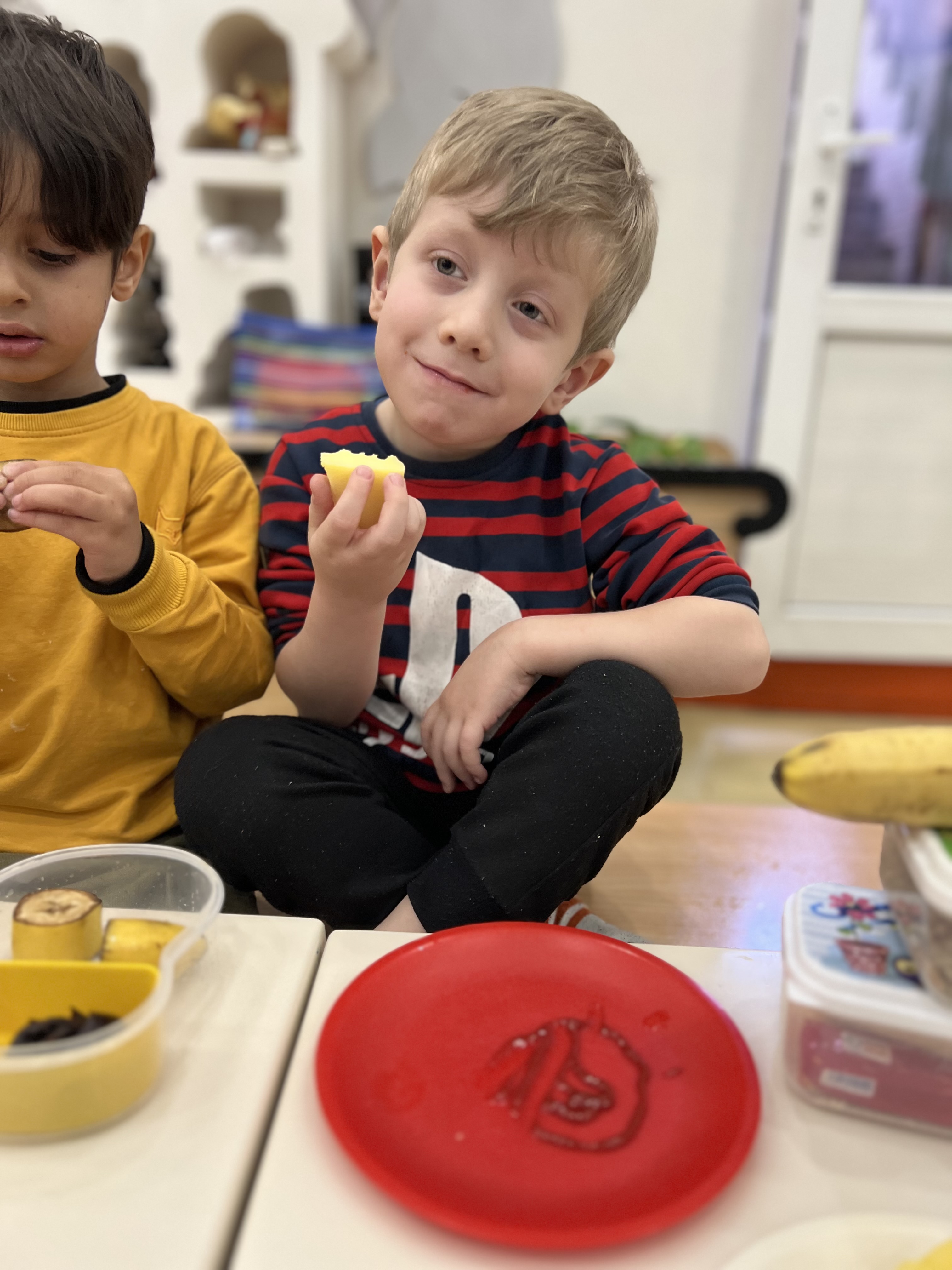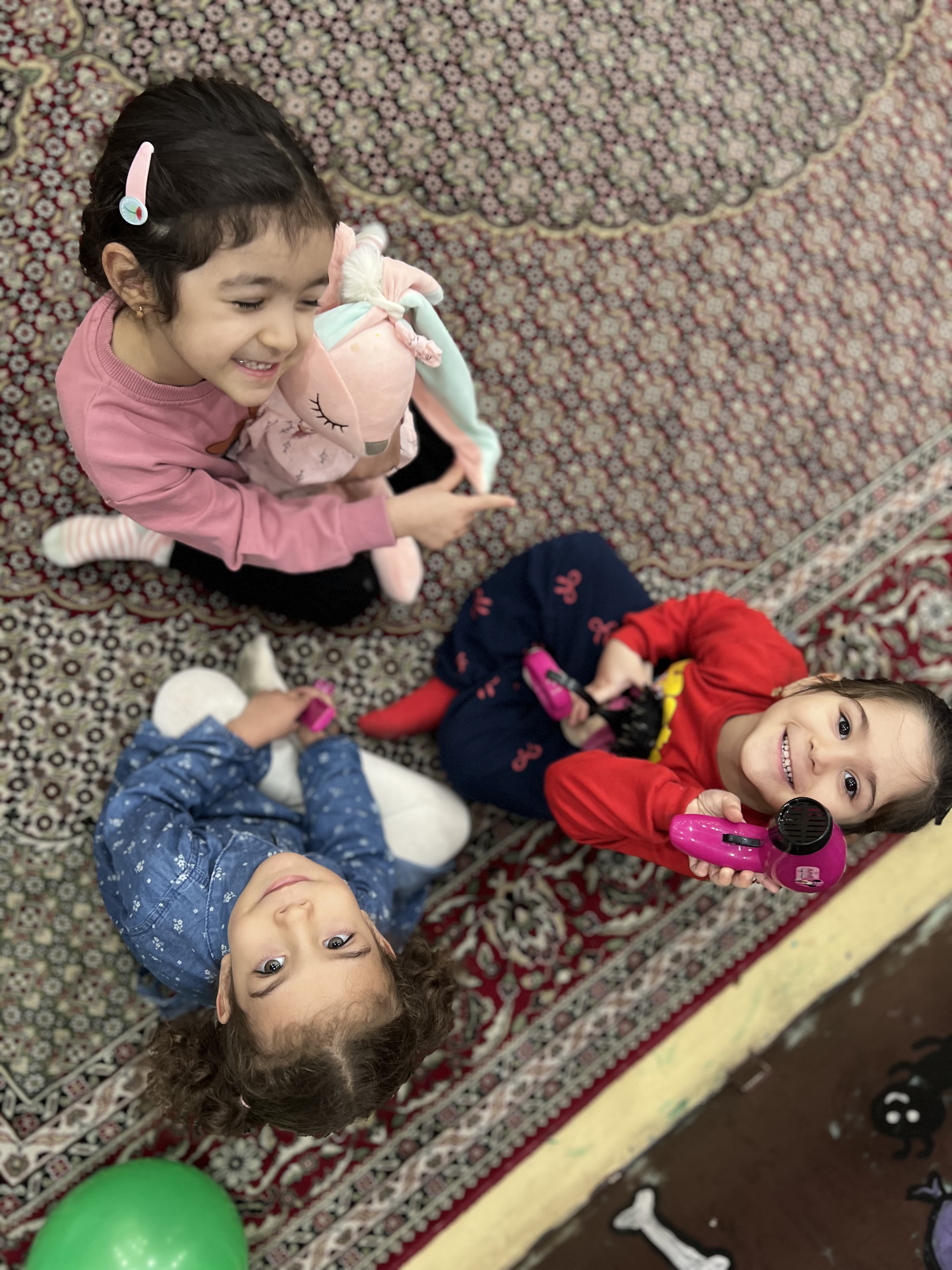 صبح وقتی اومدیم اول وسایلمون و اسباب بازی هامون رو سر جاش گذاشتیم و رفتیم سرسره بازی کردیم باهم 🛝🛝🛝 بعد رفتیم صبحگاه پیش خاله هانیه شعر خوندیم، ورزش کردیم ، بازی کردیم و قران خوندیم 🎤🎼