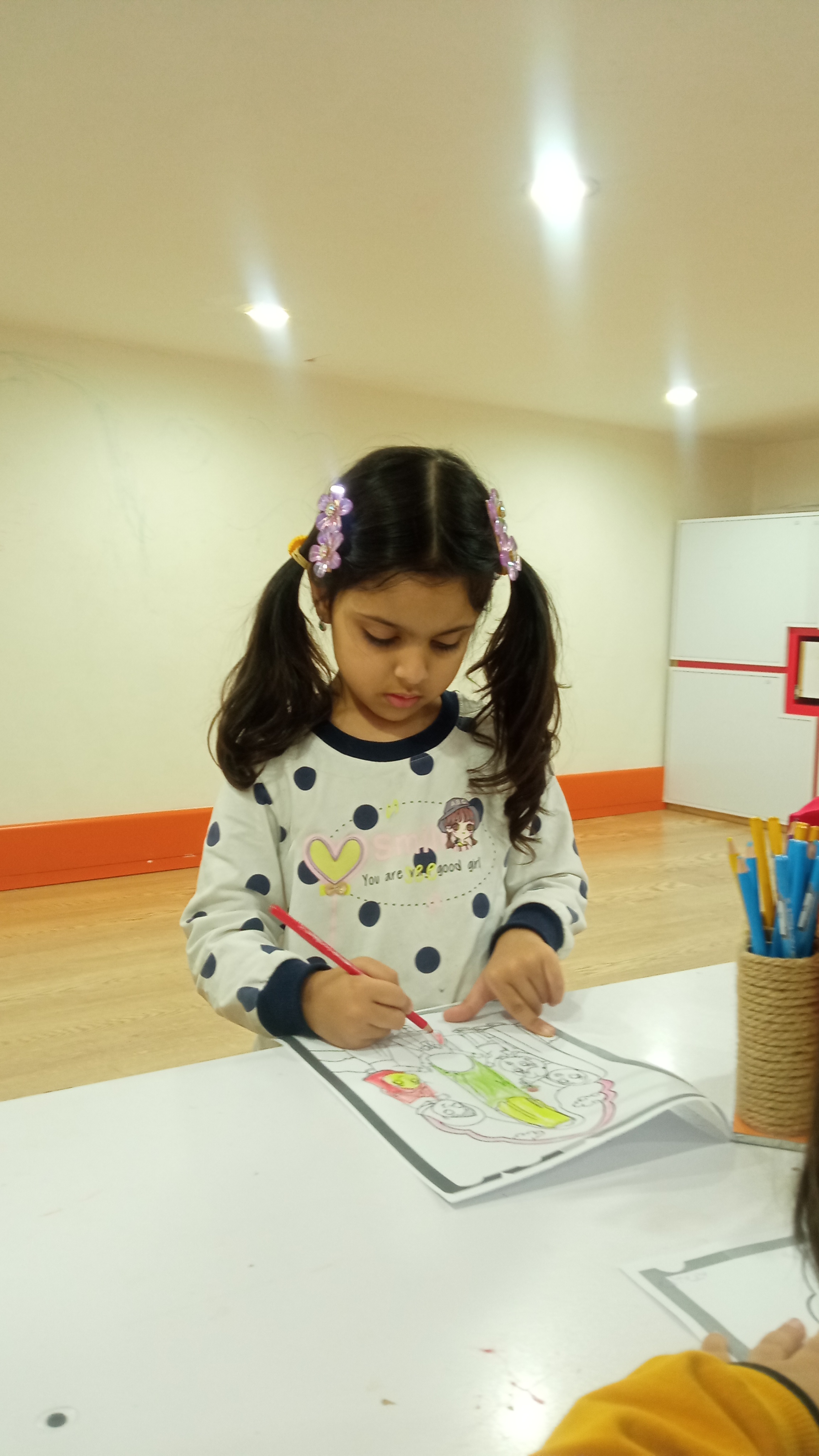 بعد از اون کلاس سخنوری داشتیم و کتاب کیک امانتی رو شنیدیم و راجع بهش صحبت کردیم و بعد نقاشیشو کشیدیم📚🖍✏️
