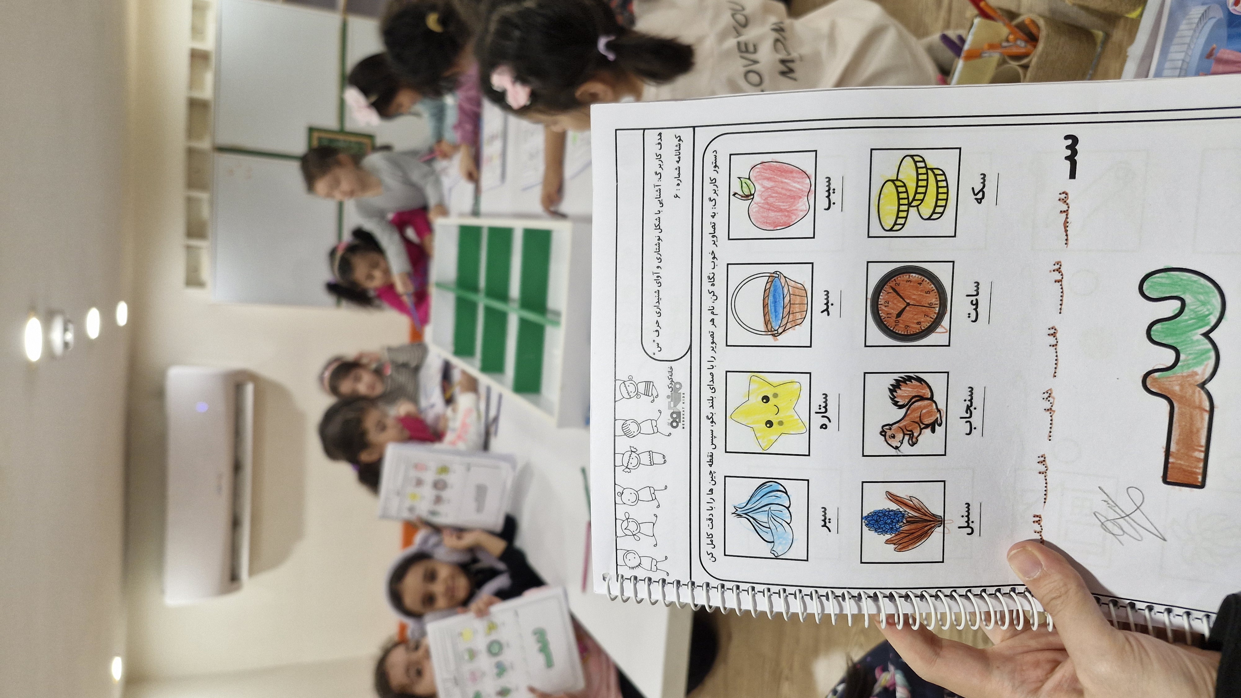 🌸 کلاس آواورزی حرف س را یاد گرفتیم و مثال هایی مثل سلمان و سارا و ستاره⭐و سوسک و...زدیم بعد کاربرگش رو حل کردیم و بعد مار شدیم و صدای مار رو در آوردیم 🐍