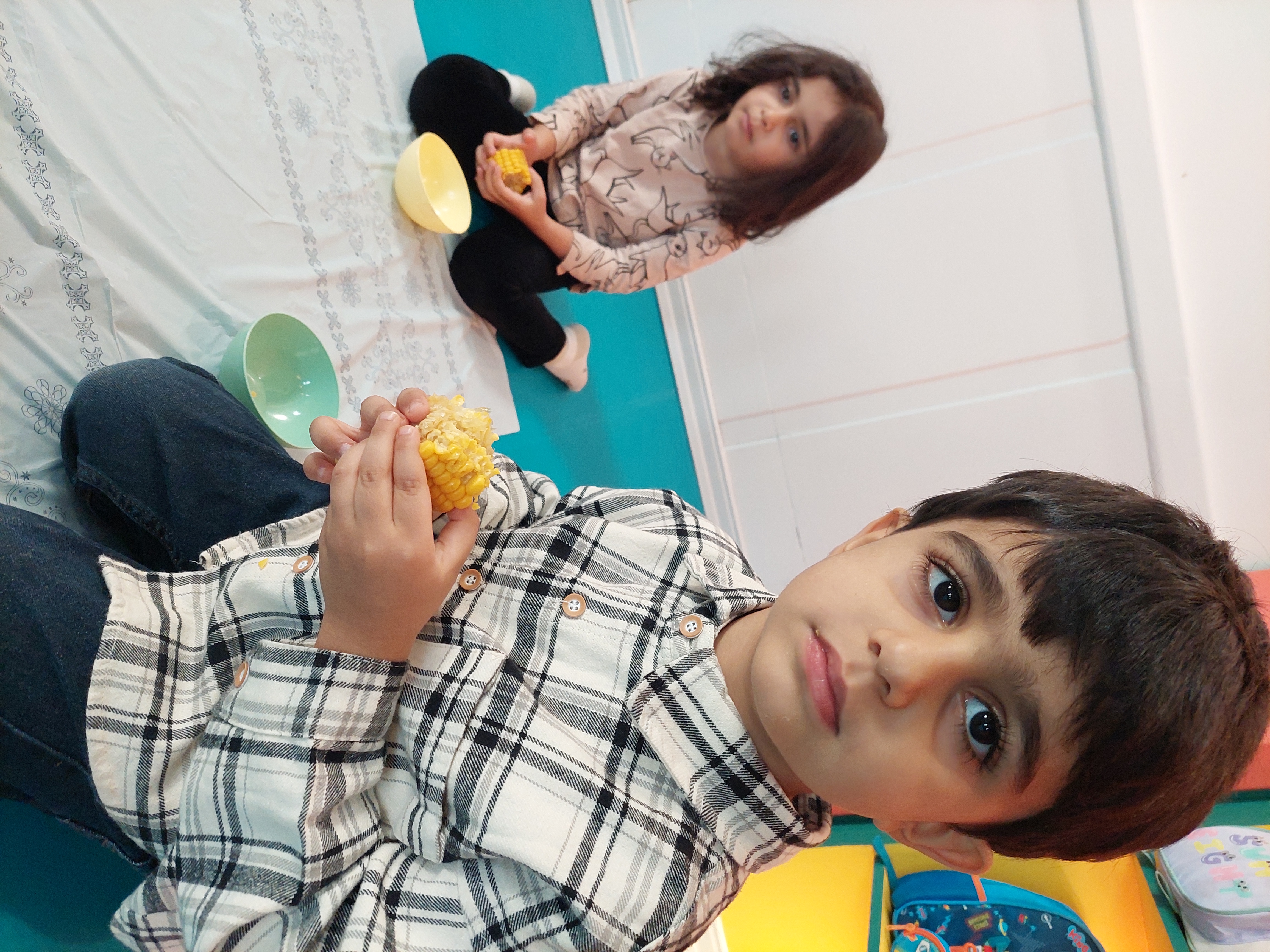لاله هامون دیگه خسته شده بودند که باید کمی انرژی میگرفتند، پس رفتیم میان وعده که بلال بود میل کردیم🌽