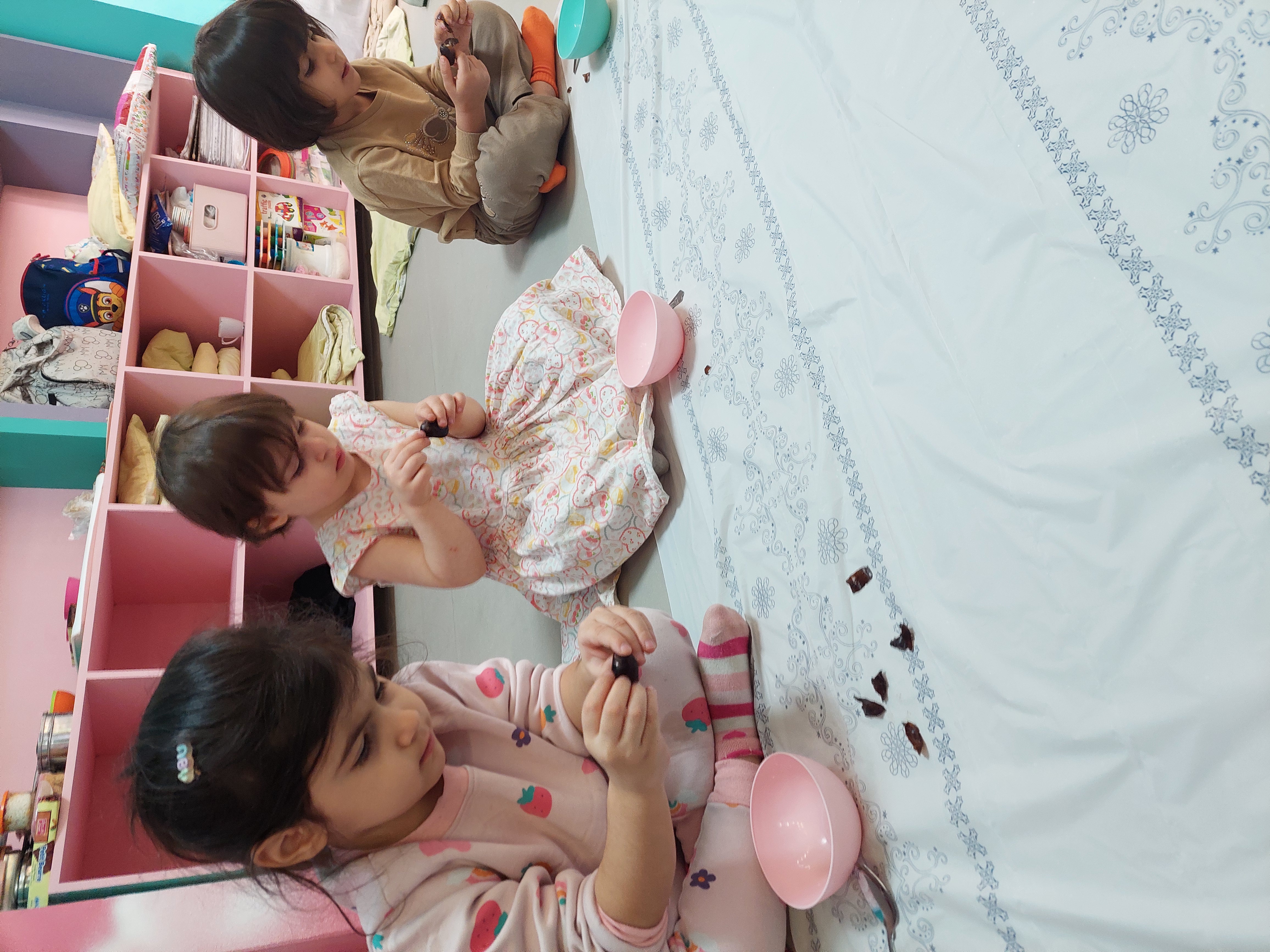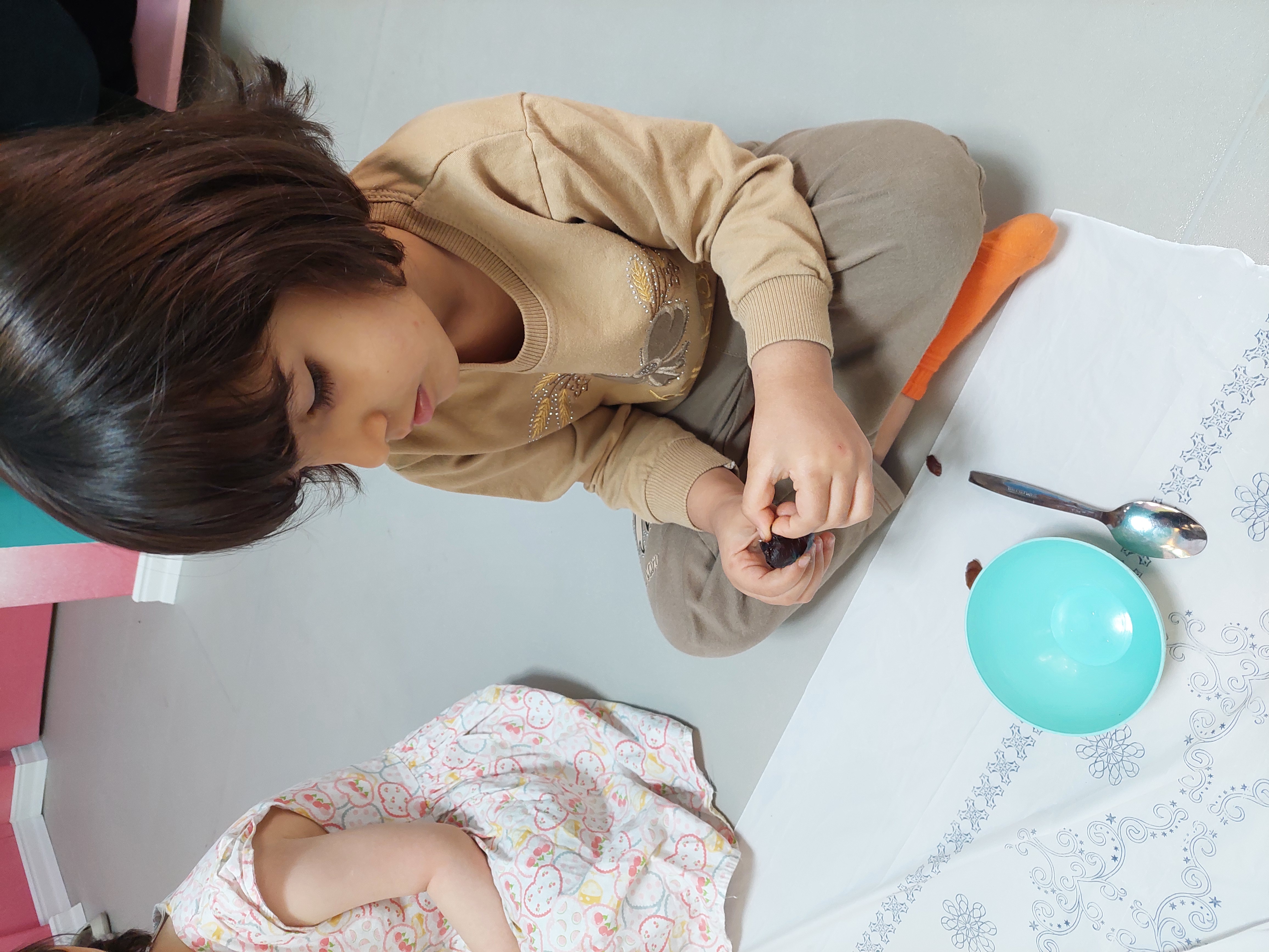 بعد نوبت رسید به میان وعده خوشمزمون که توپک خرمایی بود که خودشون درست کرده بودند😍