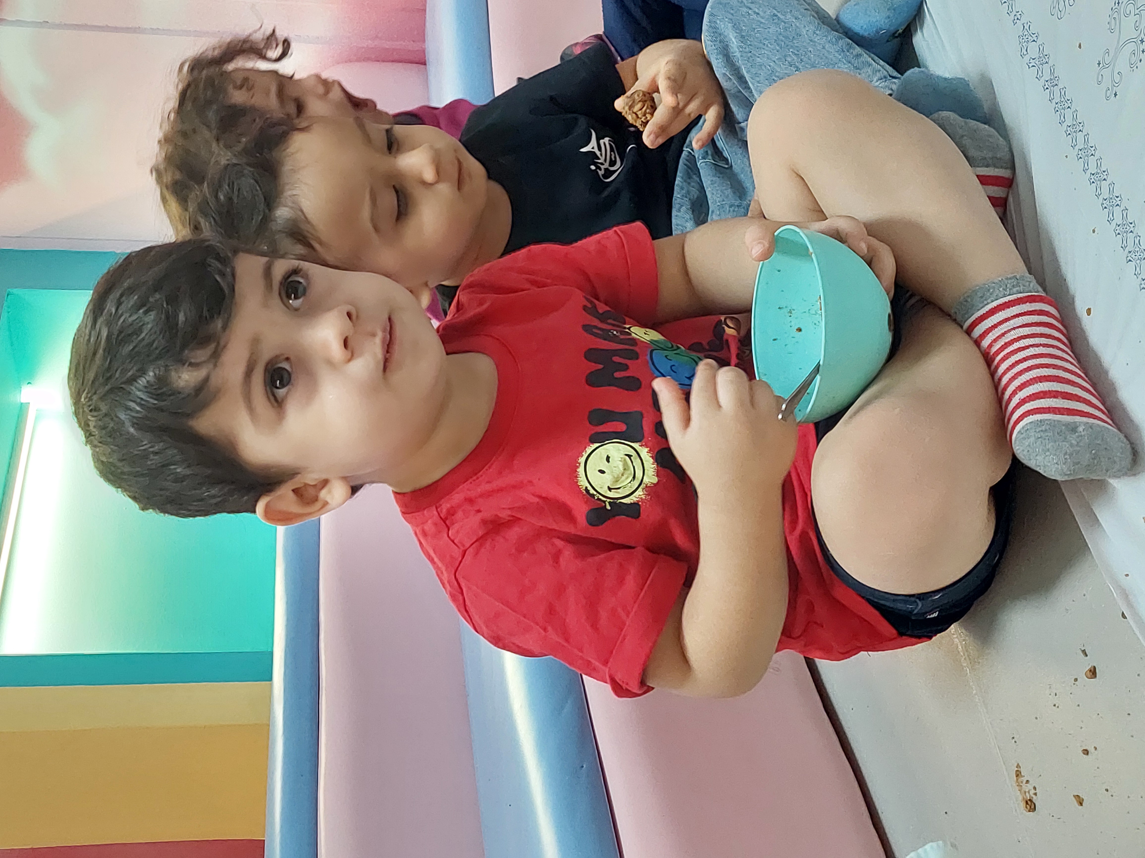 امروز هم اول از همه رفتیم صبحگاه سپس صبحانه که نون و کره و مربا بود، نوشه جان کردند😋🍞🧈🥕
