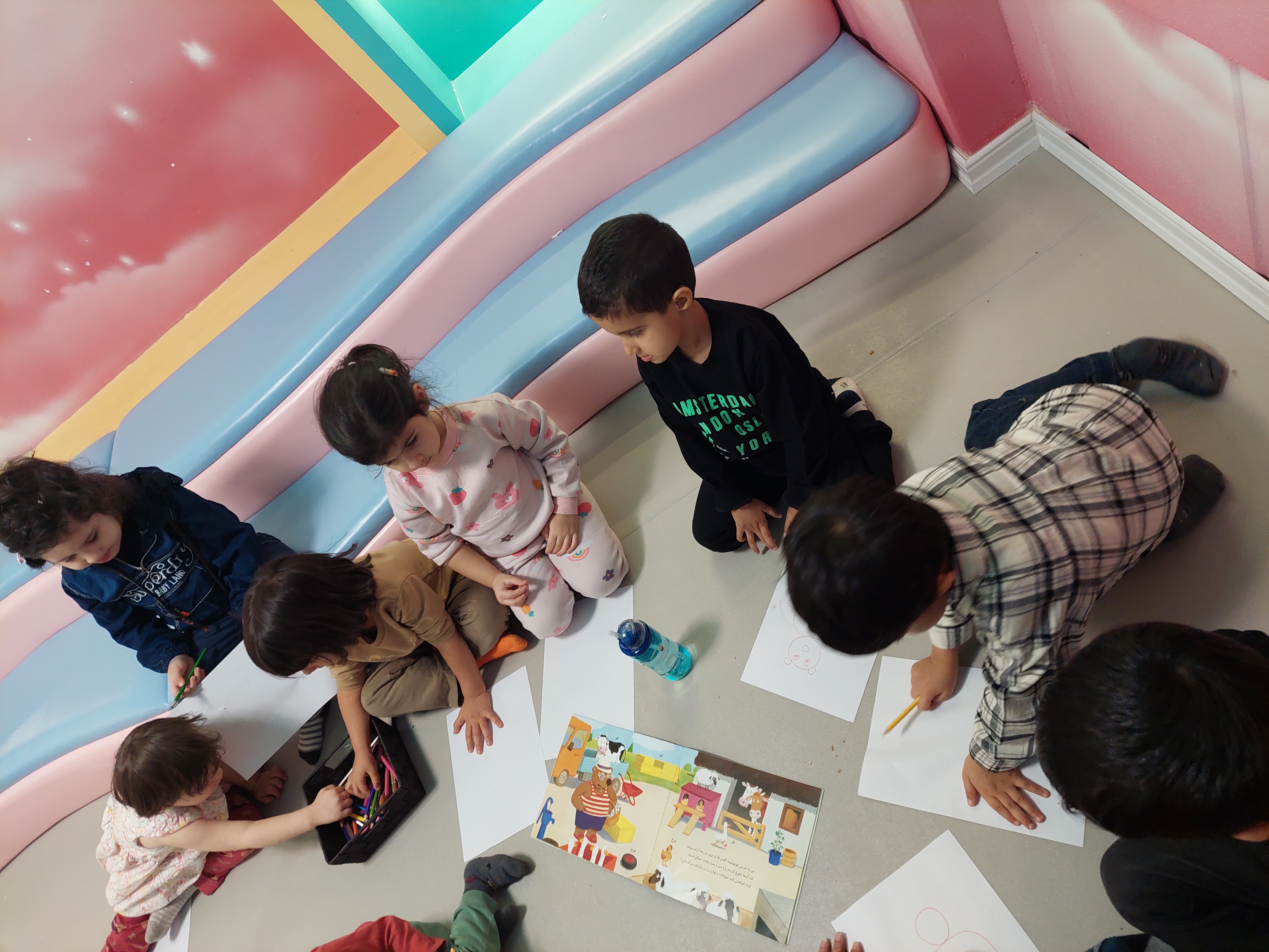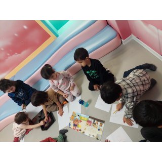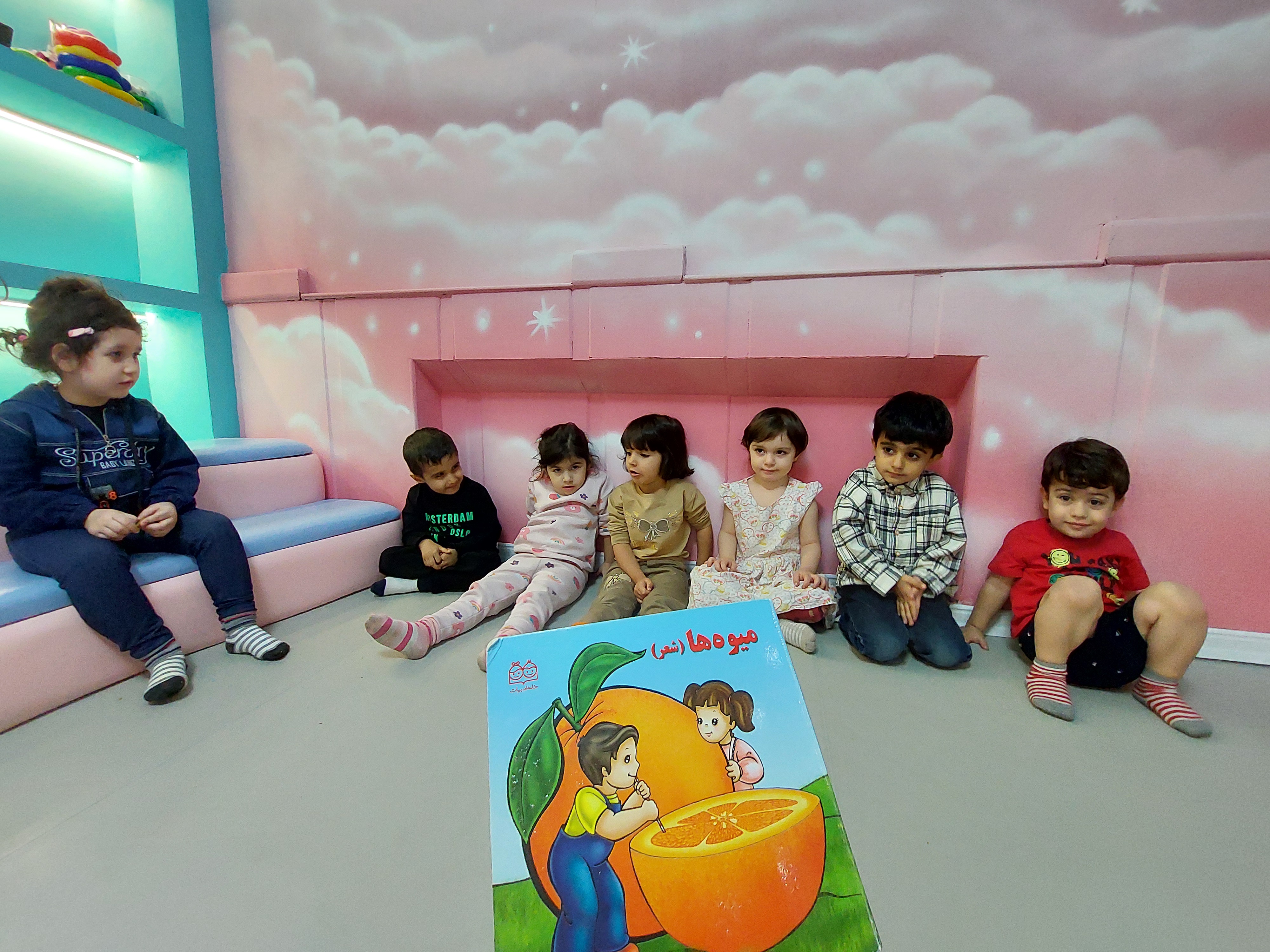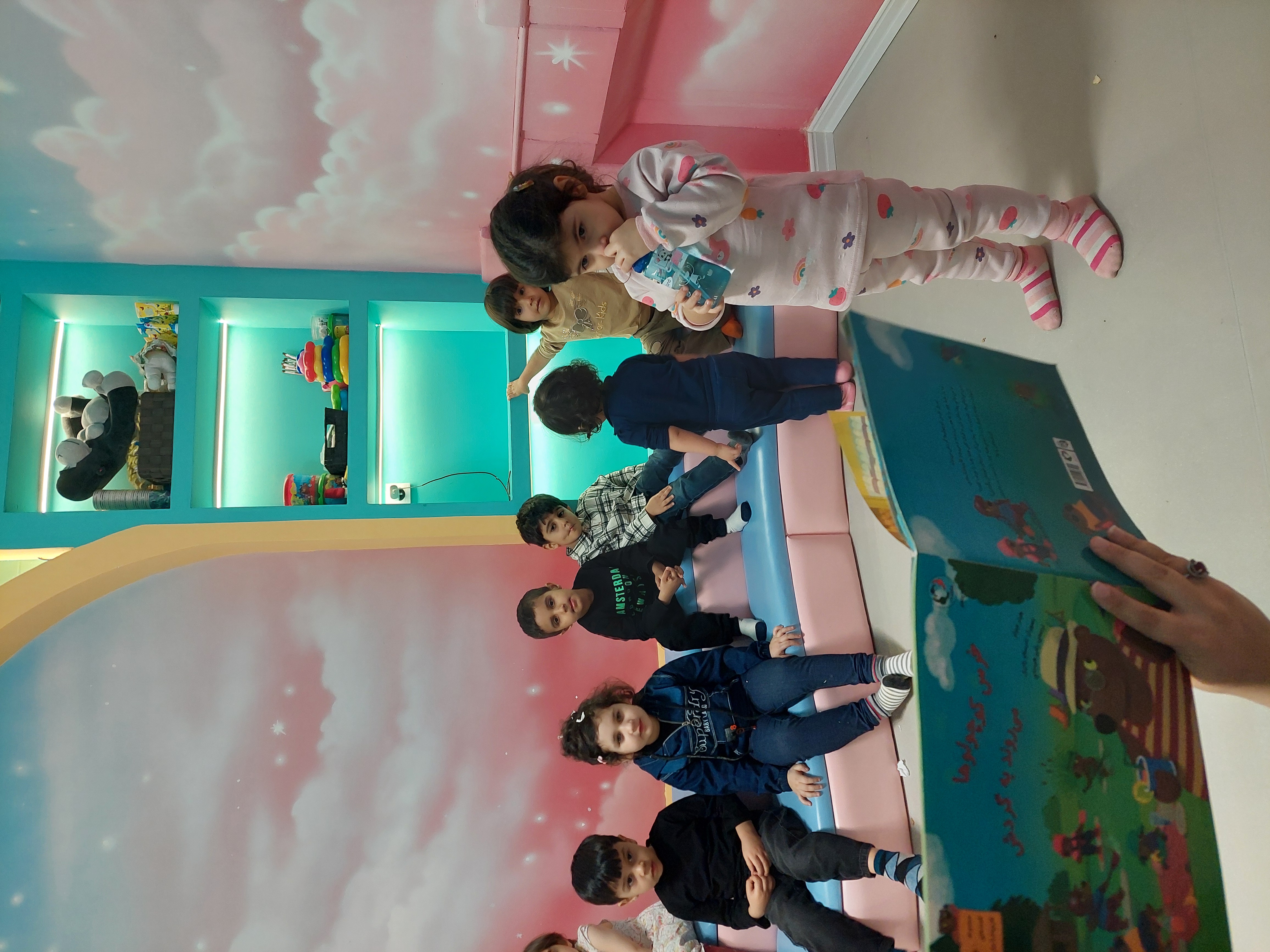 بعد پرانرژی رفتیم سراغ فعالیت بعدیمون که کلاس خاله نادره جان بود که ابتدا یک کتاب داستان برای لاله ها خوانده شد و نمایش اجرا کردند
