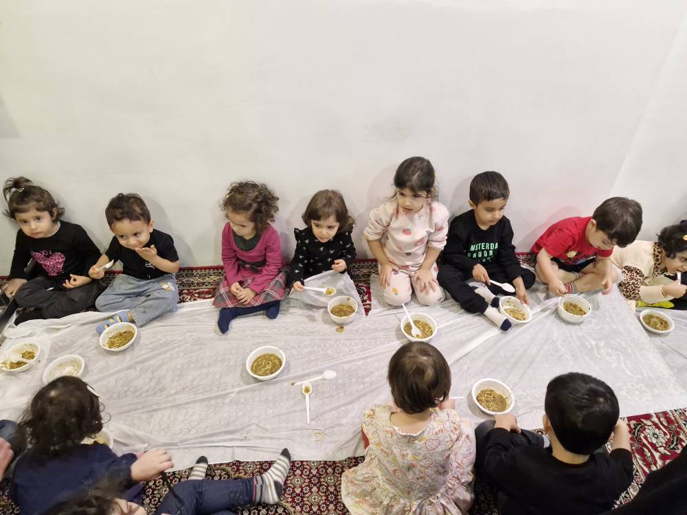 آخرین فعالیت هم رفتیم مراسمی که بمناسبت شهادت حضرت زهرا (س) برای بچه ها اجرا شد و سپس آش میل کردیم🖤