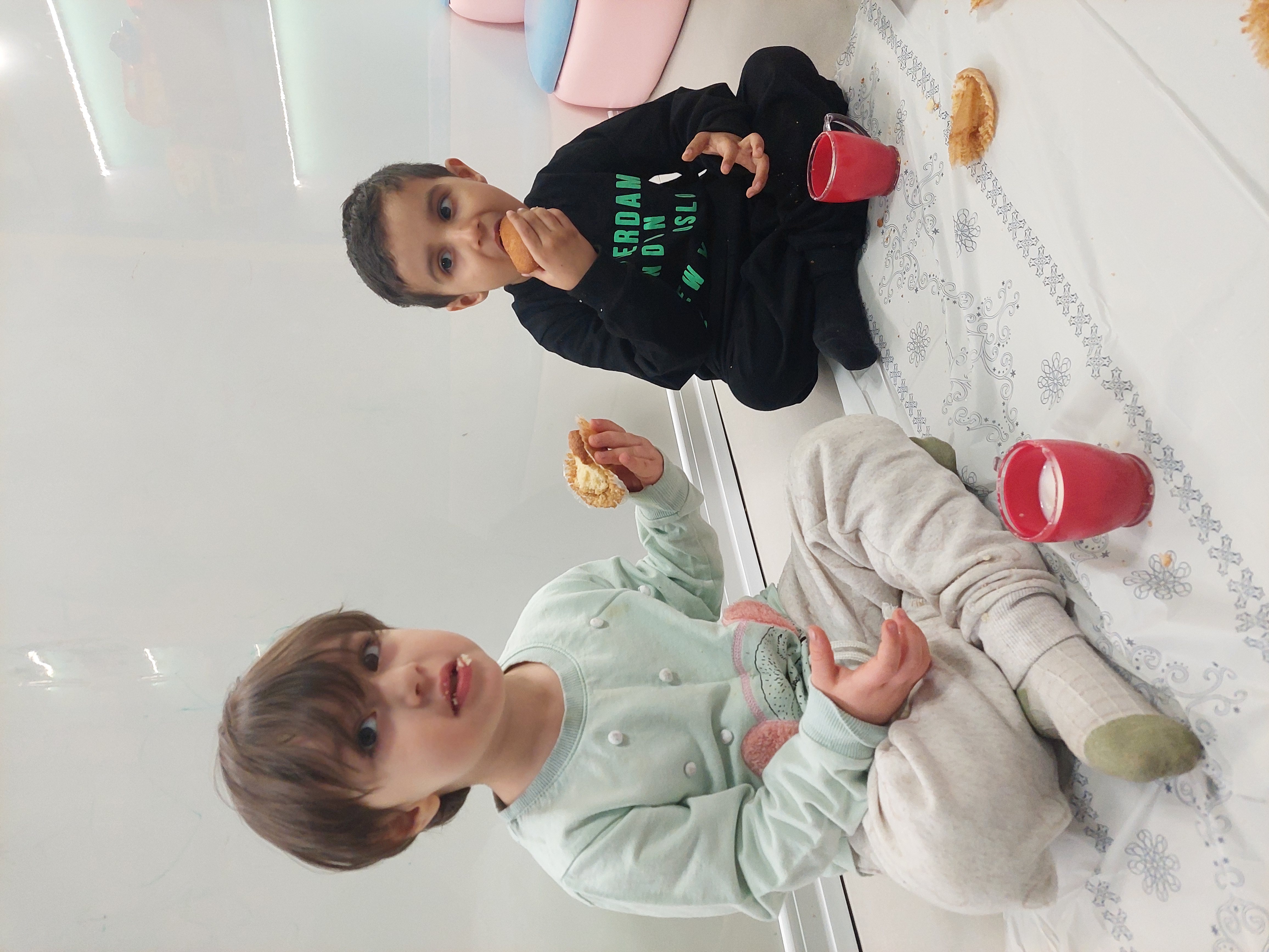 بعد نوبت رسید به میان وعده بچه ها که کیک و شیر بود😋🥛🥧