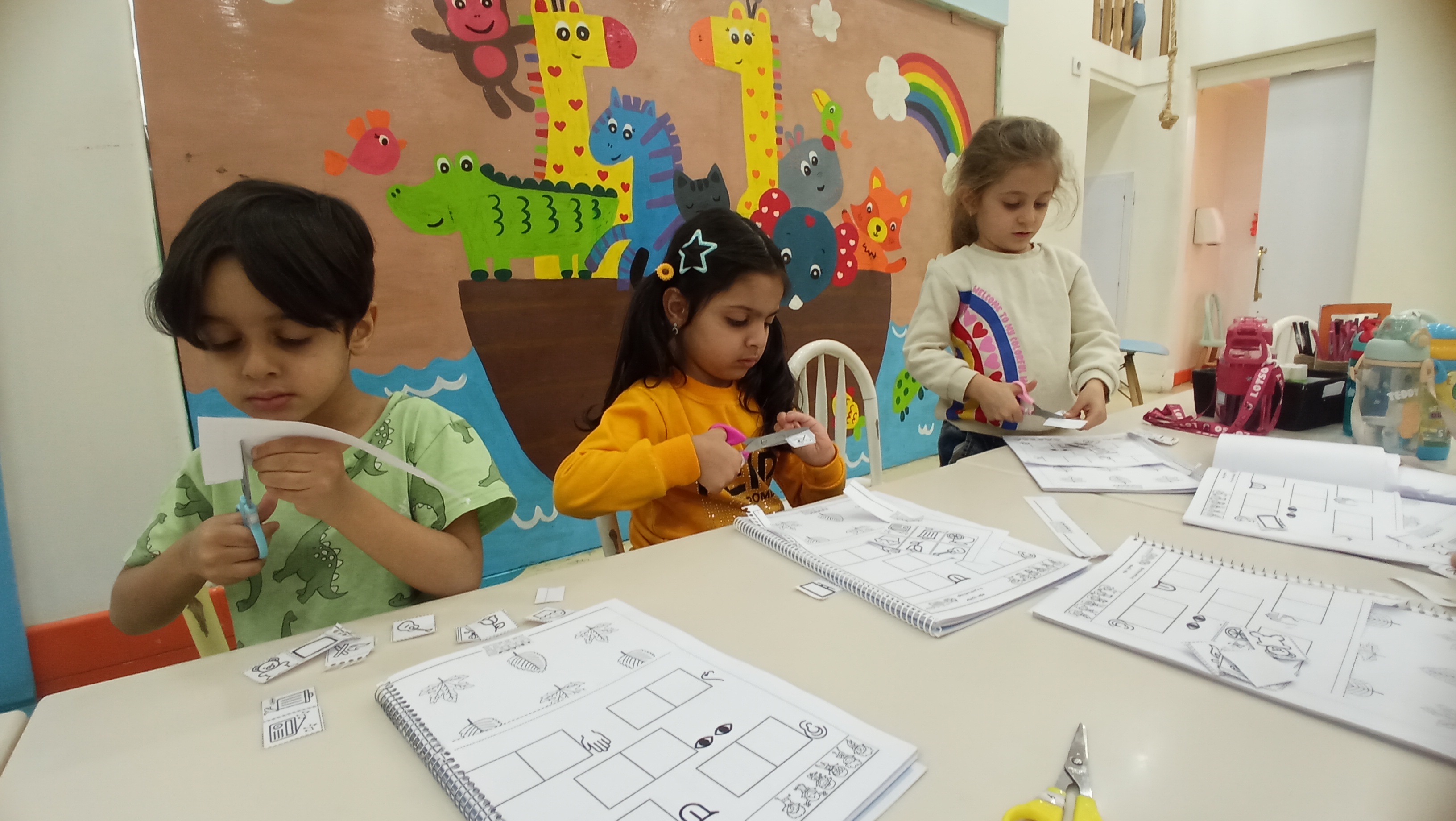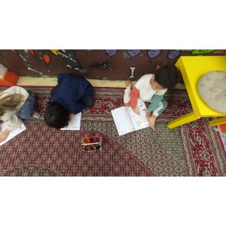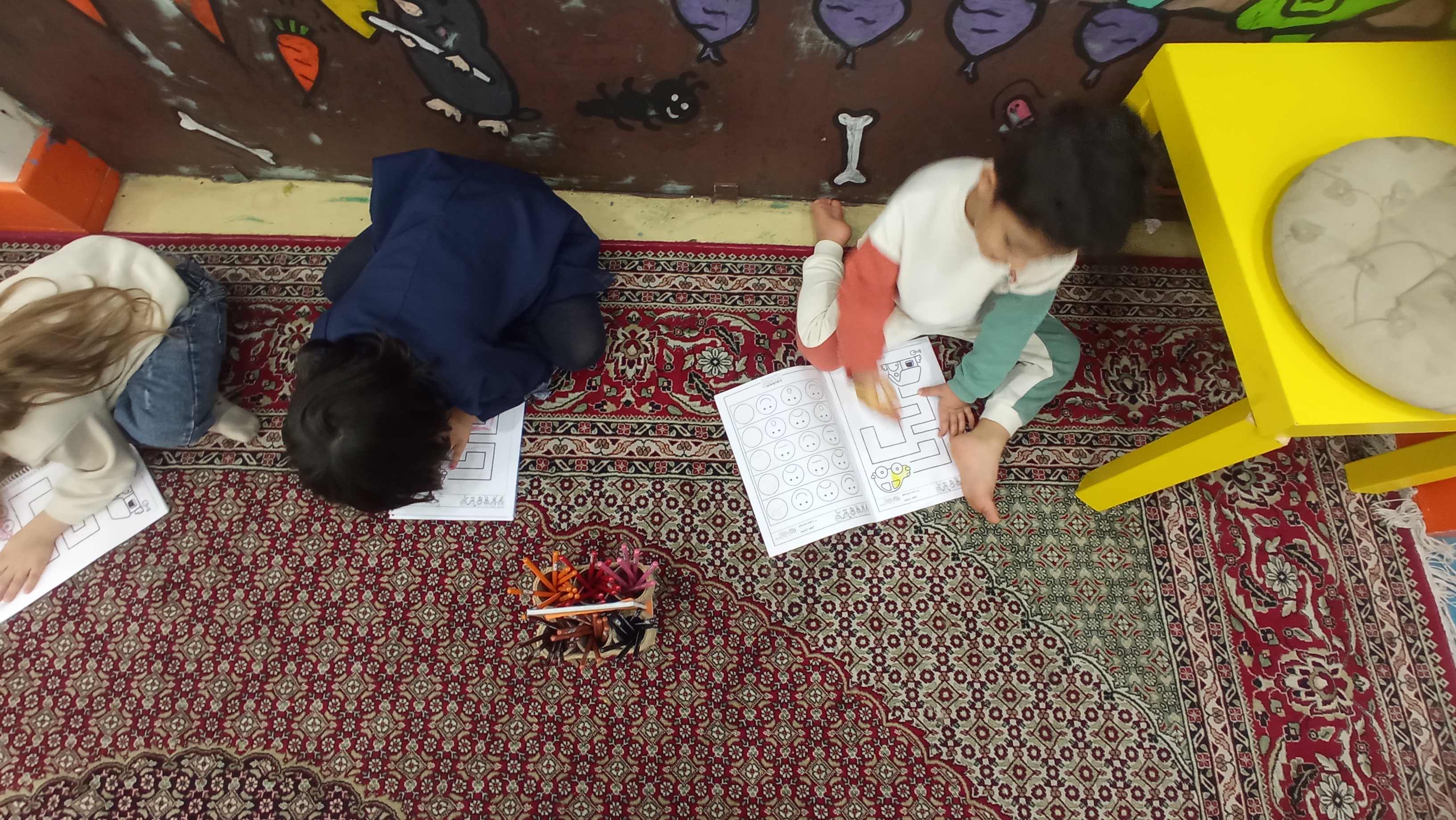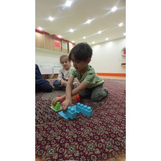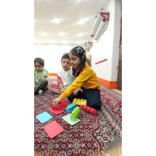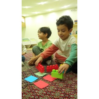اول با استفاده از لگو و کاغذ رنگی یک بازی جهت تقویت هردو نیمکره مغز؛ هماهنگی چشم و دست و همچنین افزایش توجه تمرکز انجام دادیم.