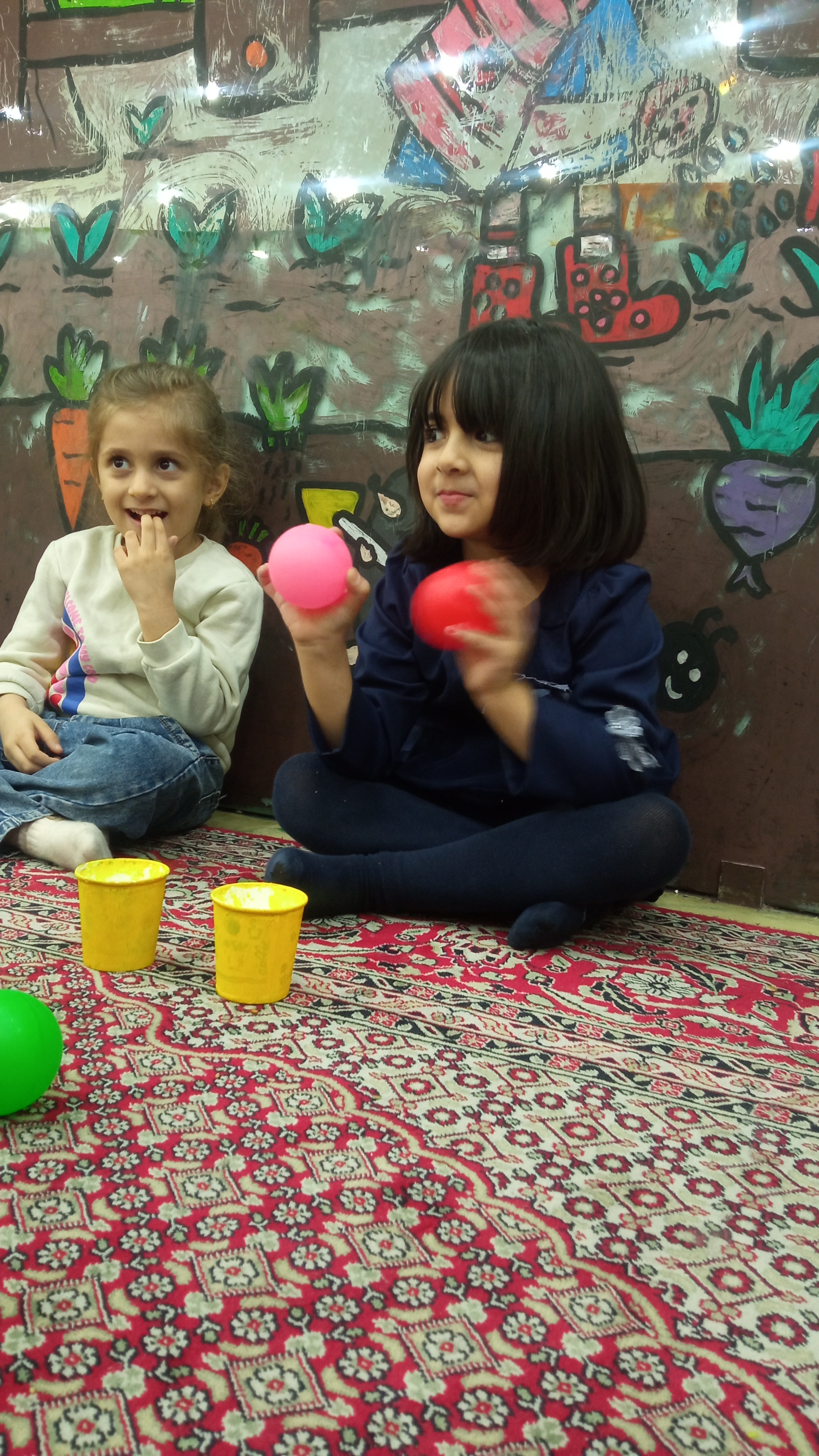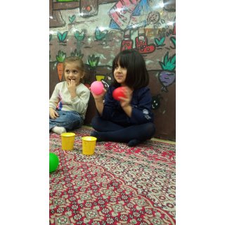 بعد با توپ های رنگی؛ بازی حافظه بینایی و شنوایی انجام دادیم و سعی کردیم هربار ظرفیت حافظه کوتاه مدت رو افزایش بدیم.😎