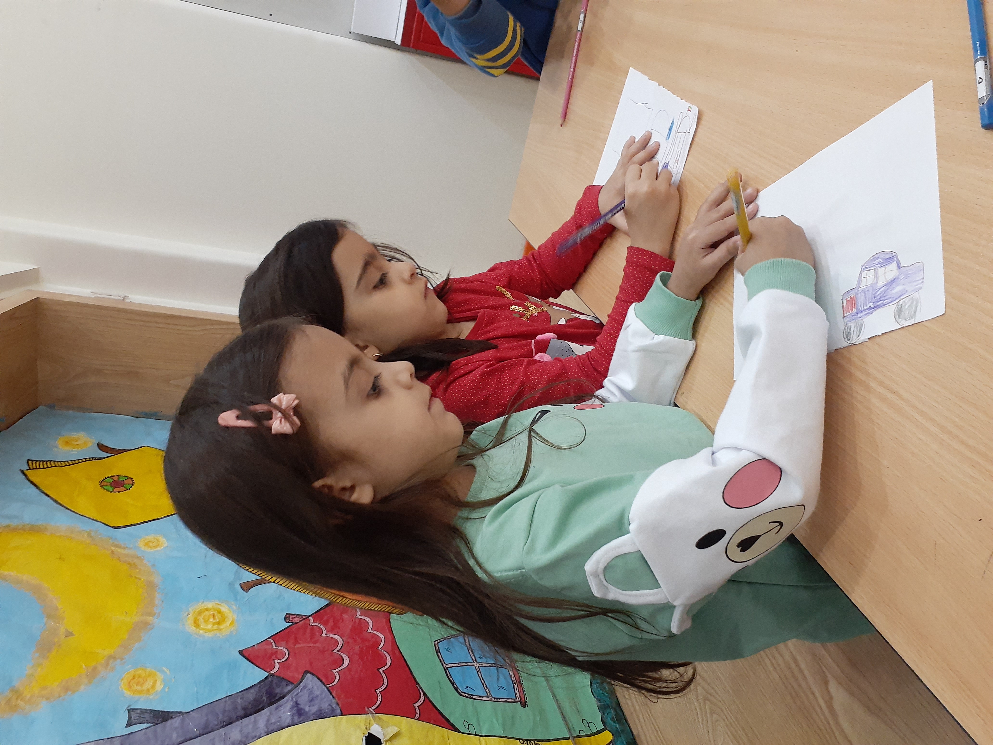 بعدش هم بچه ها نقاشی ماشین و مسجد رو کشیدند.