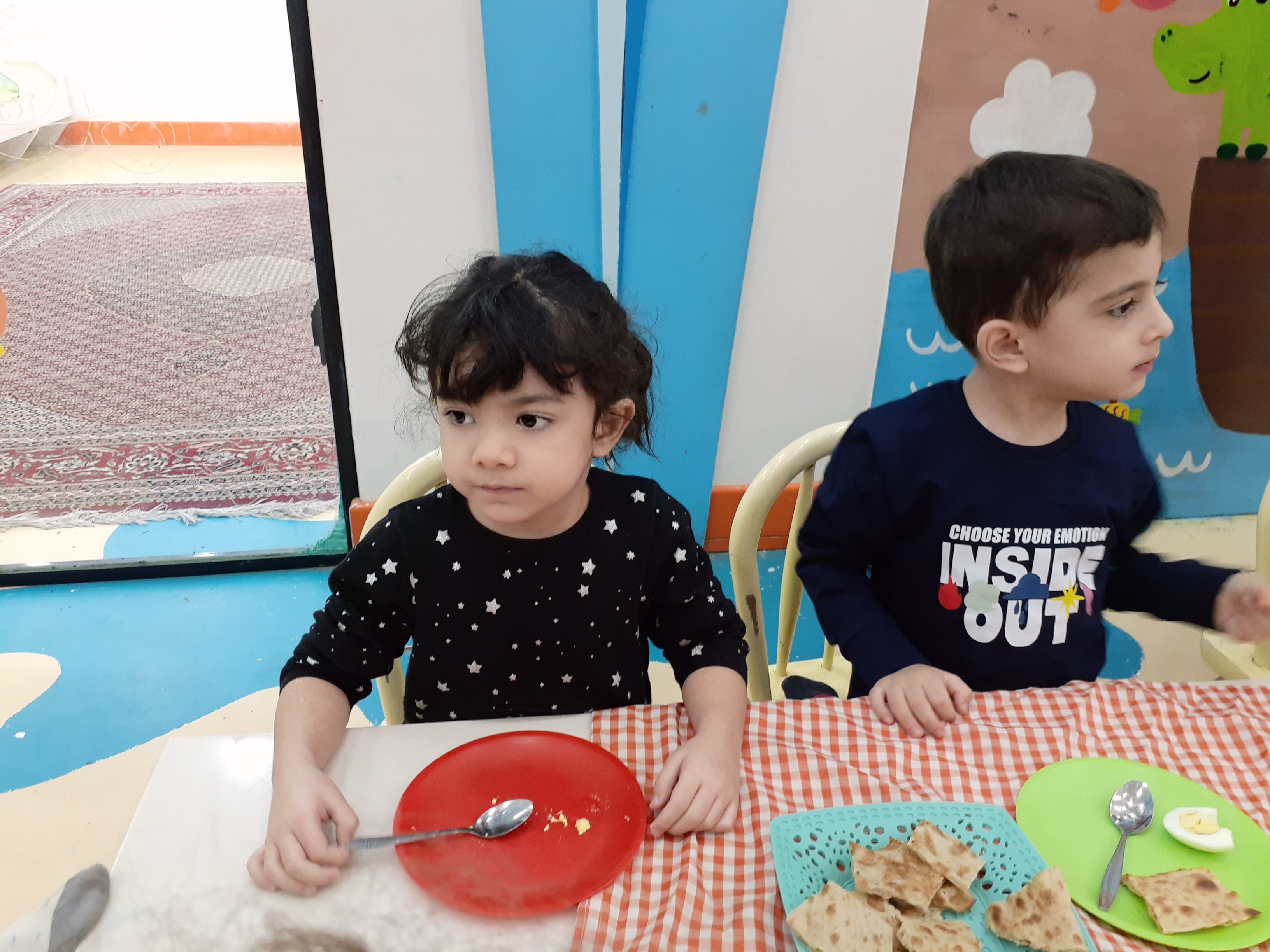 امروز بعد از اینکه برنامه صبحگاه مون رو رفتیم و بعدش هم صبحانه ی پروتئینی ( تخم مرغ آبپز) رو میل کردند.😋