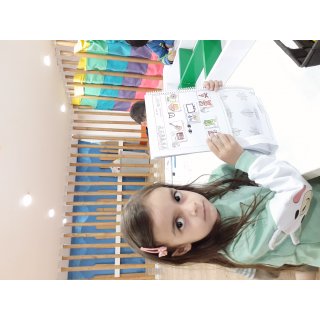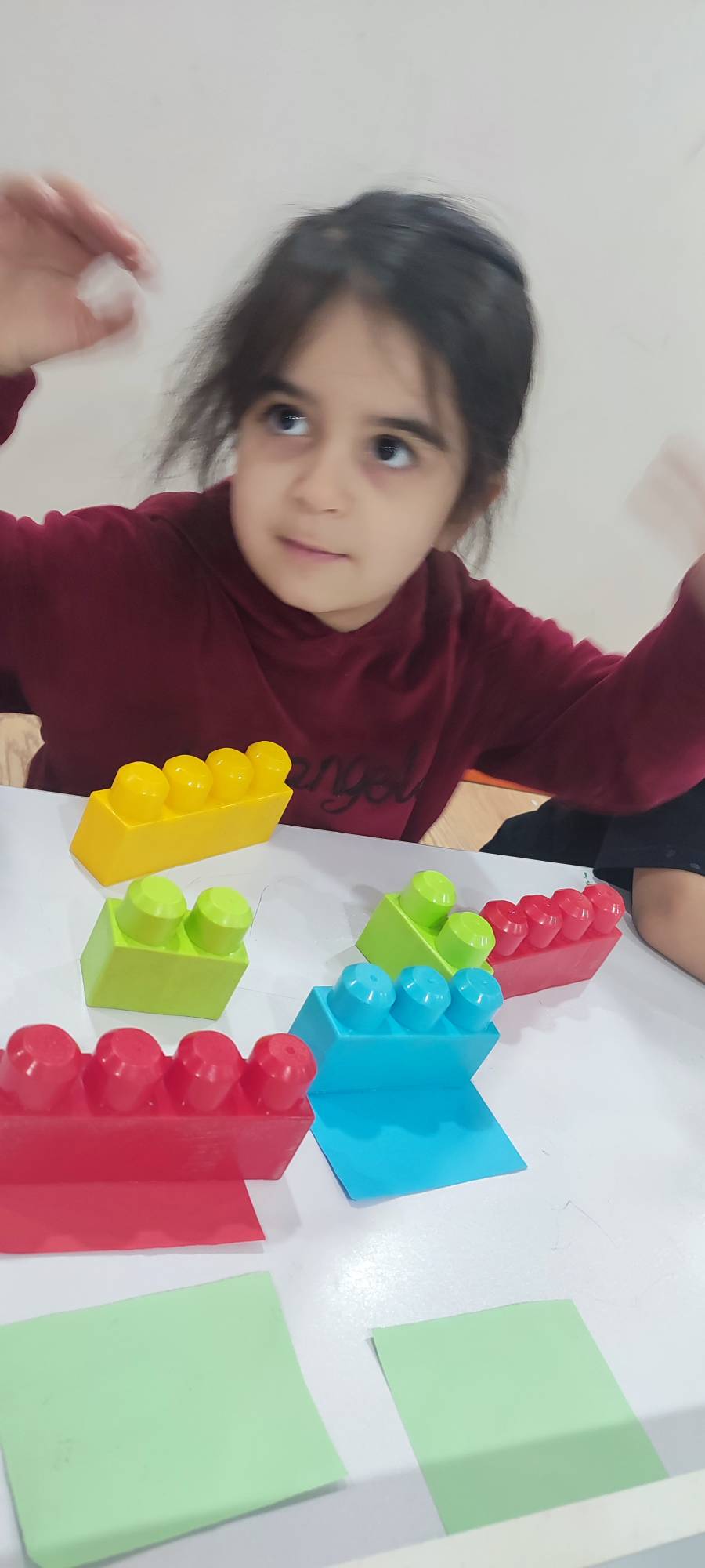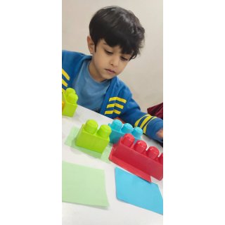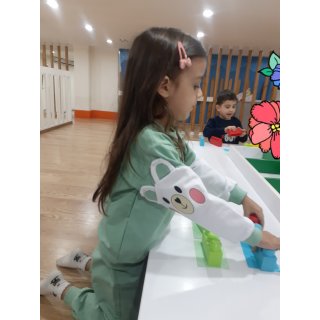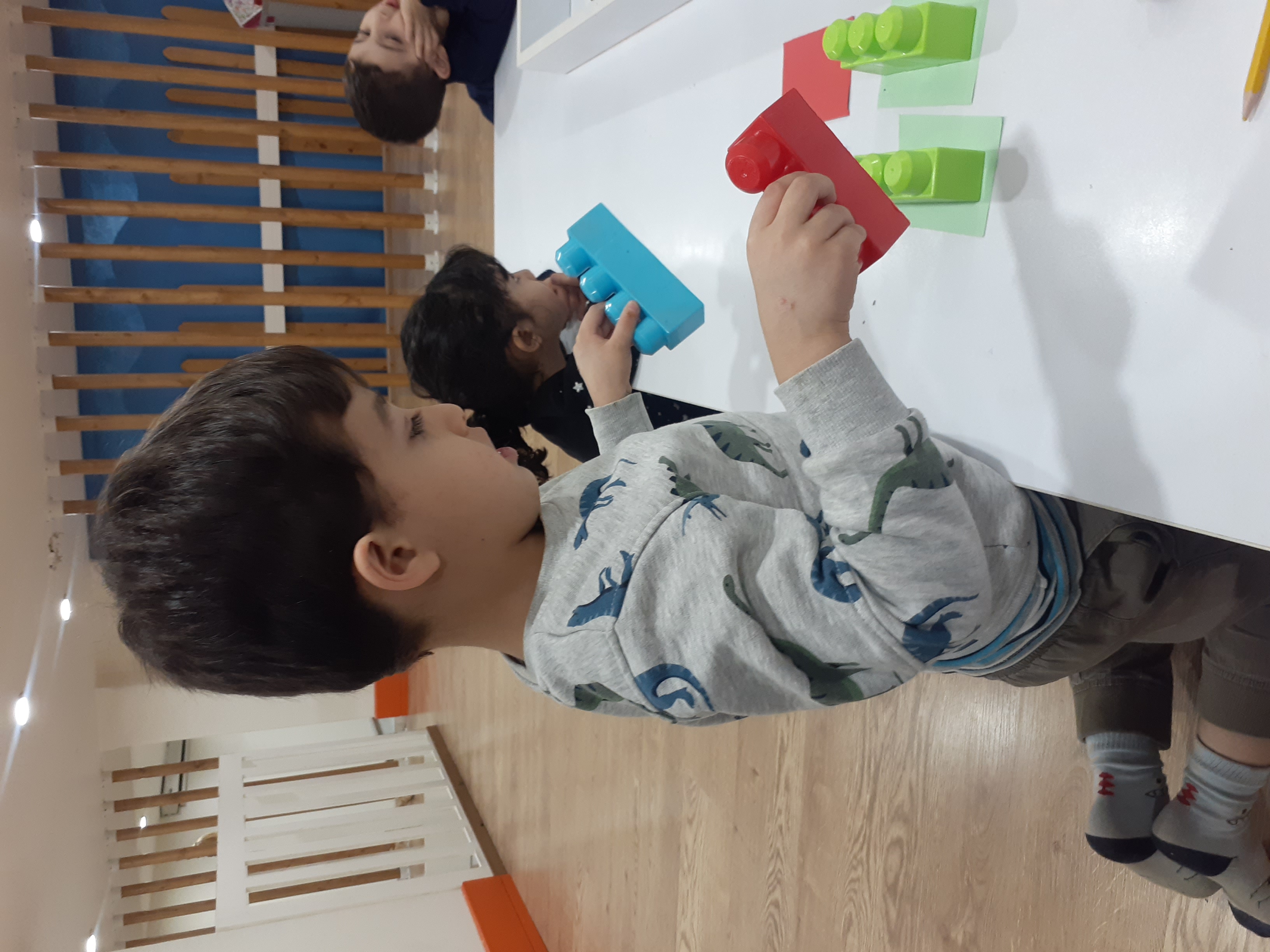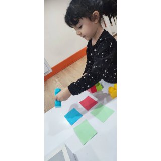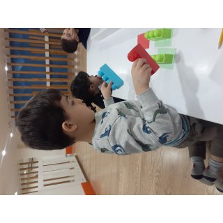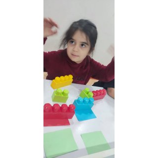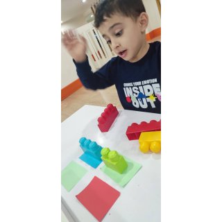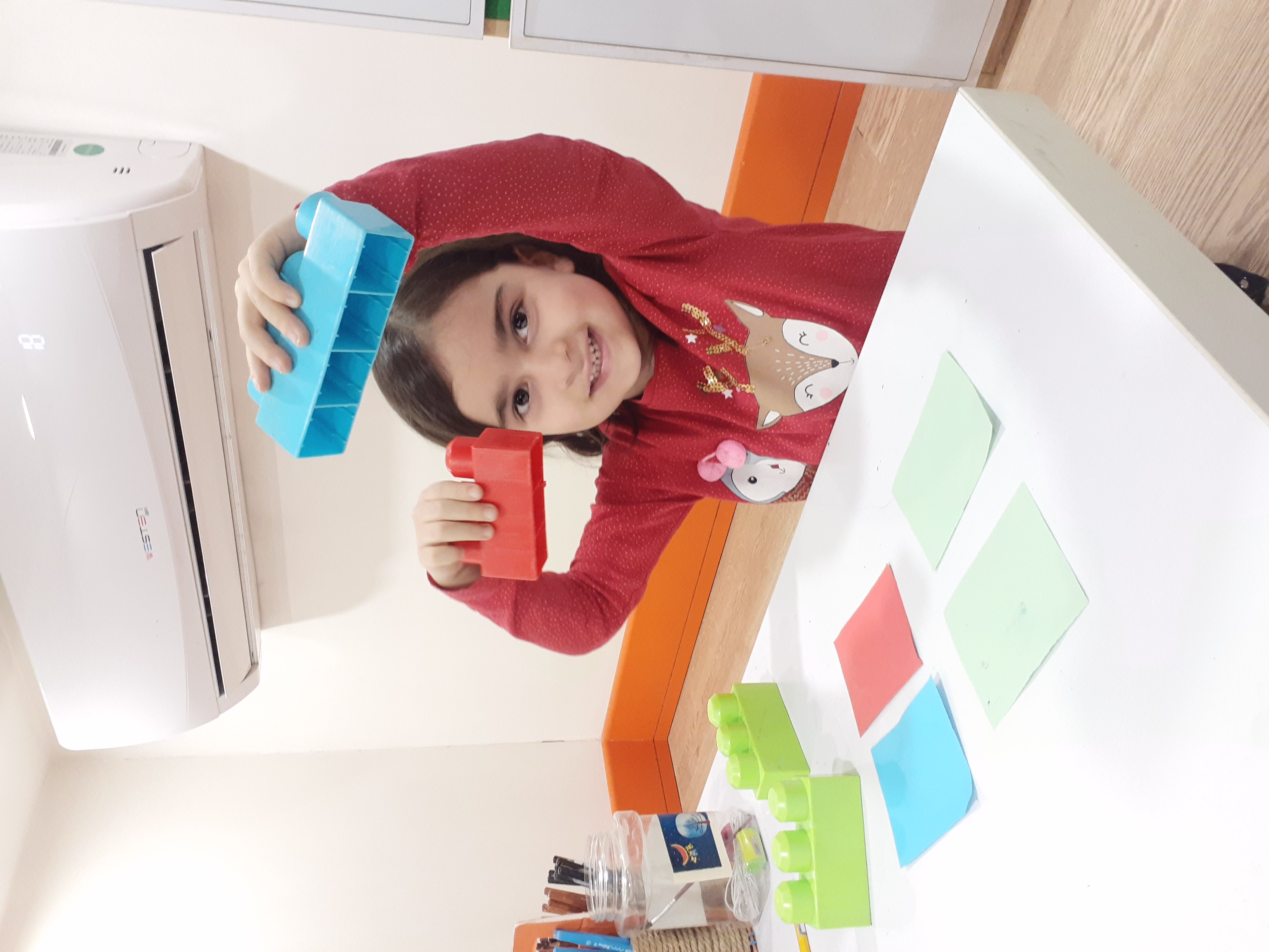 بعدش به کلاس برگشتیم ، بازی حافظه با خانم مجیدی داشتیم ، با استفاده از لگو و کاغذ رنگی یک بازی جهت تقویت هردو نیمکره مغز؛ هماهنگی چشم و دست و همچنین افزایش توجه تمرکز انجام دادیم.