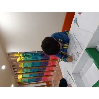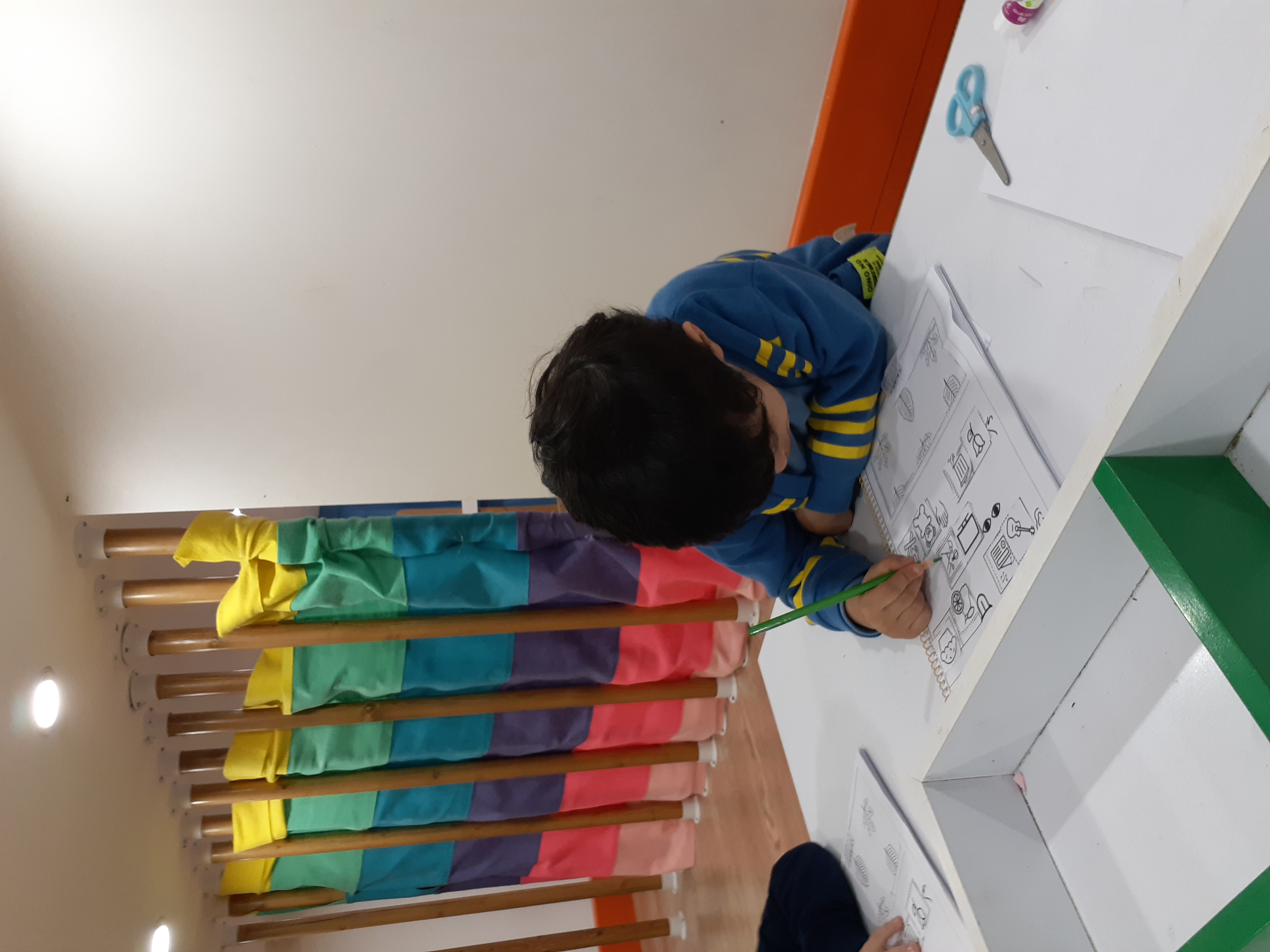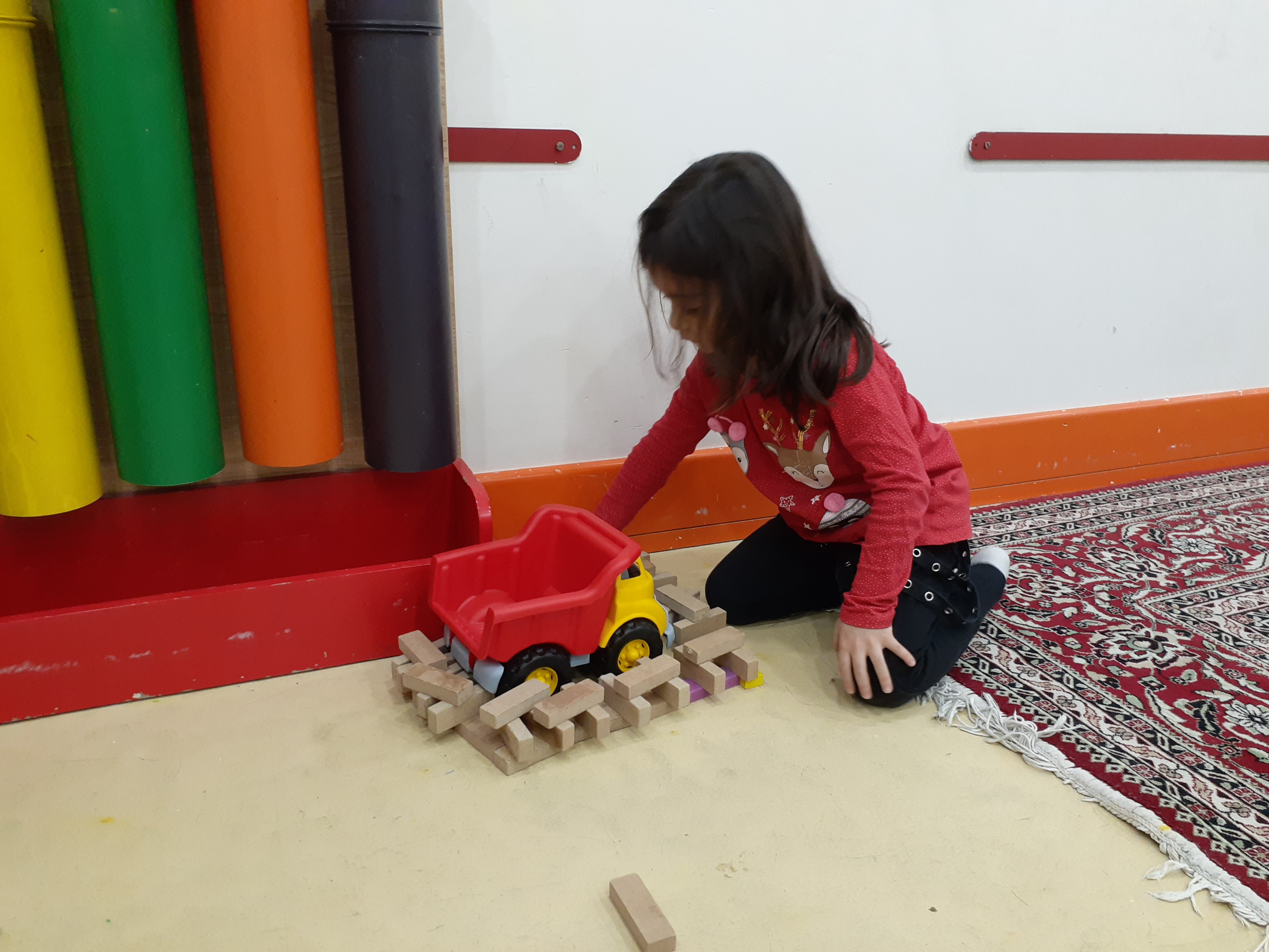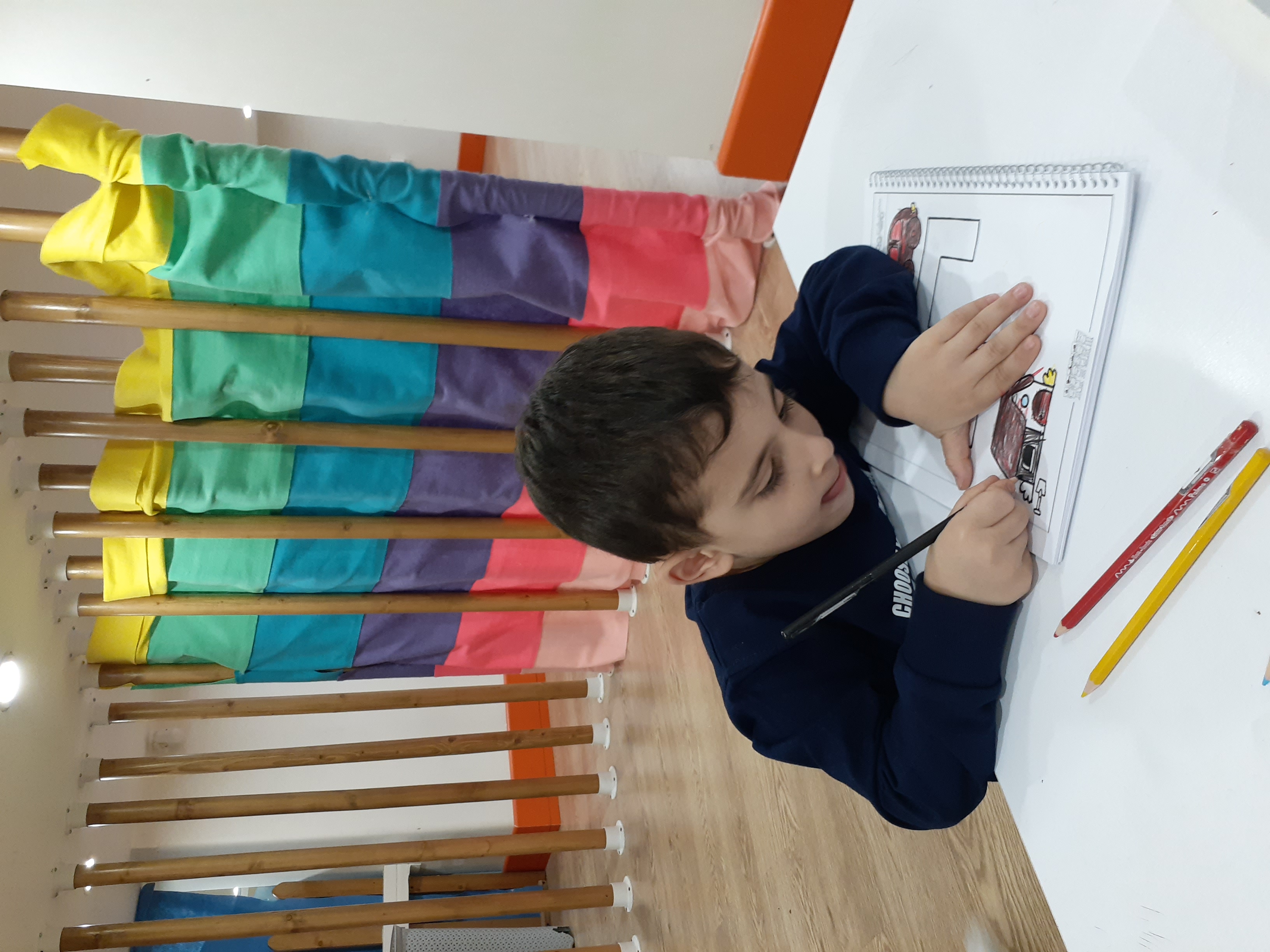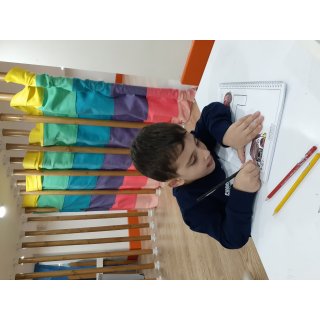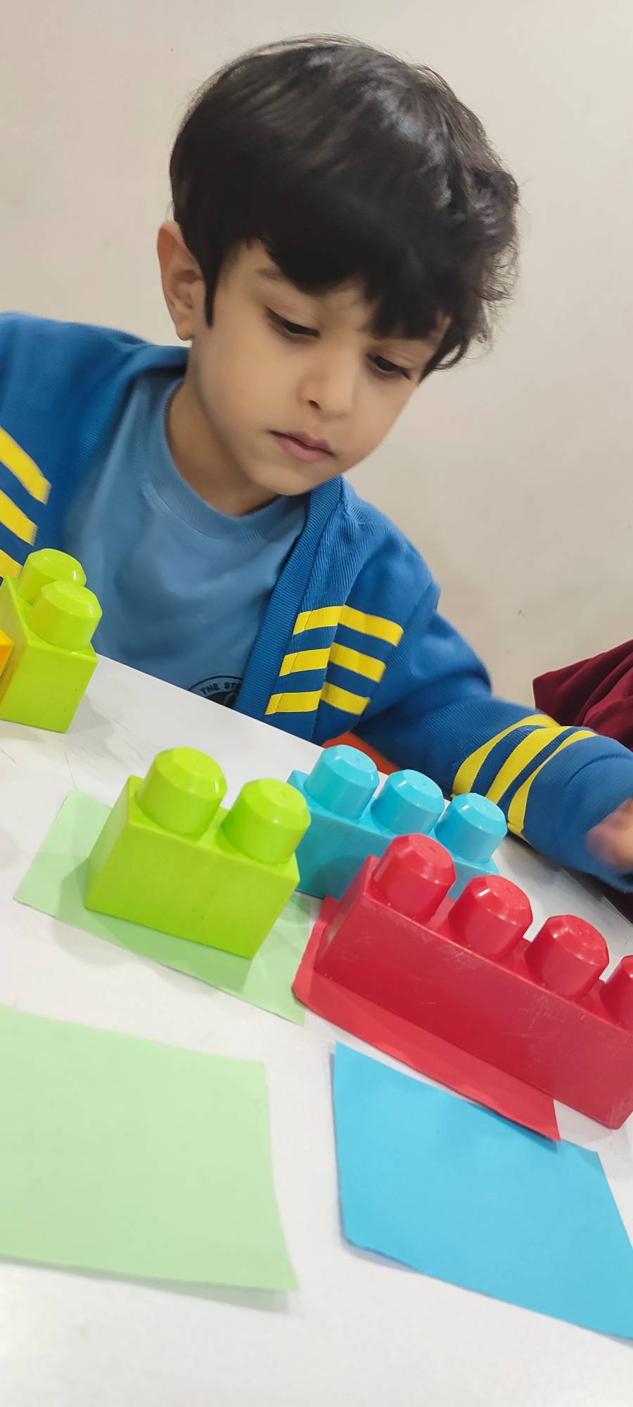 بعدش به کلاس برگشتیم ، بازی حافظه با خانم مجیدی داشتیم ، با استفاده از لگو و کاغذ رنگی یک بازی جهت تقویت هردو نیمکره مغز؛ هماهنگی چشم و دست و همچنین افزایش توجه تمرکز انجام دادیم.