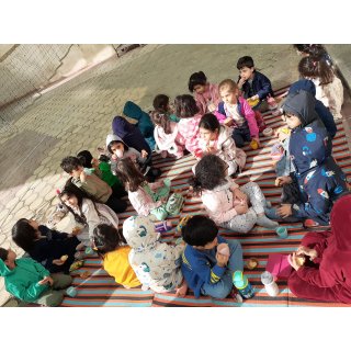 بچه ها امروز میان وعده های خوشمزه شون رو در فضای باز حیاط مدرسه میل کردند (شیر ،کیک یزدی) و در حیاط بازی و خوشحالی کردند.