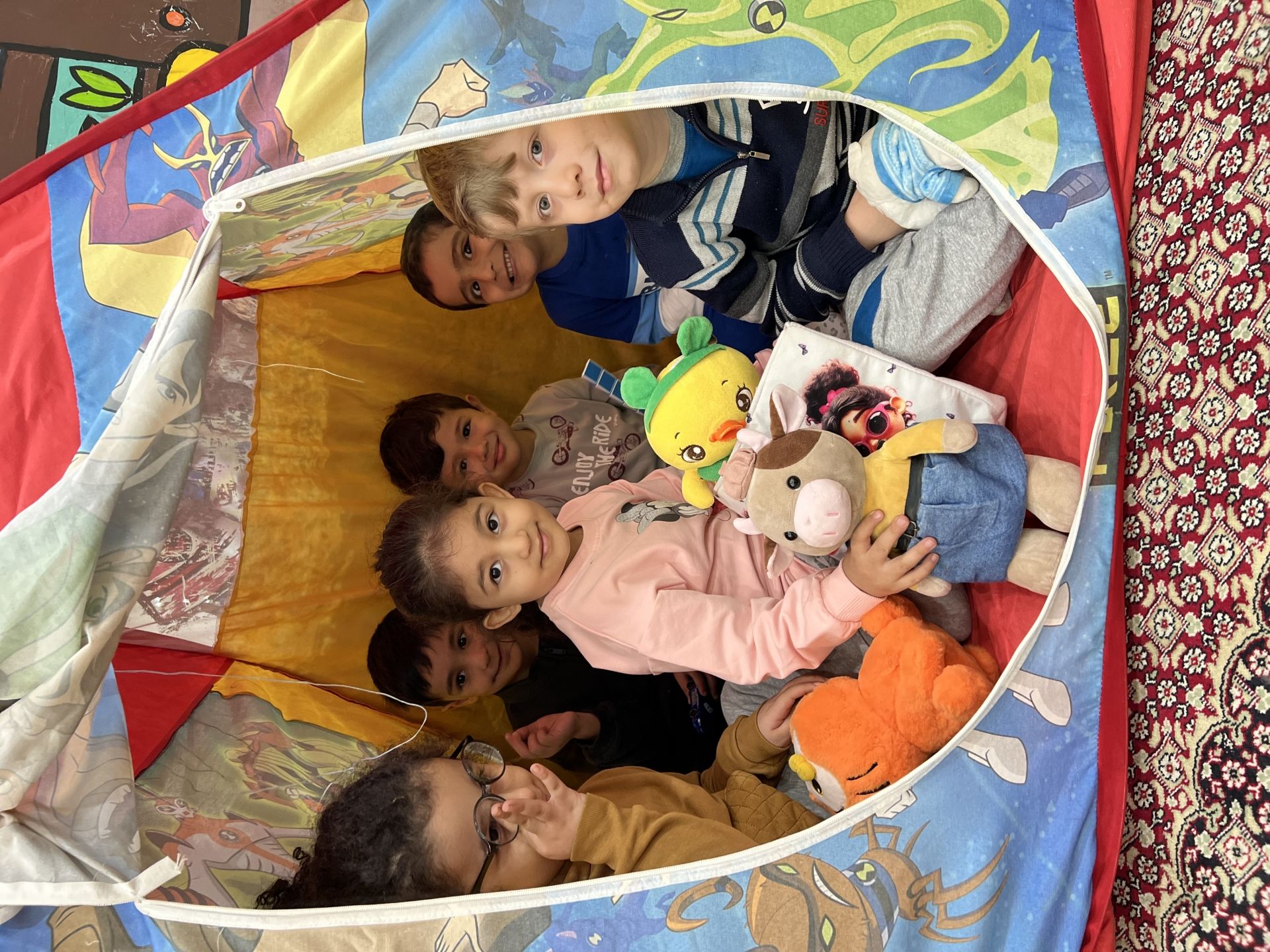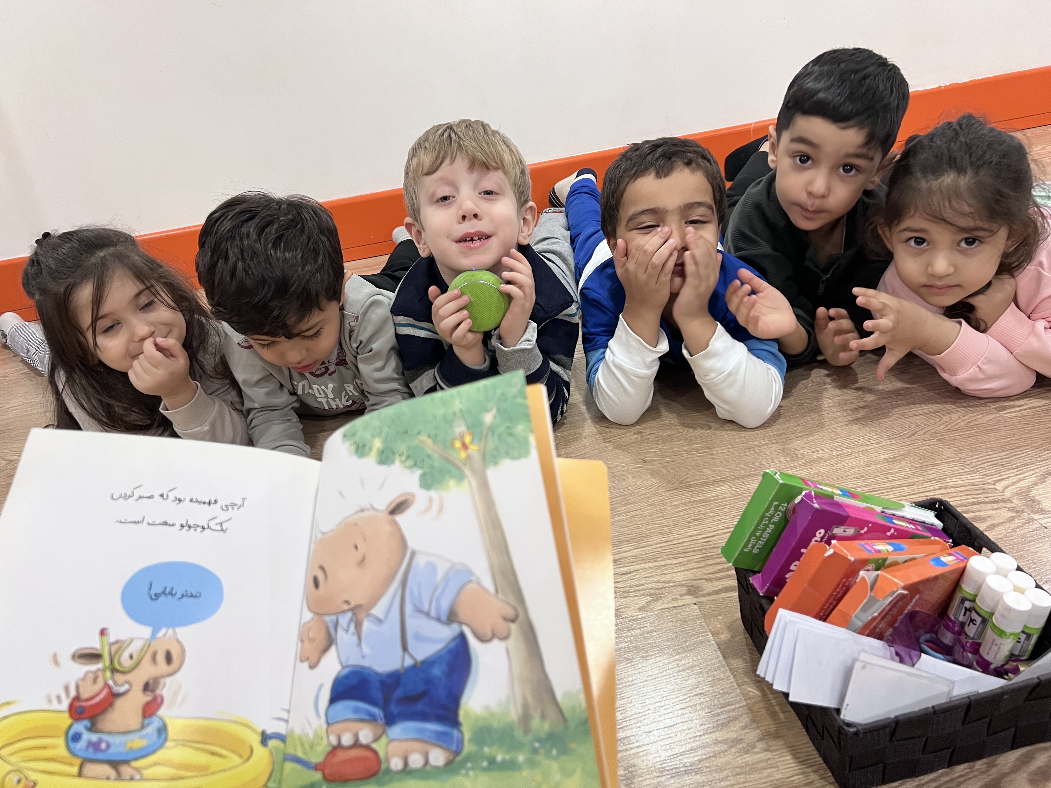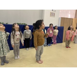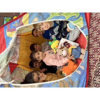 صبح وقتی اومدیم اول وسایلمون و اسباب بازی هامون رو سر جاش گذاشتیم و رفتیم سرسره بازی کردیم باهم 🛝🛝🛝 بعد رفتیم صبحگاه پیش خاله زهرا بهادرانی شعر خوندیم، ورزش کردیم ، بازی کردیم و قران خوندیم 🎤🎼