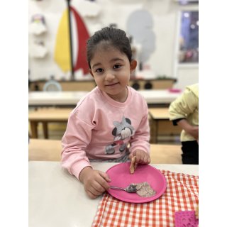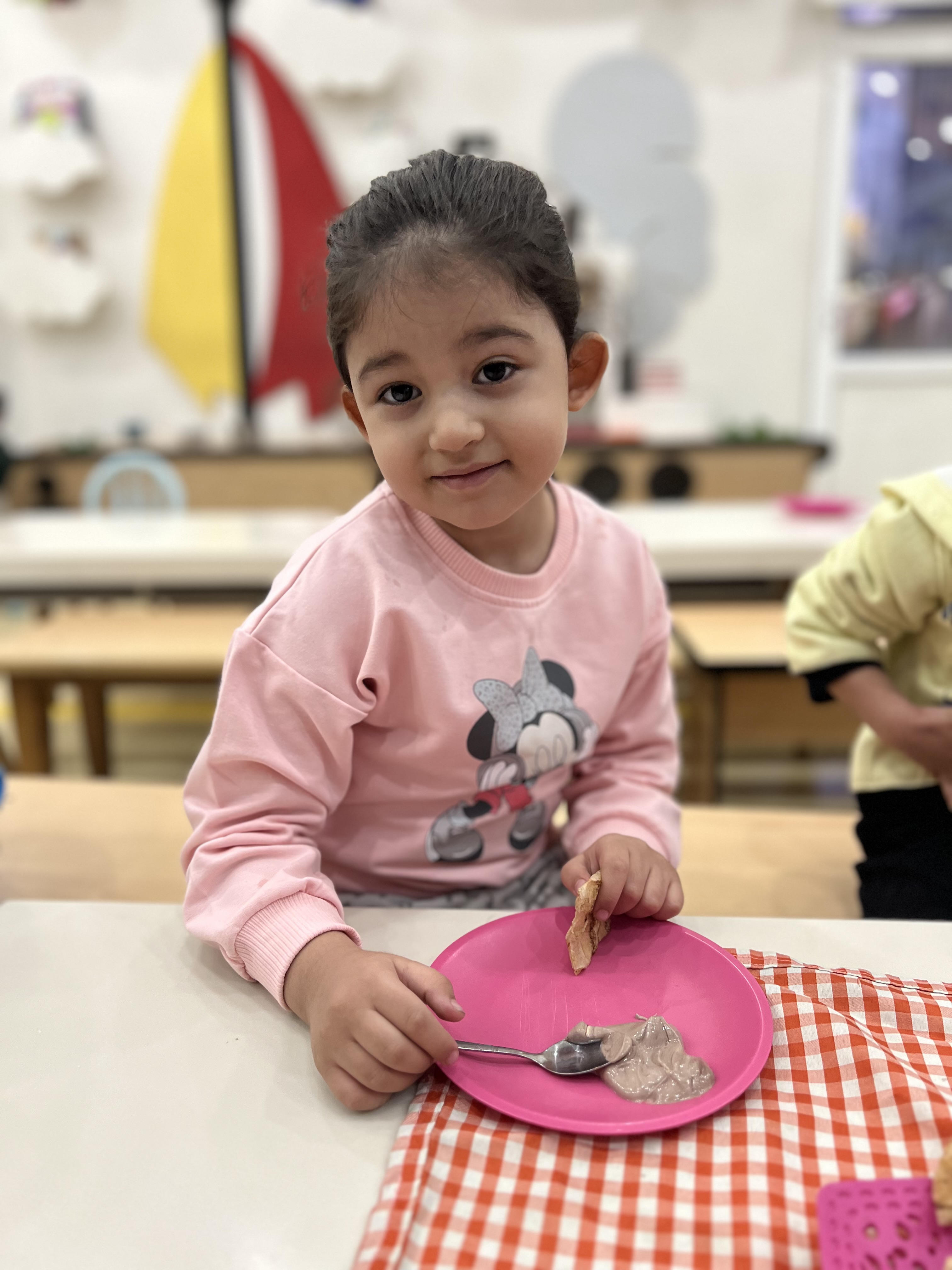 حالا نوبت خوردن صبحونه هستش نون و چای و خامه شکلاتی 🍫☕️🫖🥖
