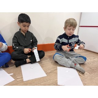 ایستگاه بعد قصه کاغذ و قیچی بود که باهم خطوط رو قیچی کردیم و کلاژ کردیم و کوشانامه های دست ورزی رو انجام دادیم ✂️✂️📝📝