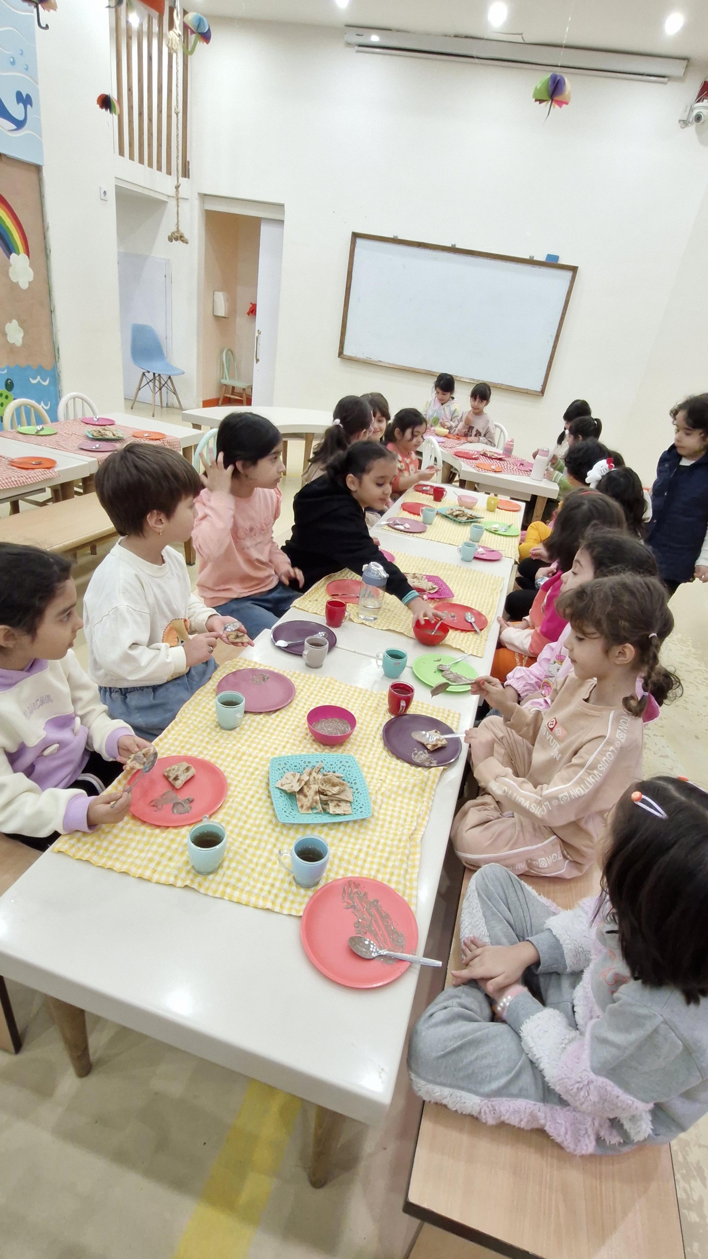 نون و خامه شکلاتی و چایی... بچهها حسابی خوردن و انرژی گرفتن 😋