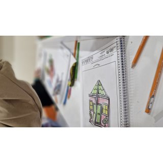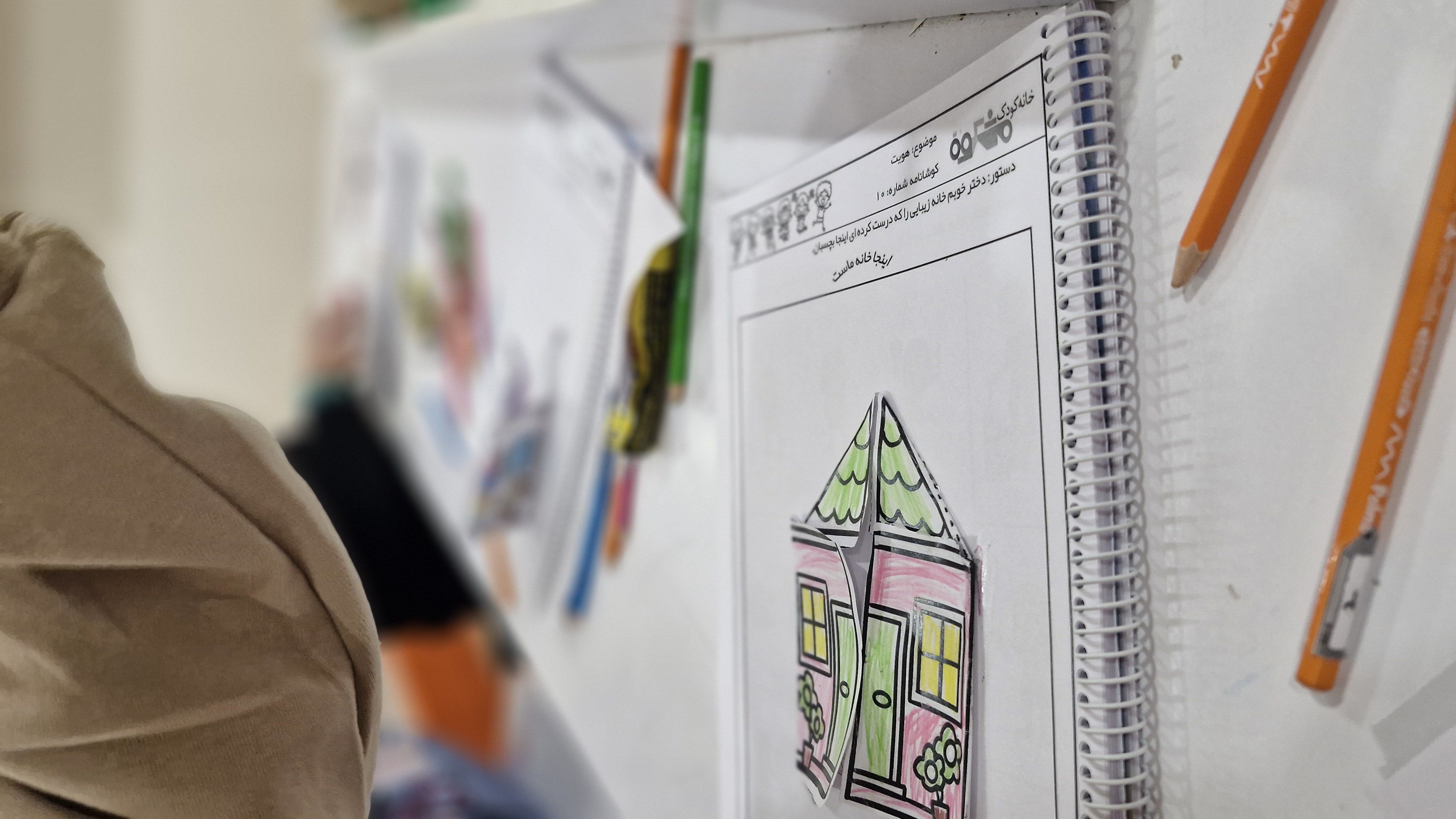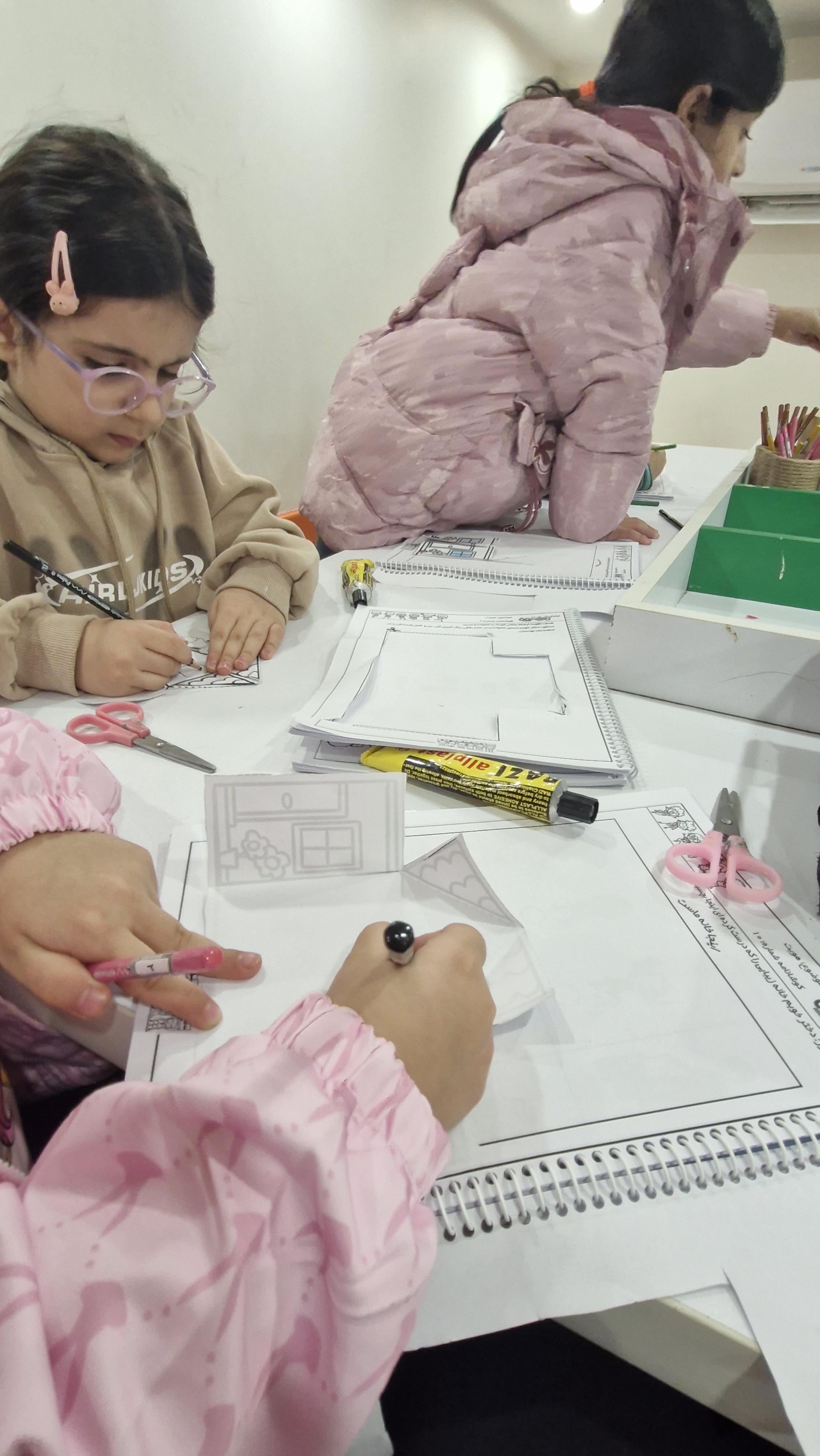 🌸 در این کلاس نقاشی خانواده هایشان داخل کلاژ خانه را کشیدند و در کاربرگشان چسباندند