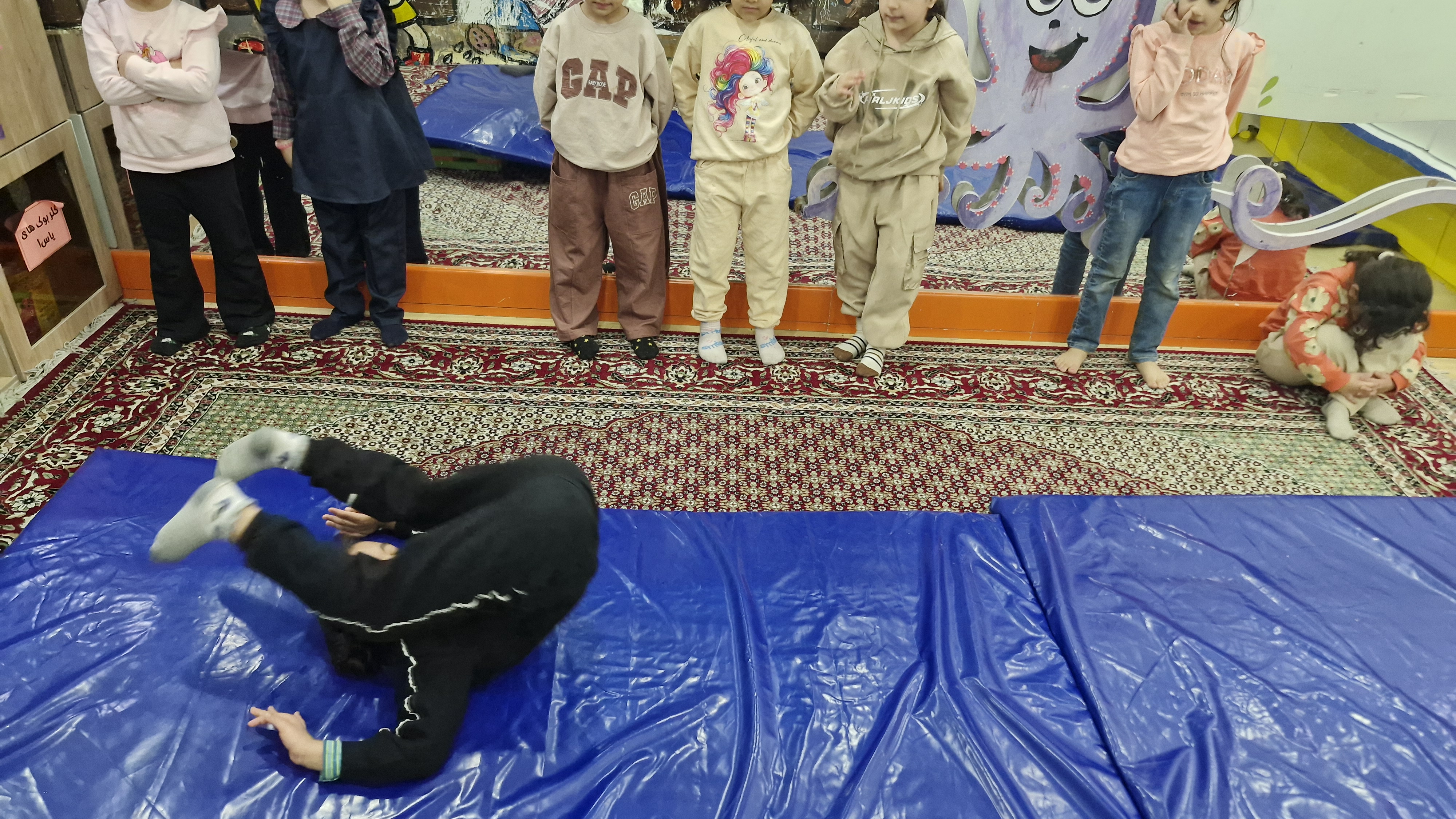 🌸 کلاس ژیمناستیک رفتند مربی شان تمرینهای مختلفی داد و بچه ها انجام دادند