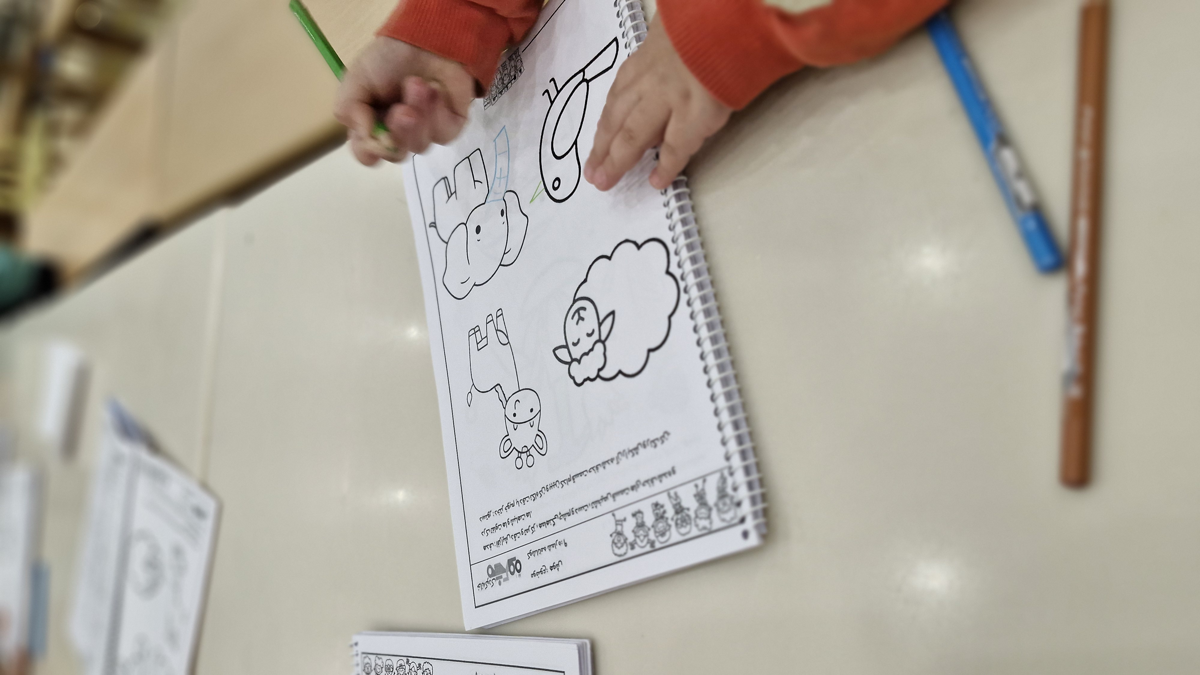 کاربرگ هم به این صورت بود که اشیا متفاوتی که در عکس بود را رنگ میکردند 🐟⛏️و همچنین برای حیوانات جزئی که نبود را میکشیدند
