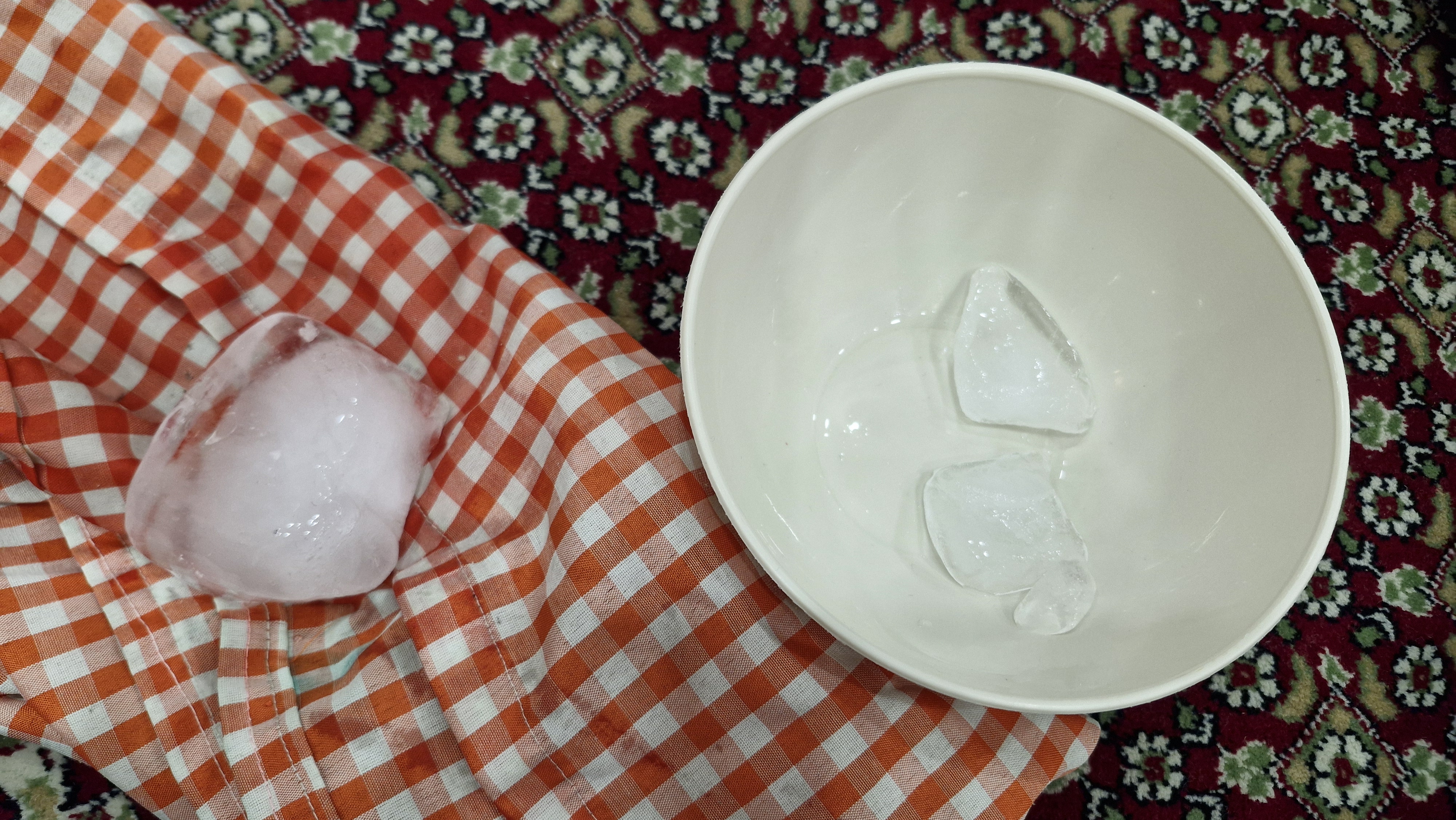 آزمایش دو یخ را که یکی بیرون گذاشته شده بود و یکی از یخها دور پارچه پیچیده شده بود و با سرعت کمتری آب میشد را مشاهده کردن 🤔🥶