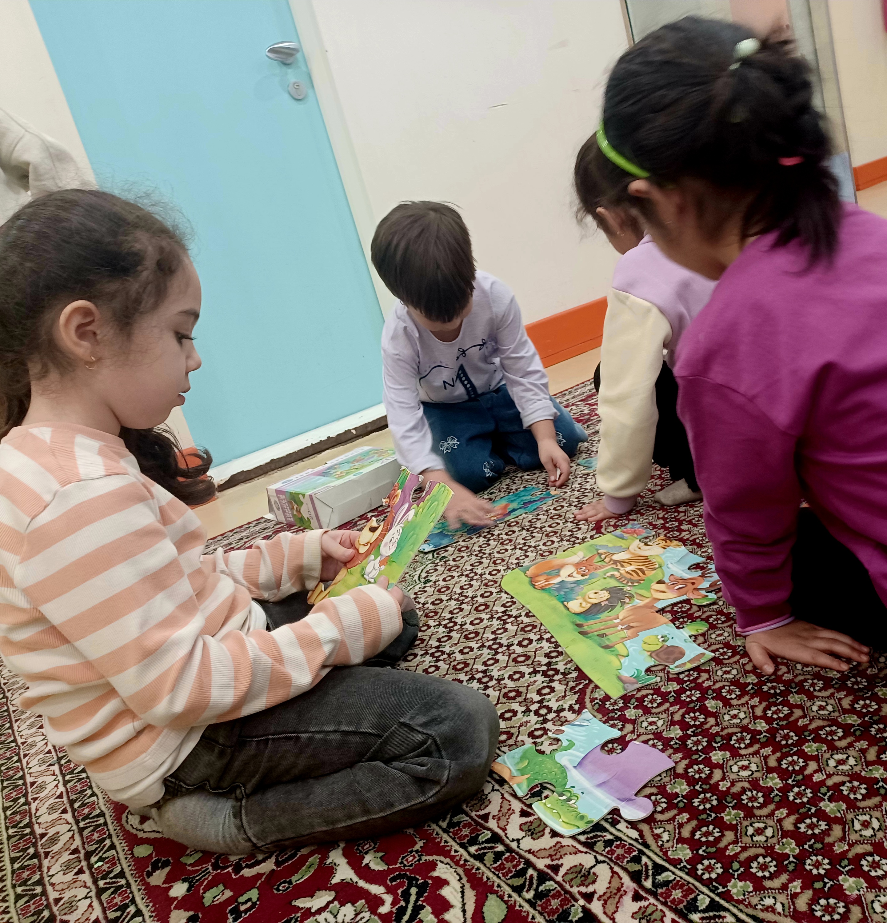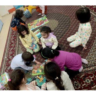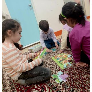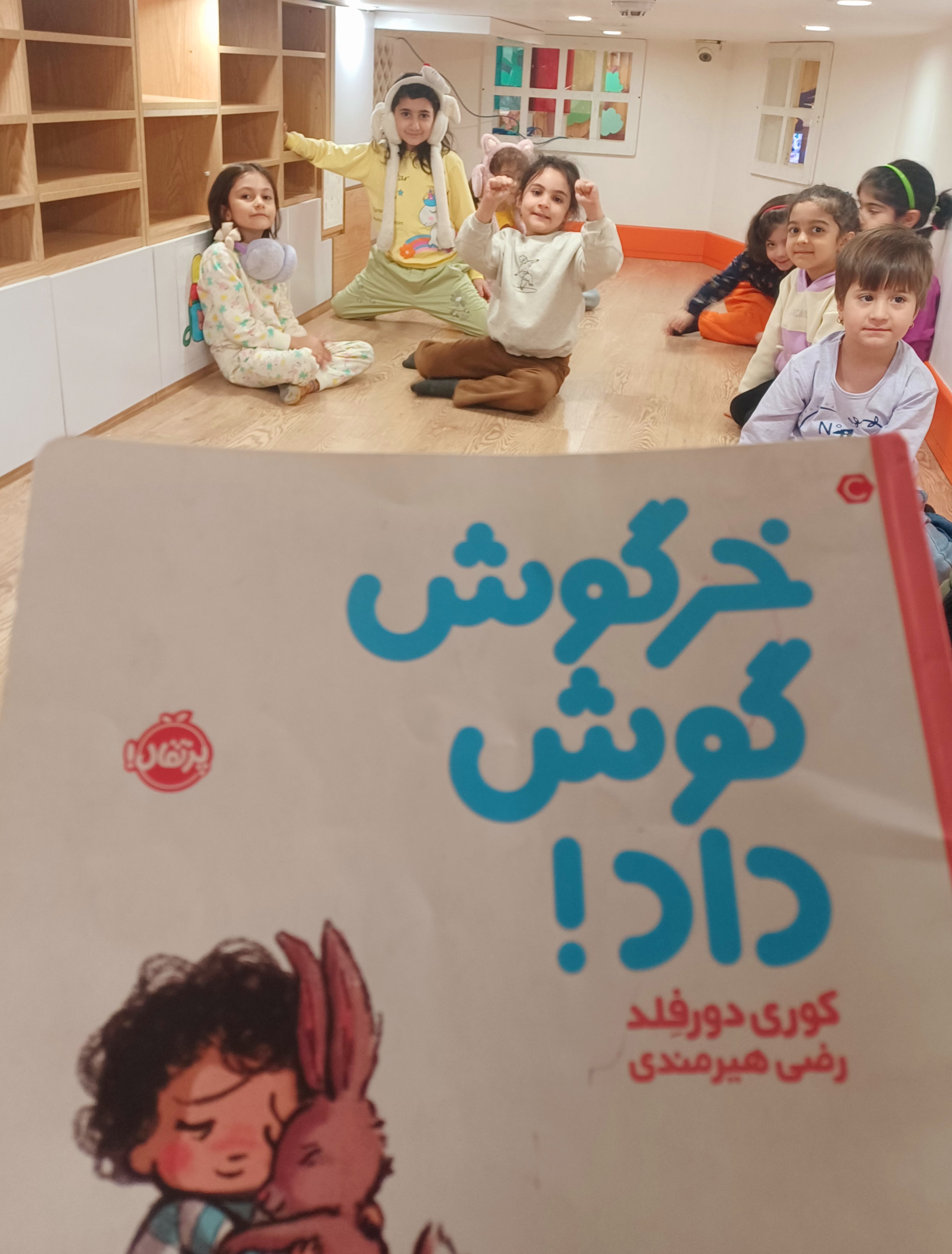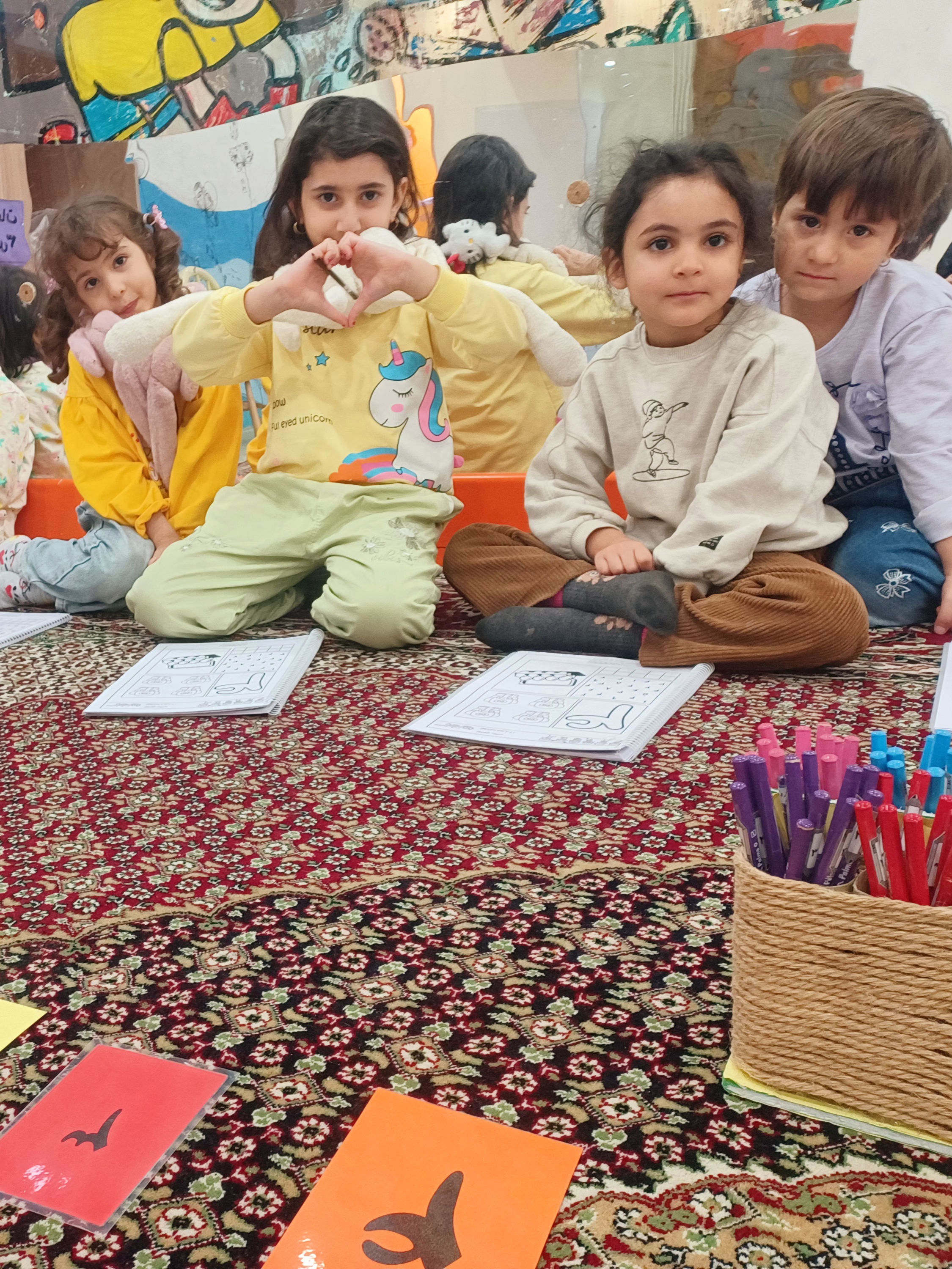 🌸با خاله ریحانه کتاب خواندیم که راجع به خرگوشی بود که برای بودن کنار دوستش و بهتر کردن حال او فقط به حرف های او گوش میداد و با دومینو خونه درست کردیم 🐇
