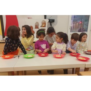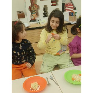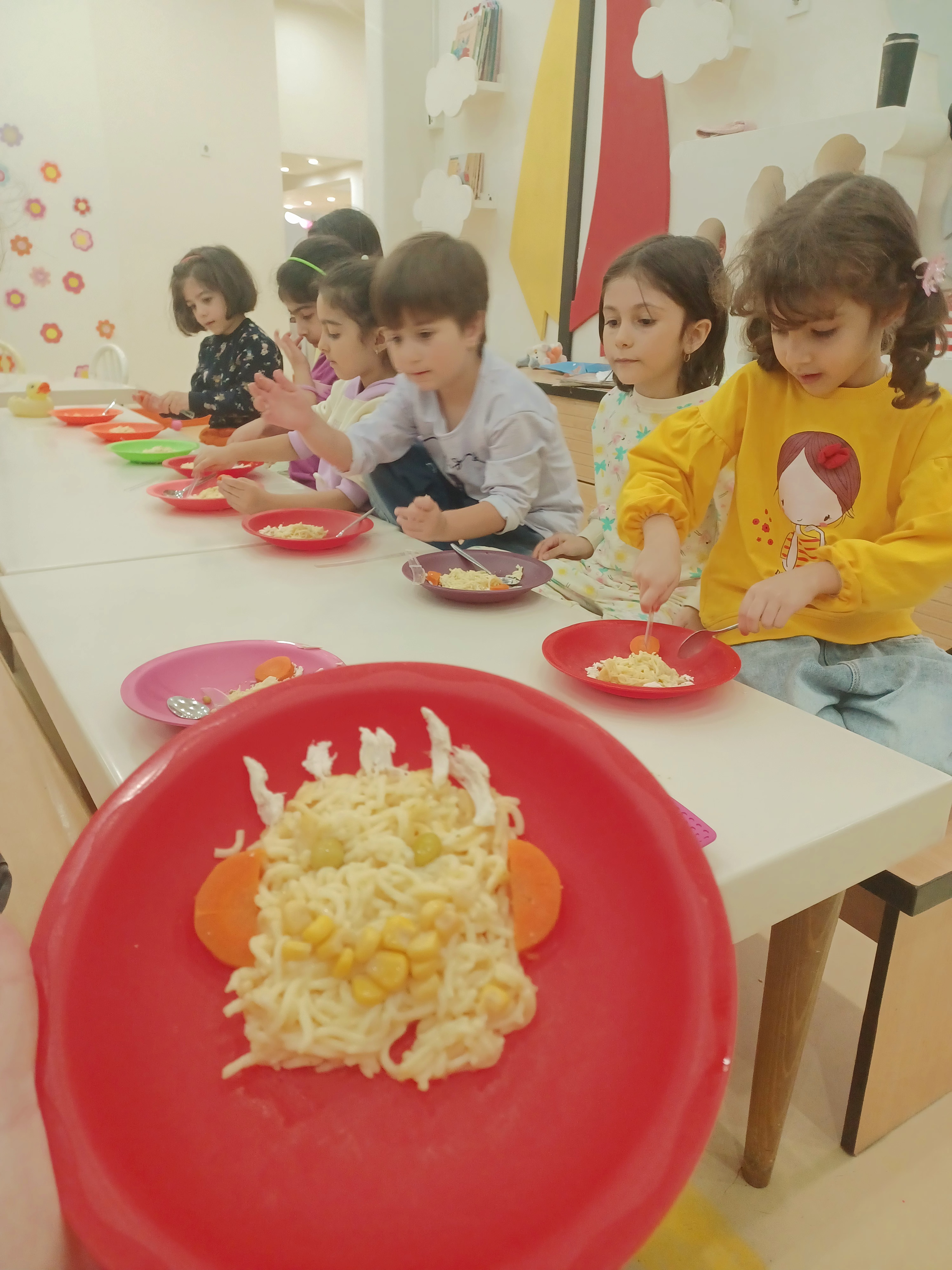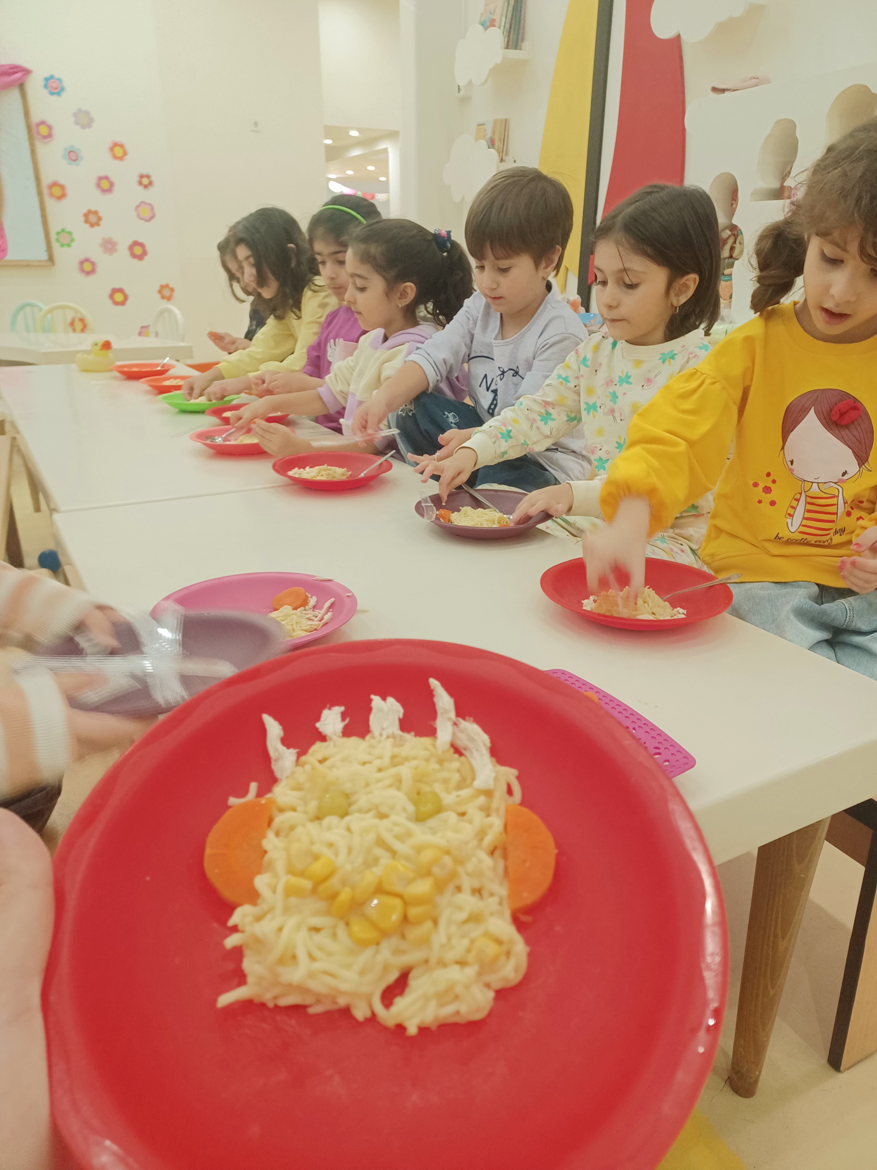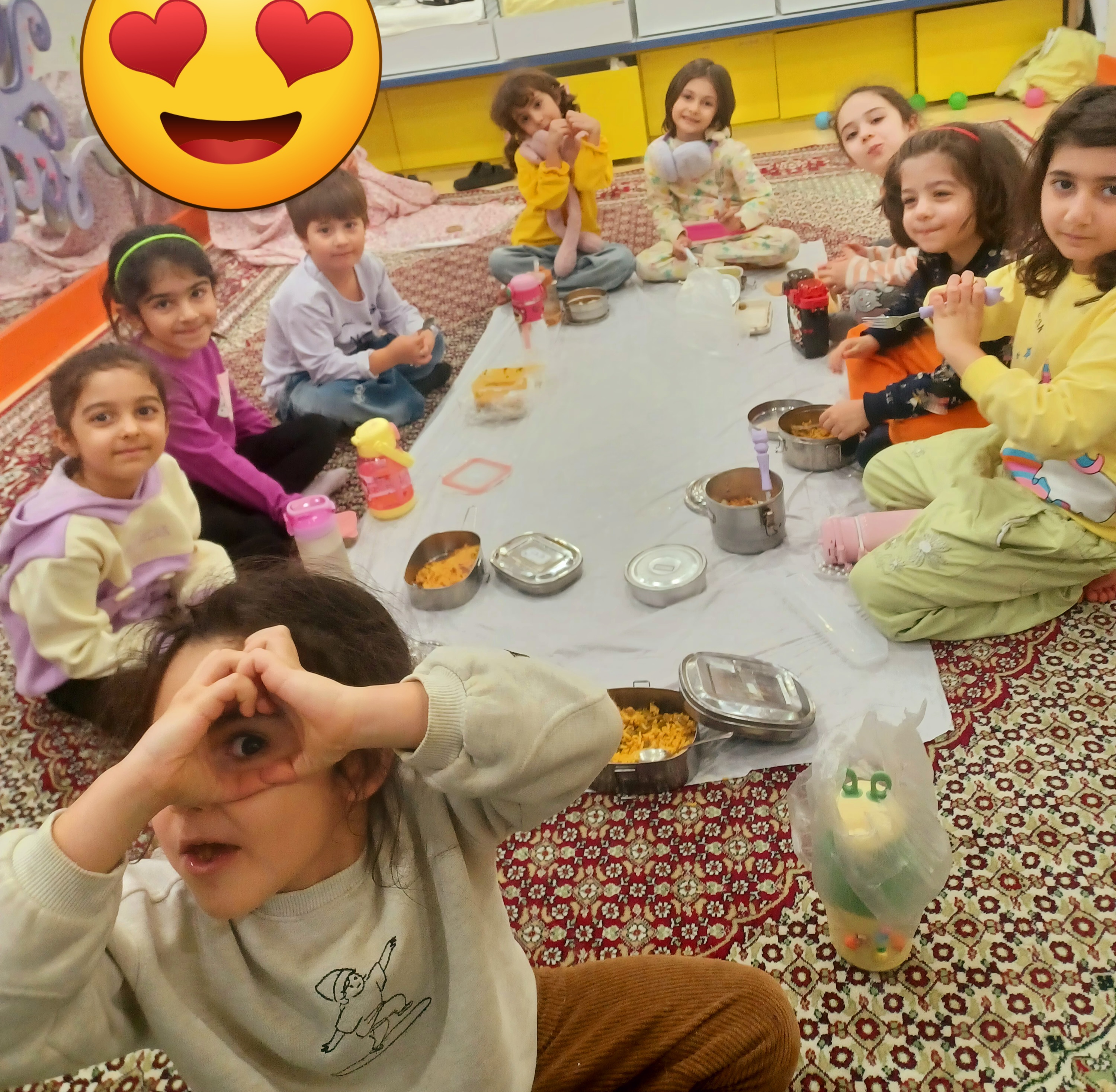 🌸در این کلاس داستان نودل خان را خاله برایمان گفت که احساس تنهایی میکرد و برایش مهمان آمد که بعد از آن احساس خوشحالی میکرد مهمان هایش نخود و هویج و ذرت و مرغ بودند