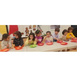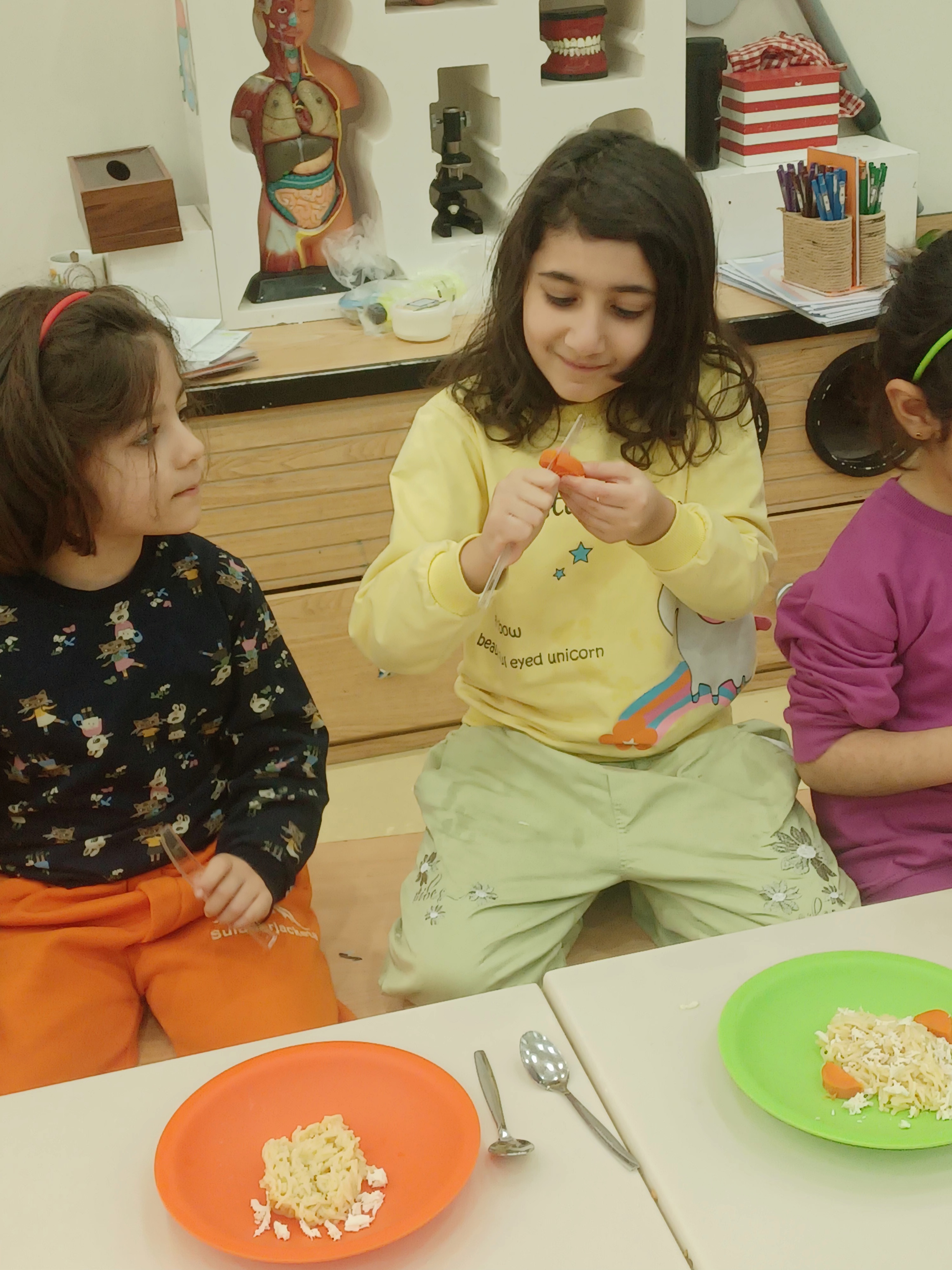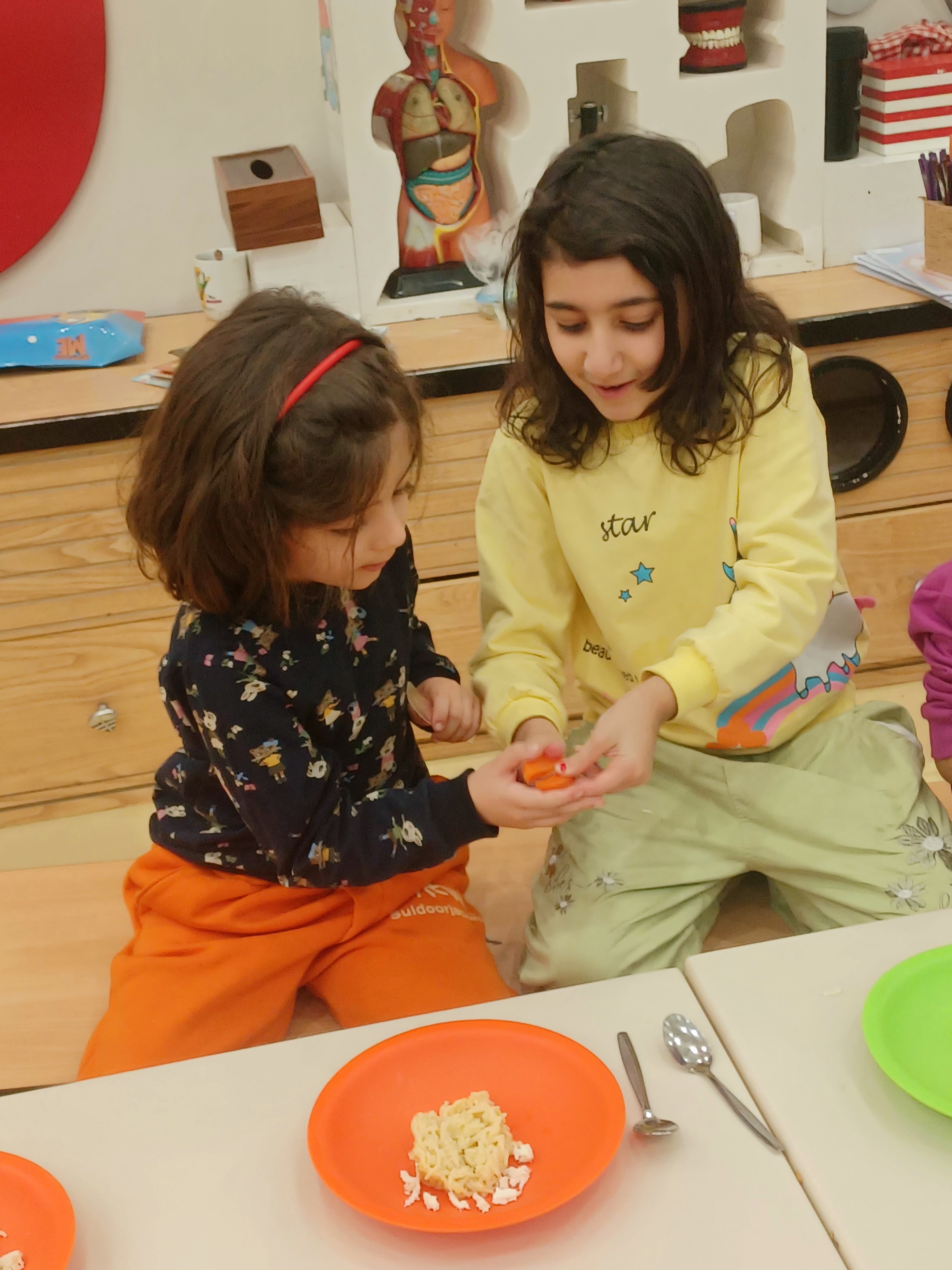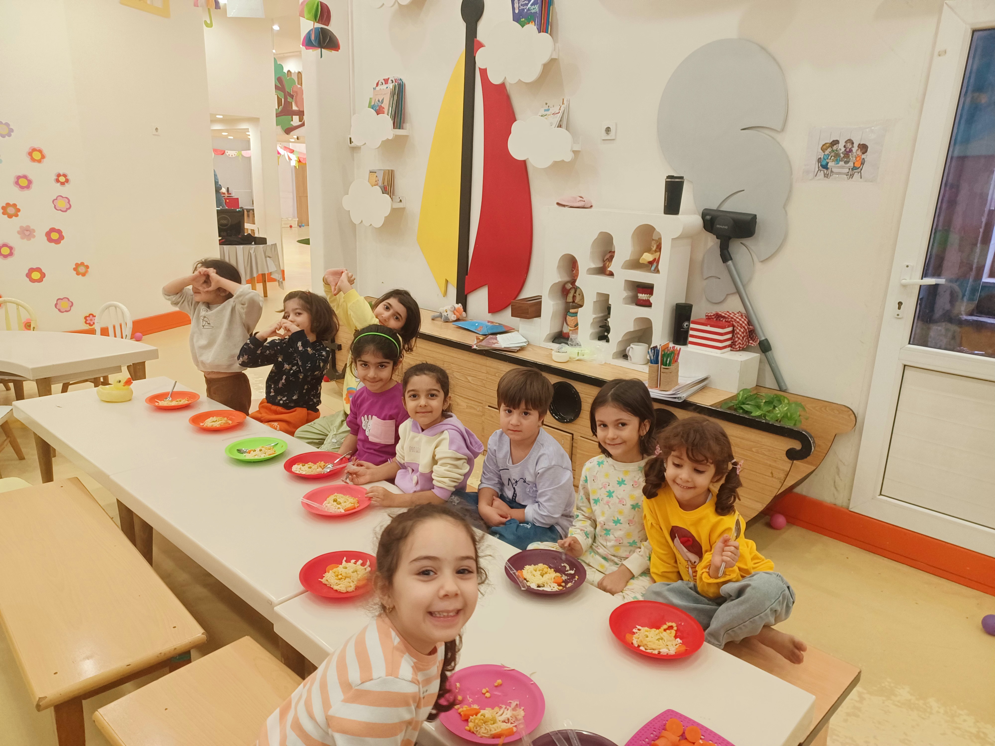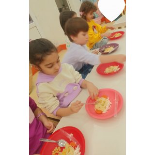 🌸در این کلاس داستان نودل خان را خاله برایمان گفت که احساس تنهایی میکرد و برایش مهمان آمد که بعد از آن احساس خوشحالی میکرد مهمان هایش نخود و هویج و ذرت و مرغ بودند