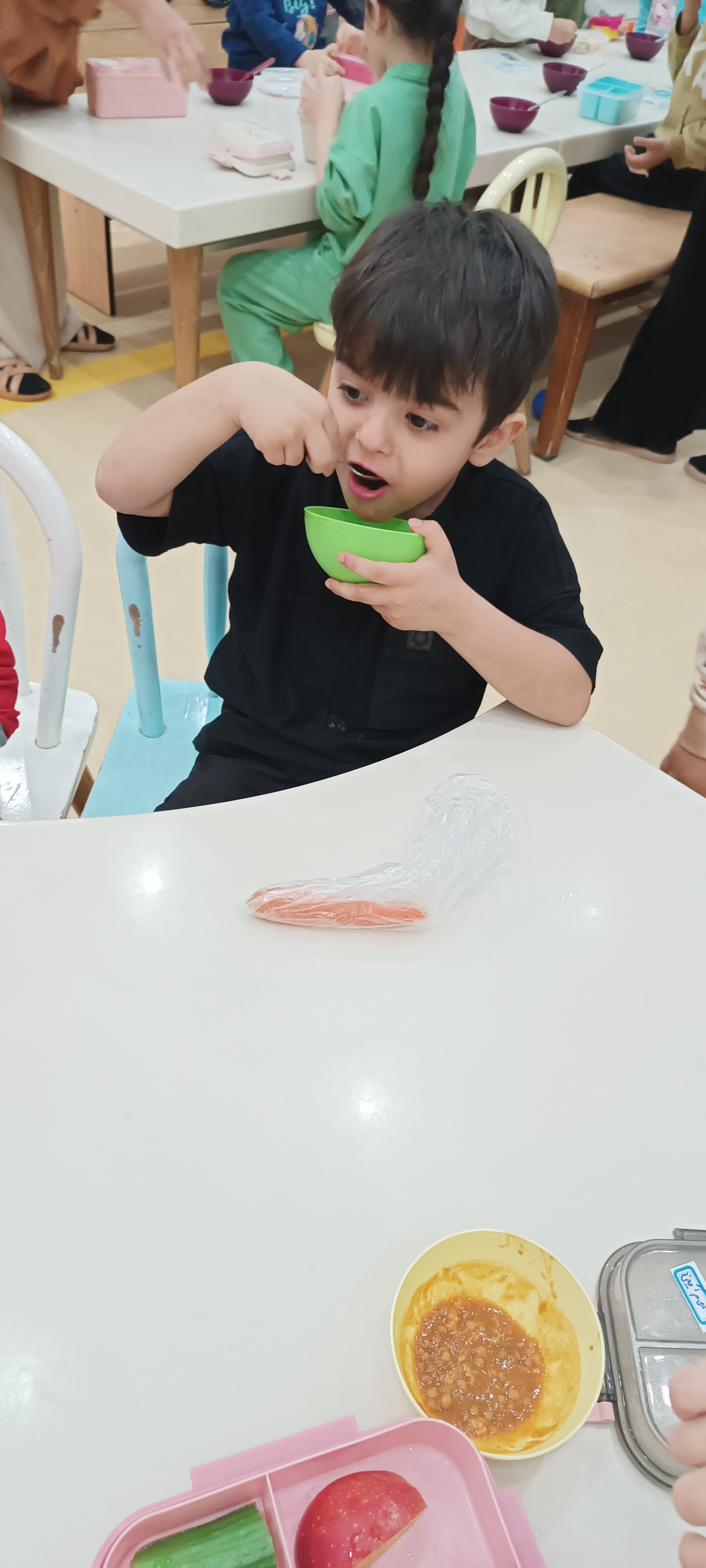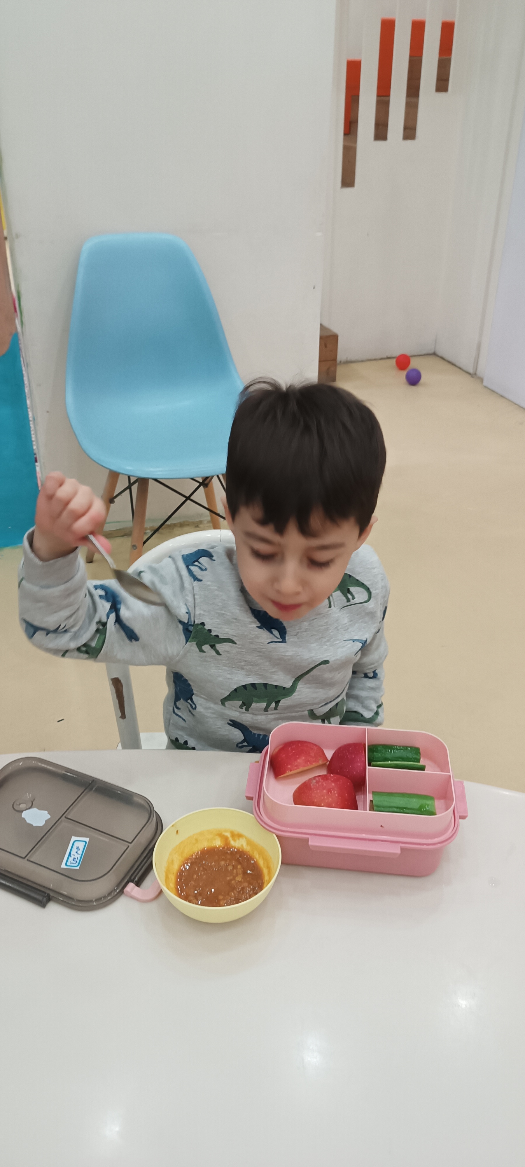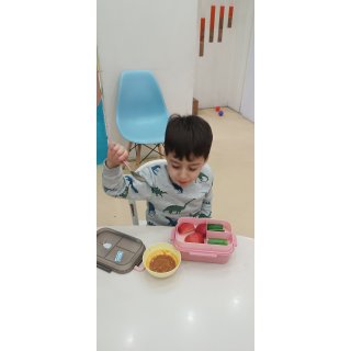 حالا نوبت میان وعده خوشم خوشمزه امام بود یعنی عدسی و میان وعدههایی که مامان باباهای عزیز زحمت کشیدن 🍌🍎🌮