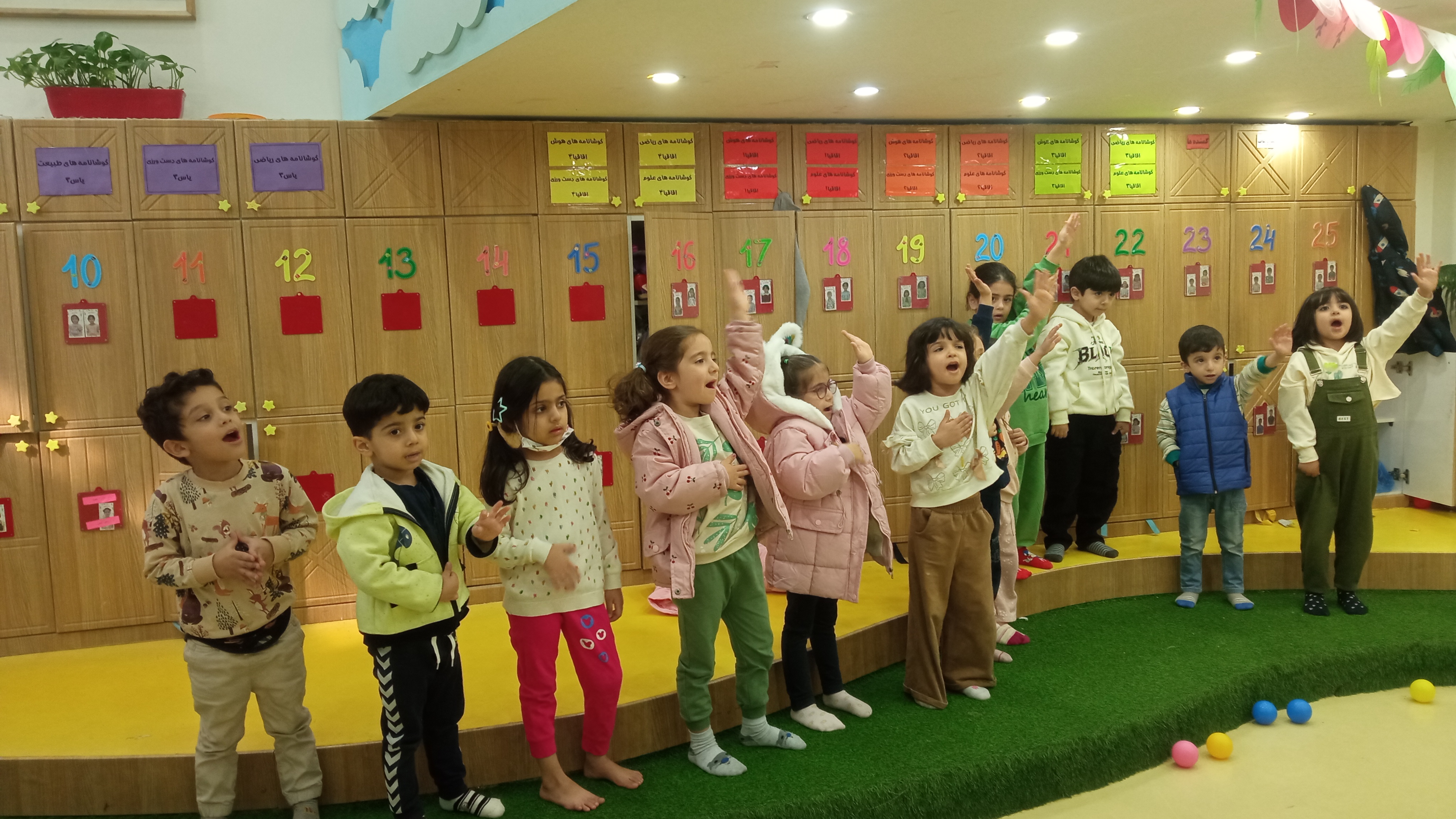 رفتیم کلاس و اول حضور و غیاب کردیم ،راجع به آب و هوا صحبت کردیم و شعر ماه پاییز رو باهم خوندیم و کتاب کرم کوچولو رو خوندیم و بعد راجع ب