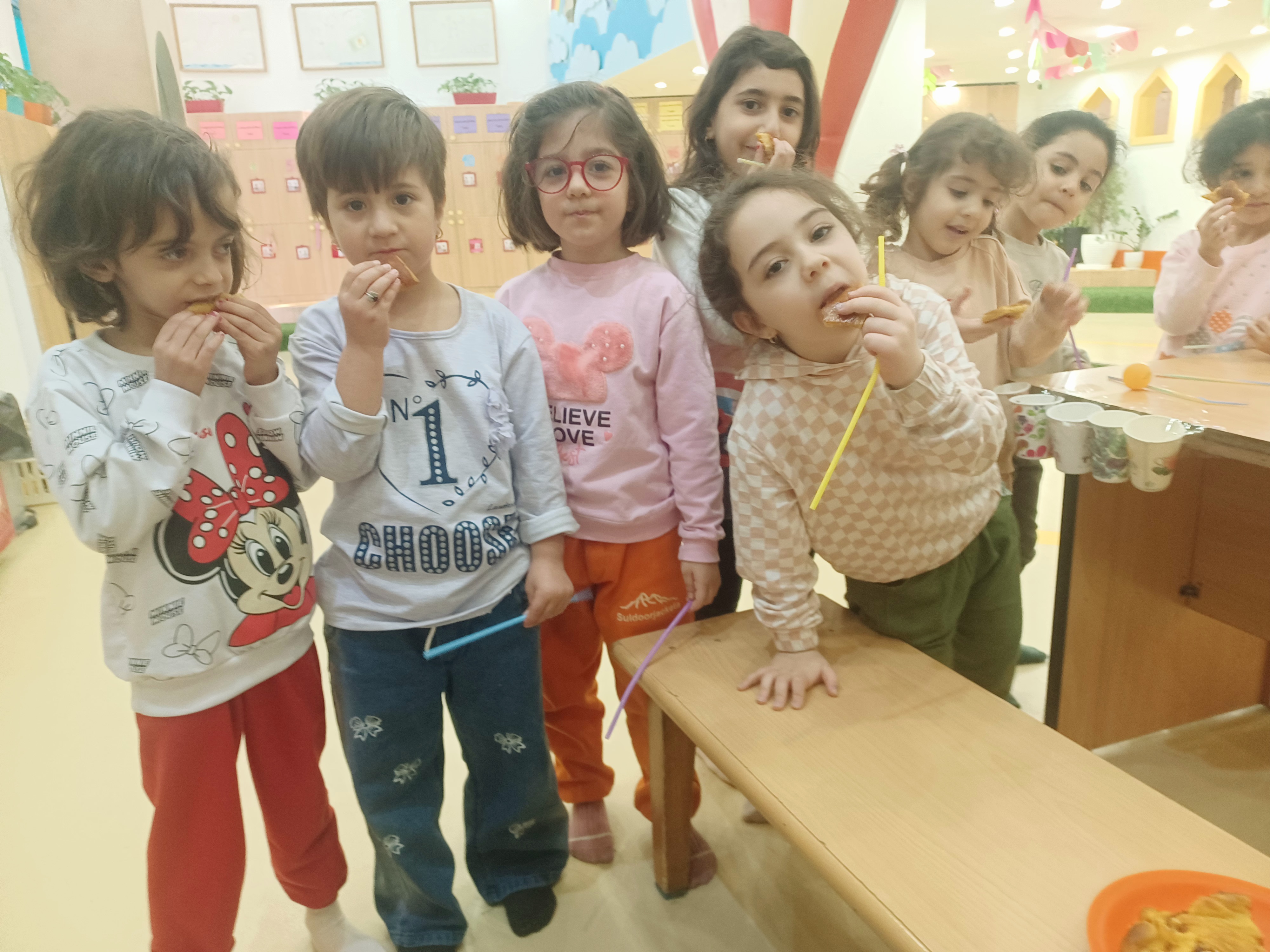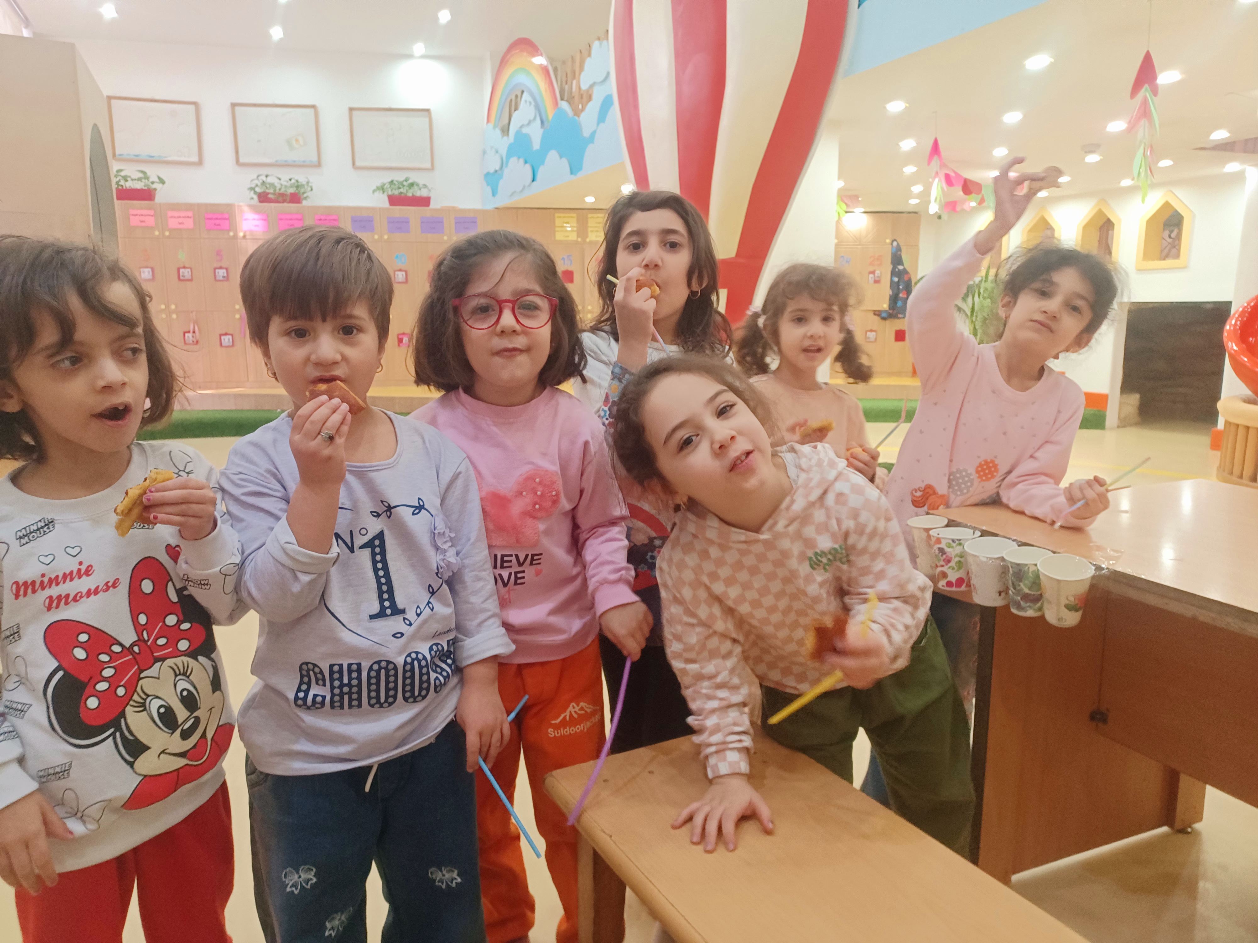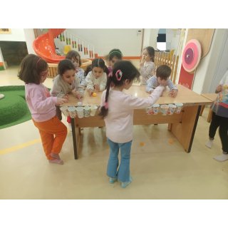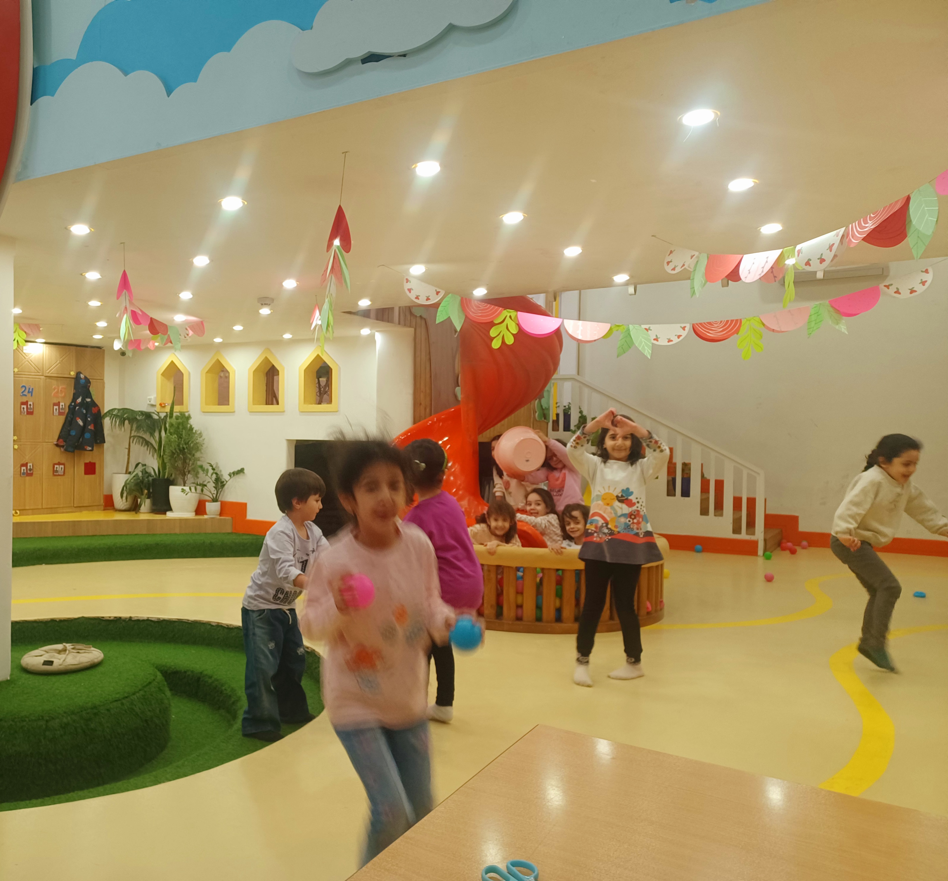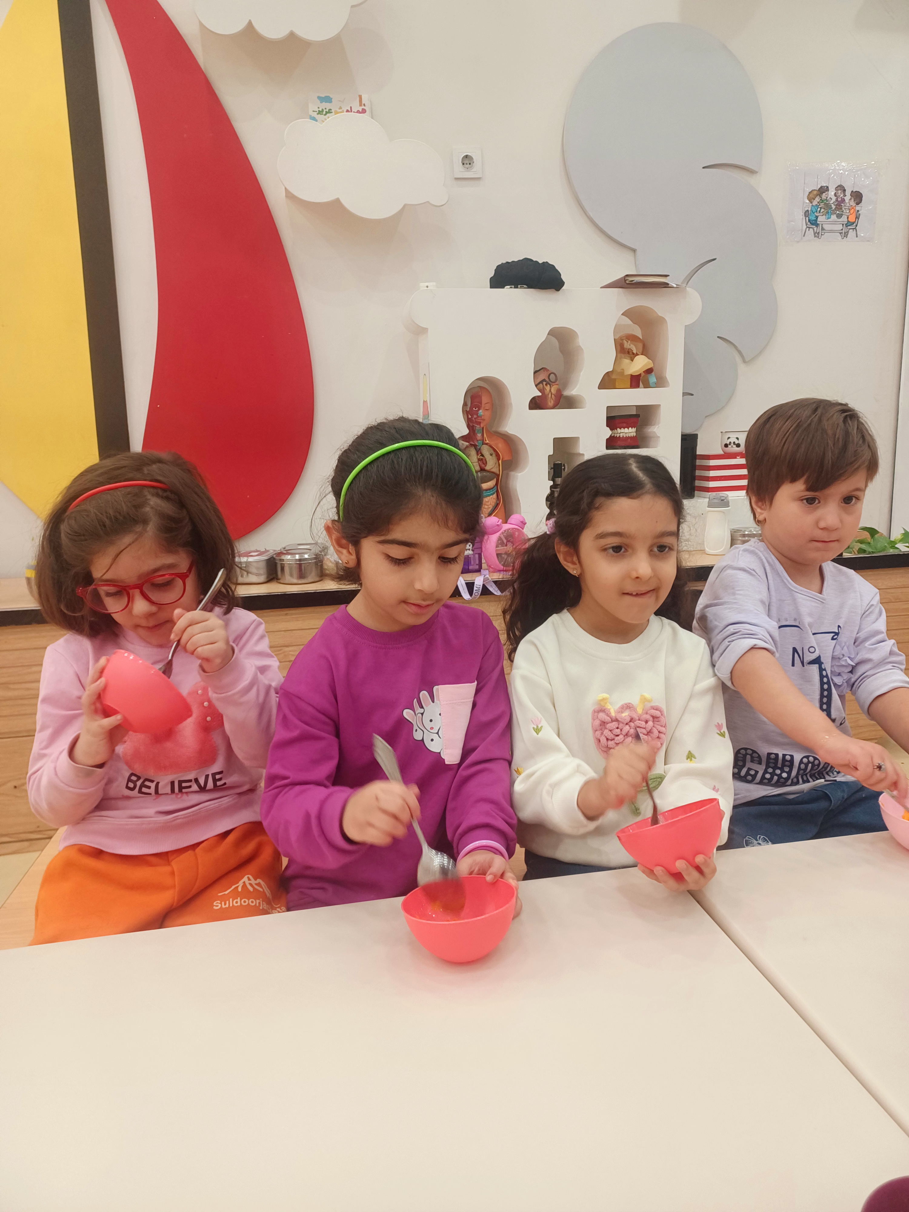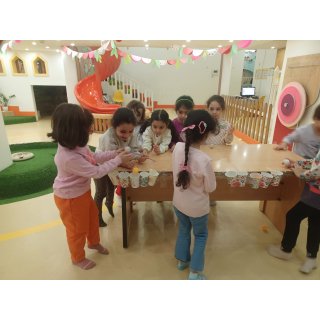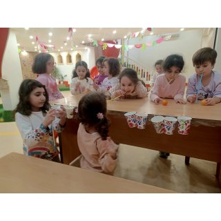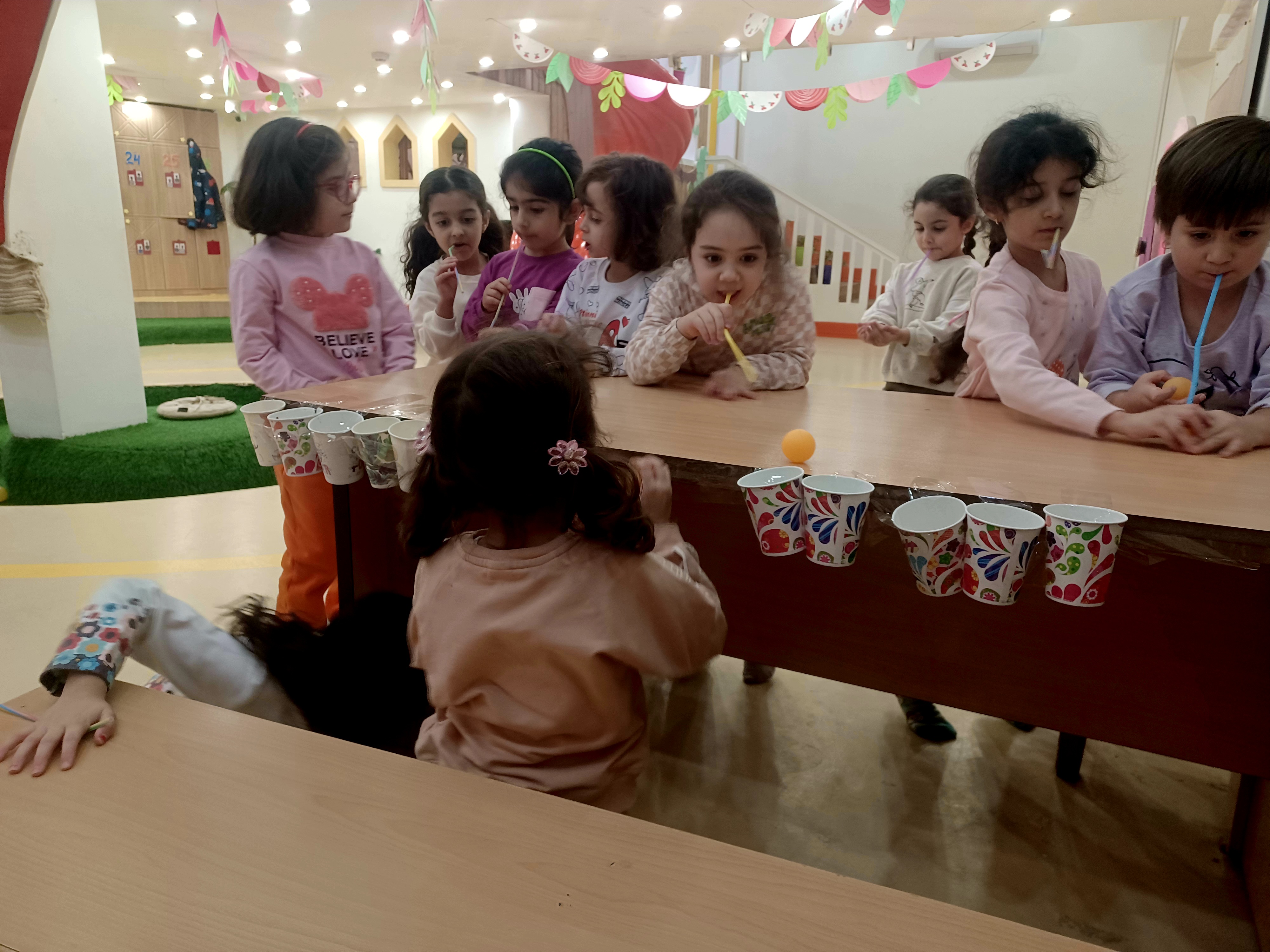 👈بازی خلاق:سُرسُر و خاله زهرا در انتهای هر میز یک لیوان میچسبونه به هرکدوممون نی میده که با فوت داخل نی ما توپ می ندازیم داخل لیوان،افزایش تمرکز،هماهنگی اعضای بدن،افزایش نشاط
