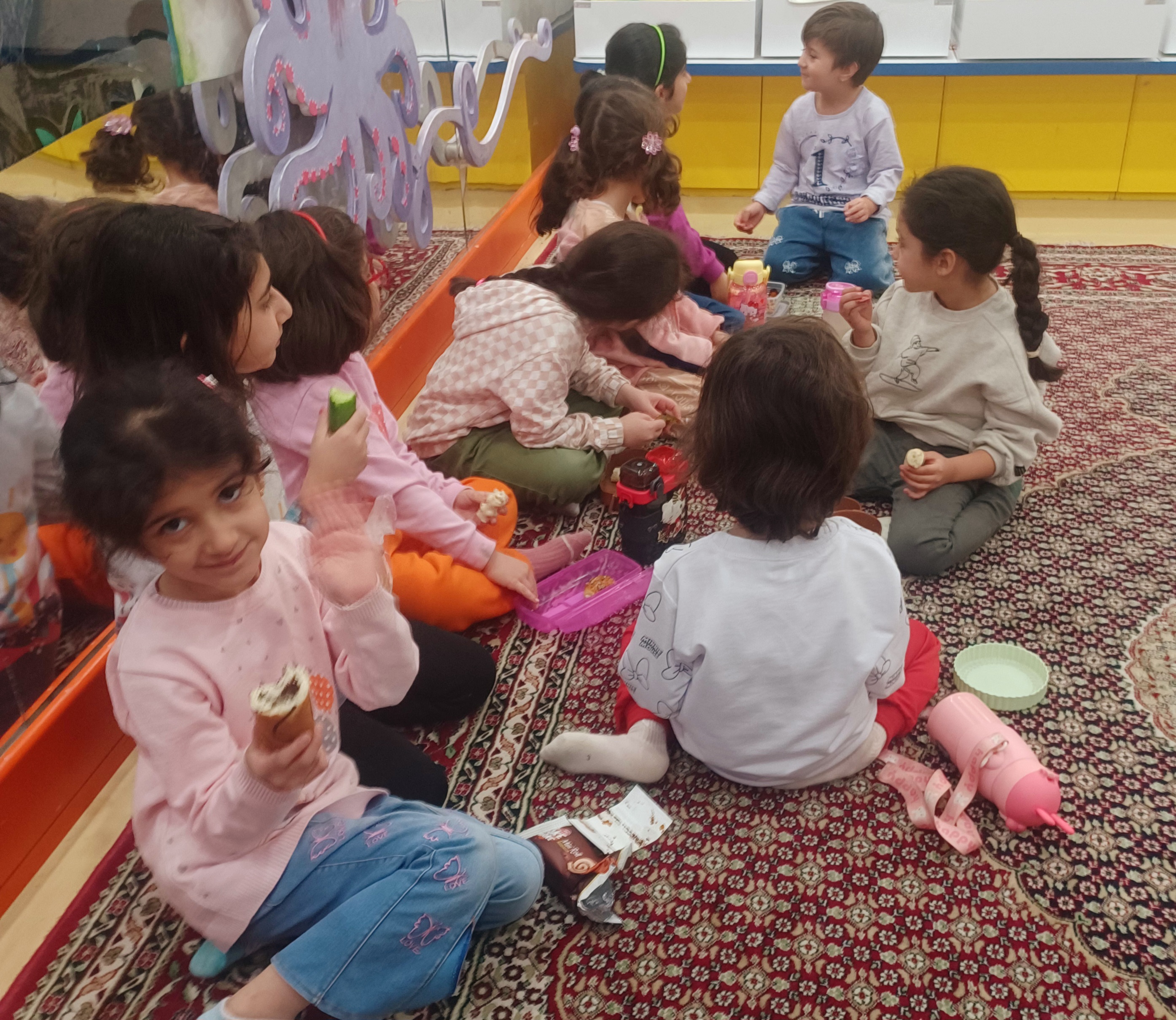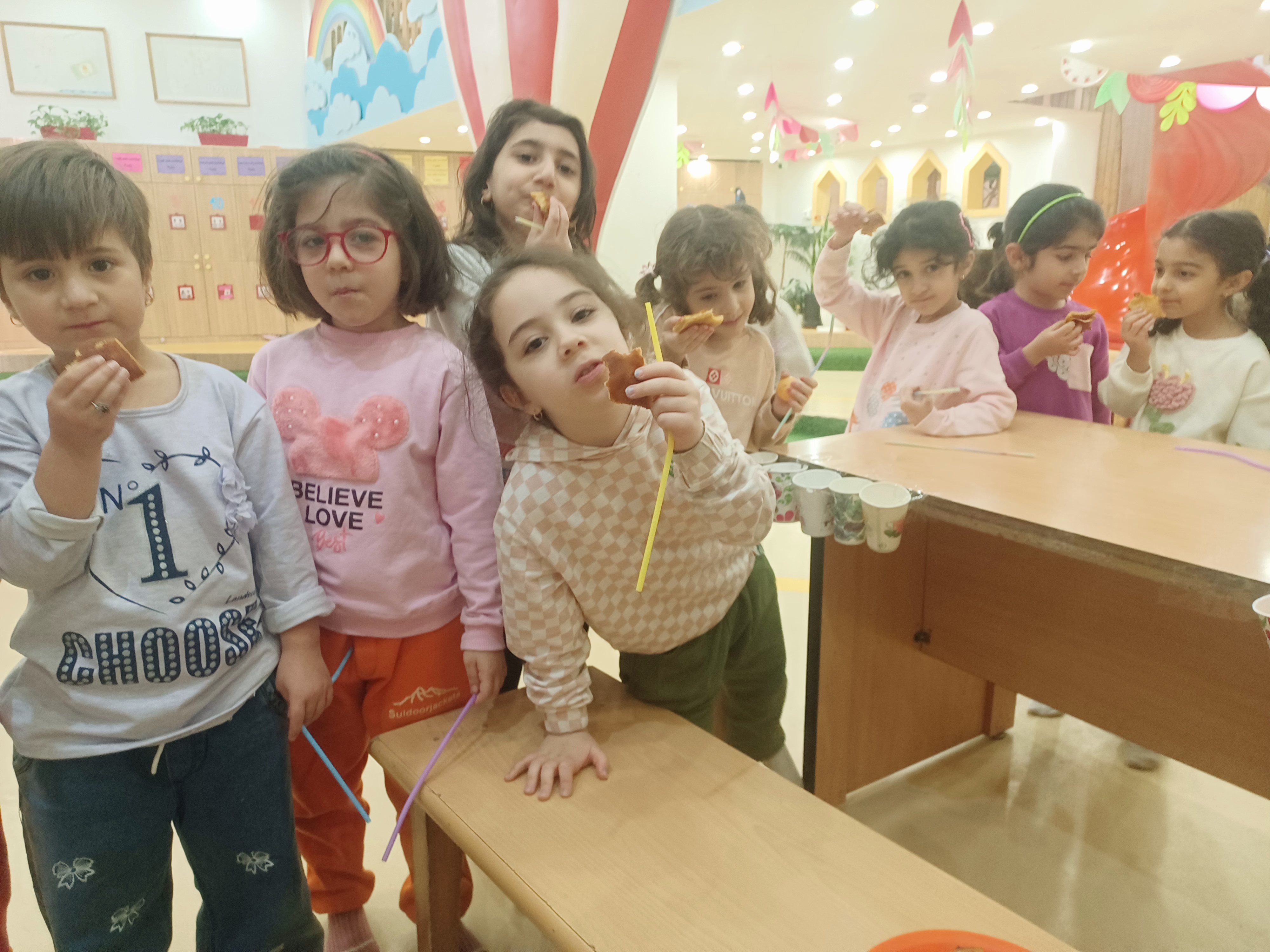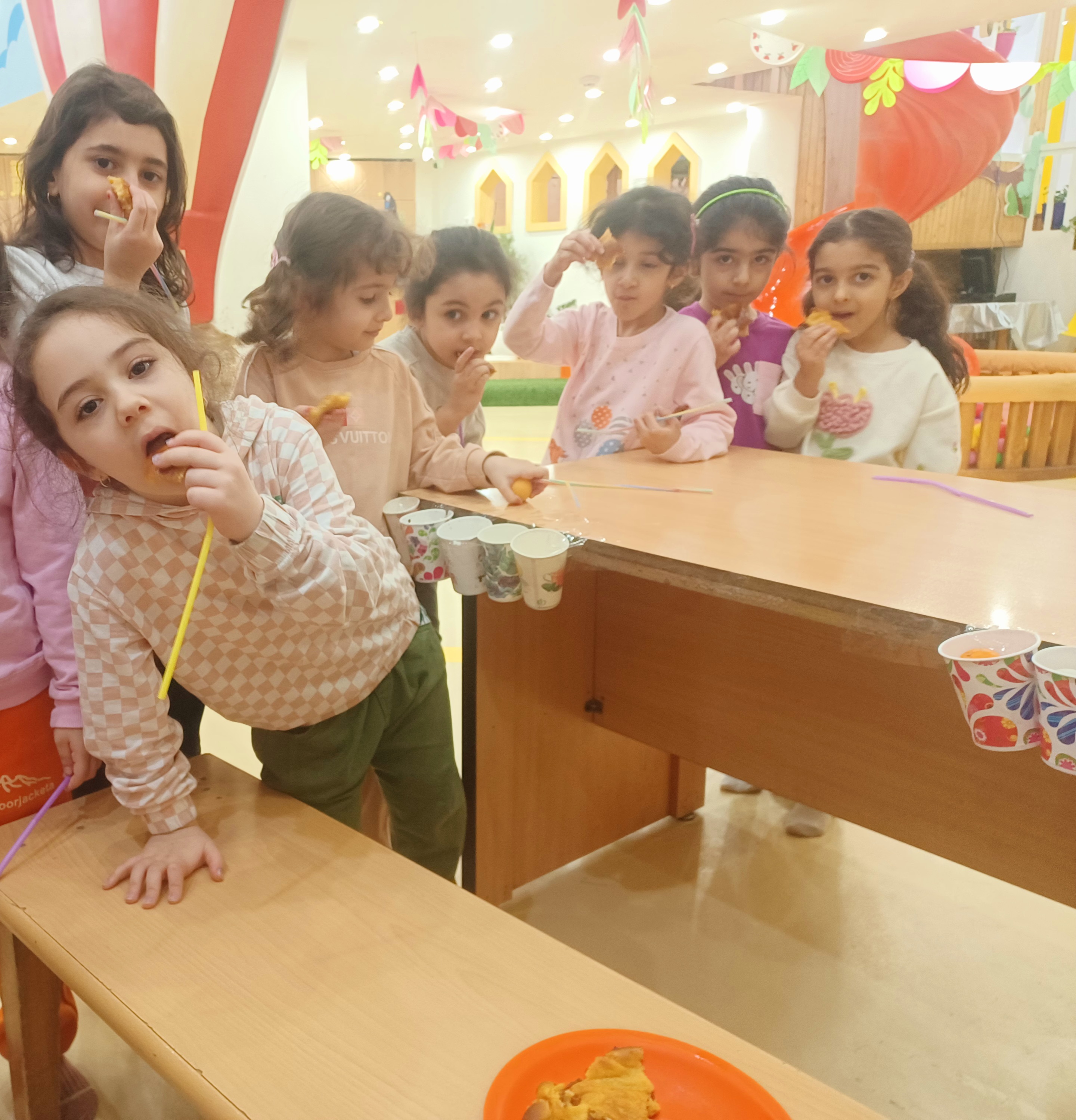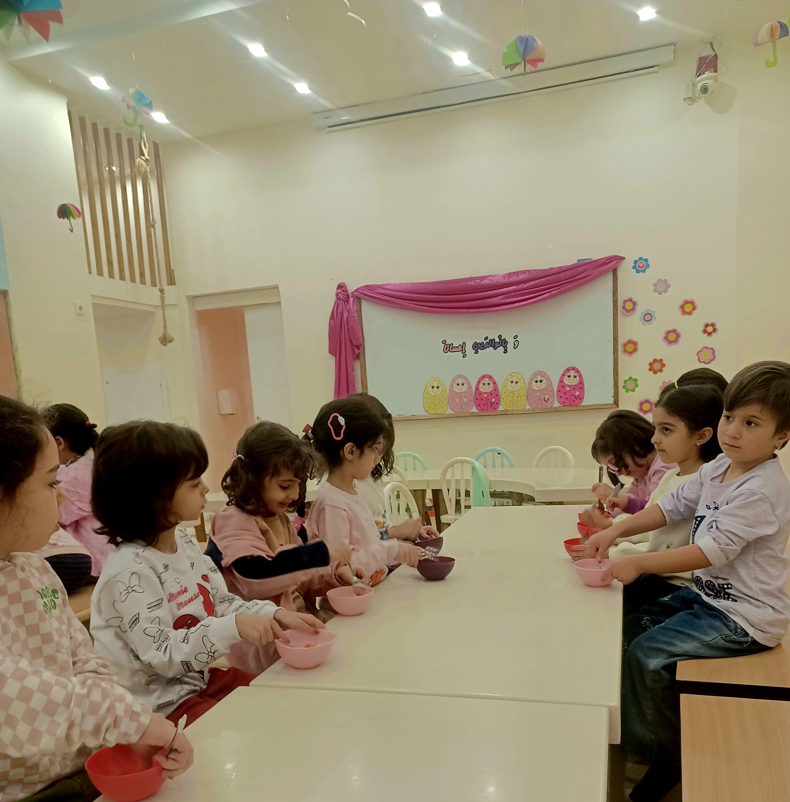 👈بازی خلاق:سُرسُر و خاله زهرا در انتهای هر میز یک لیوان میچسبونه به هرکدوممون نی میده که با فوت داخل نی ما توپ می ندازیم داخل لیوان،افزایش تمرکز،هماهنگی اعضای بدن،افزایش نشاط