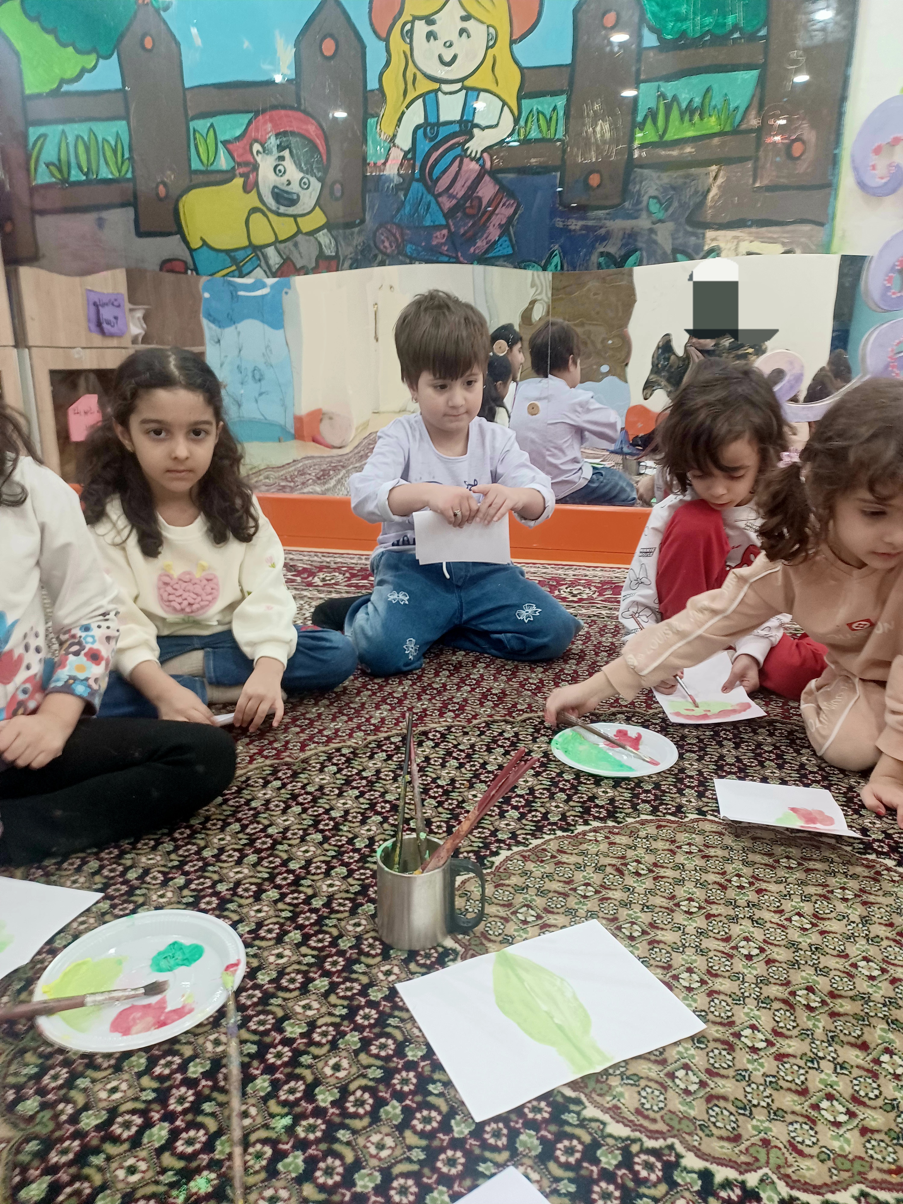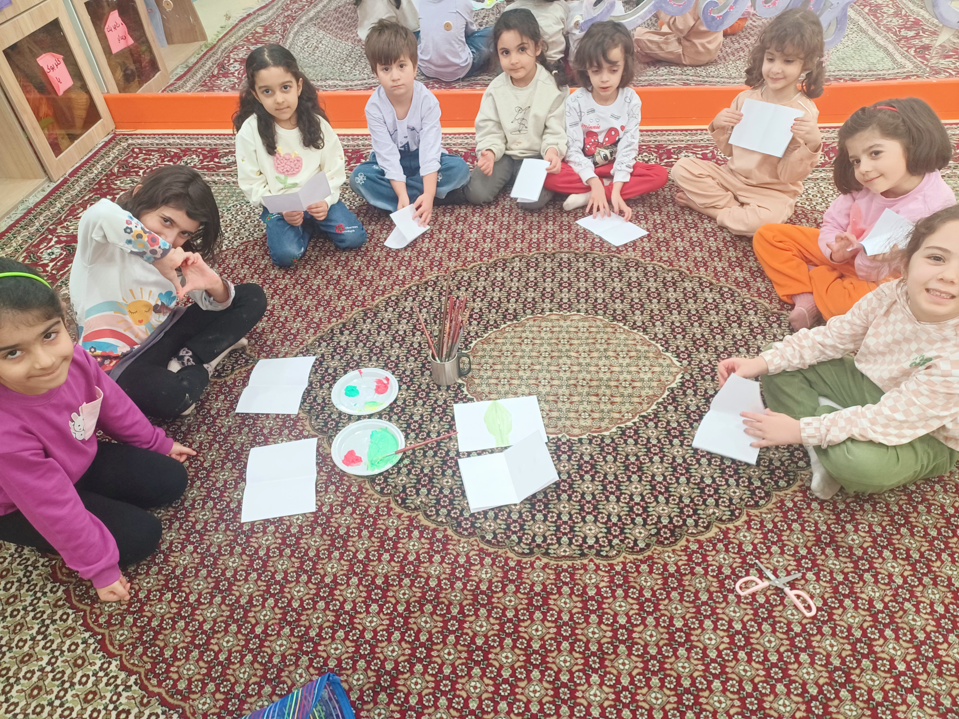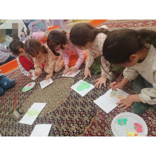 👈فکر برکر آموزش تقارن بچه ها با رنگ بند انگشتی روی نصف کاغذ نقاشی می کنن ،کاغذ تا می شخ و تصویر متقارن در میاد مفهموم تقارن بصورت دیداری و عملی آموزش داده میشه