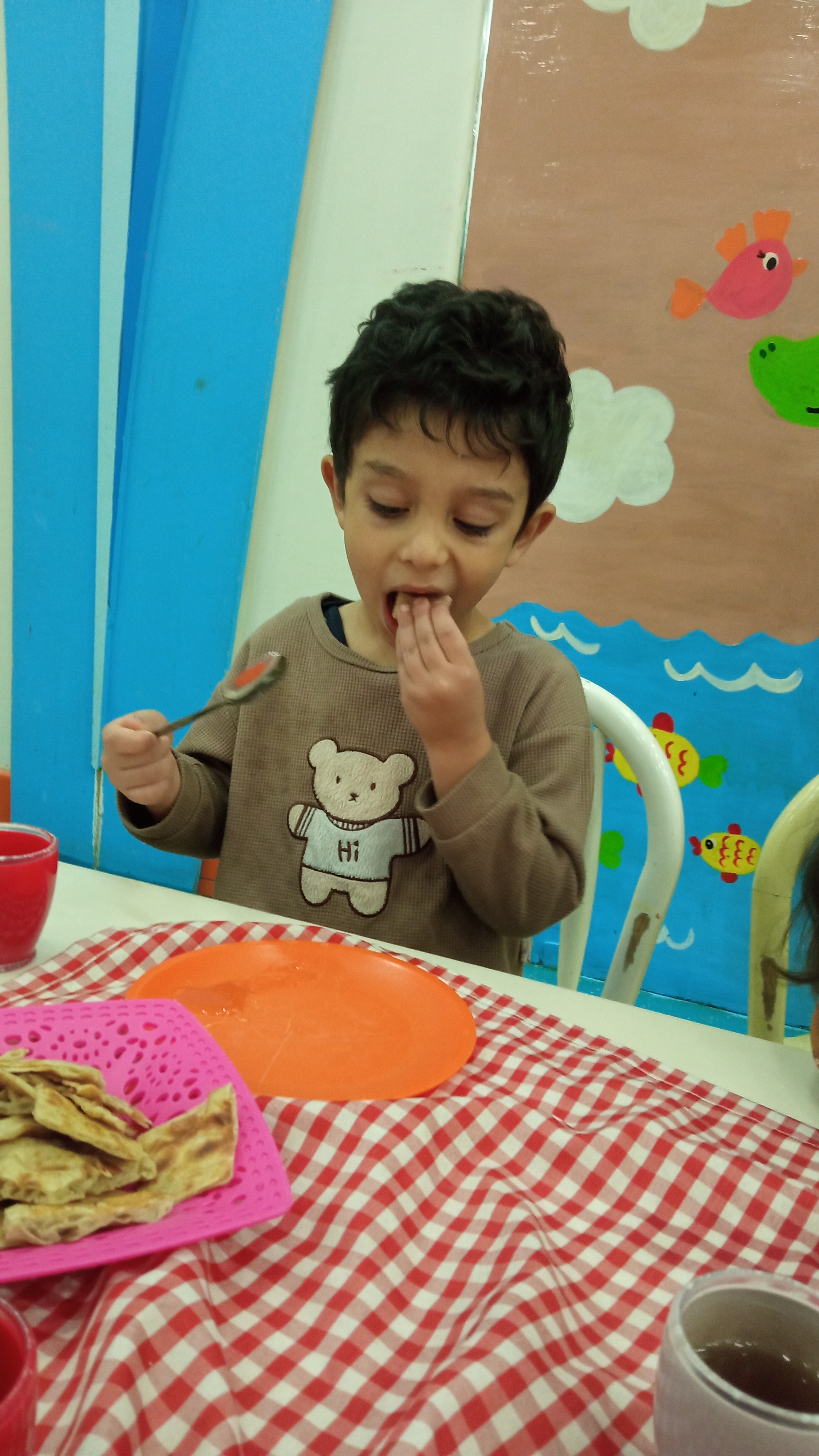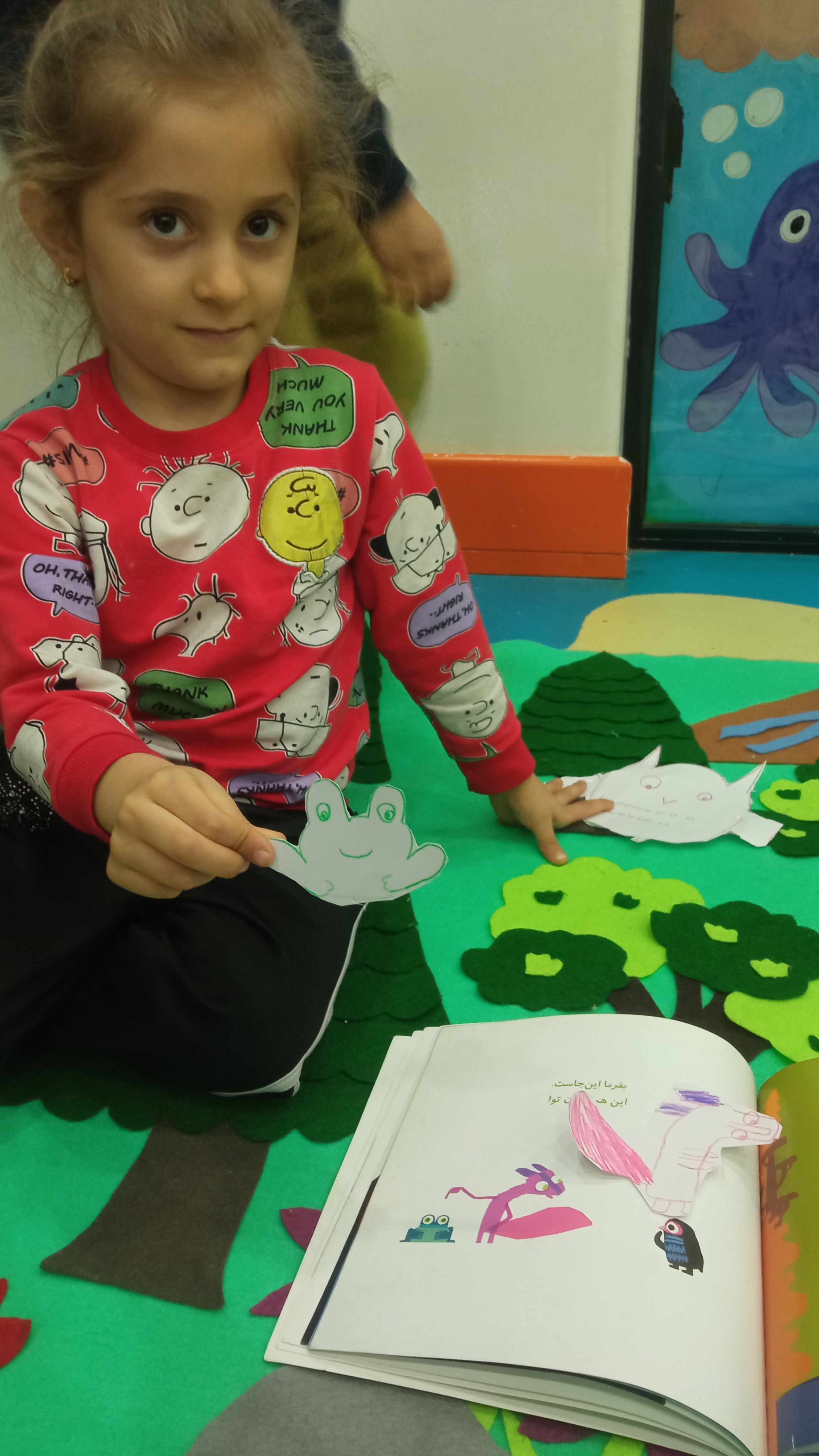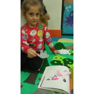 که خرس کوچولو اومد برامون قصه ی آشناییش با احساسات رو گفت و بعدش بچه ها نقاشی کشیدن😁