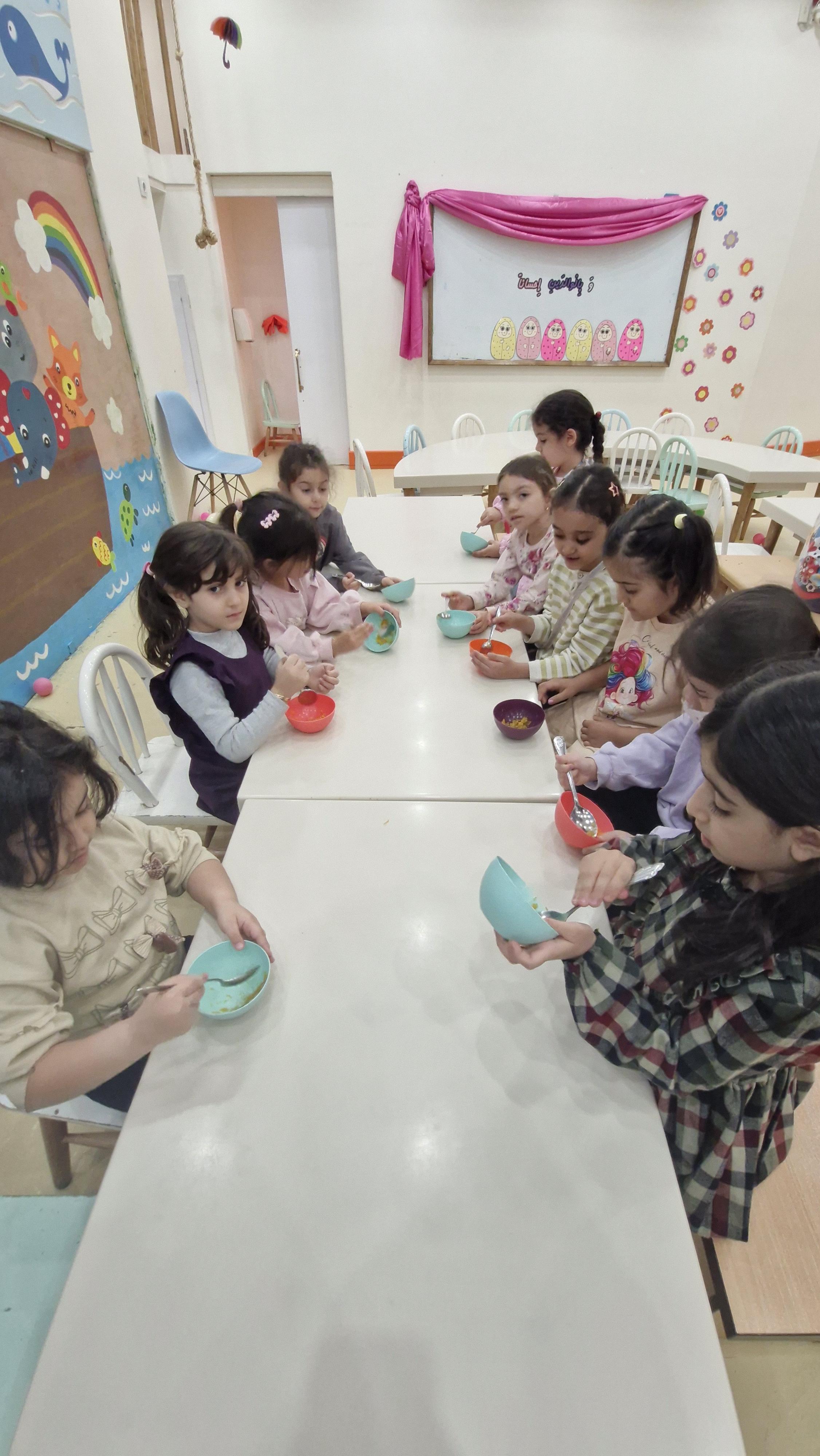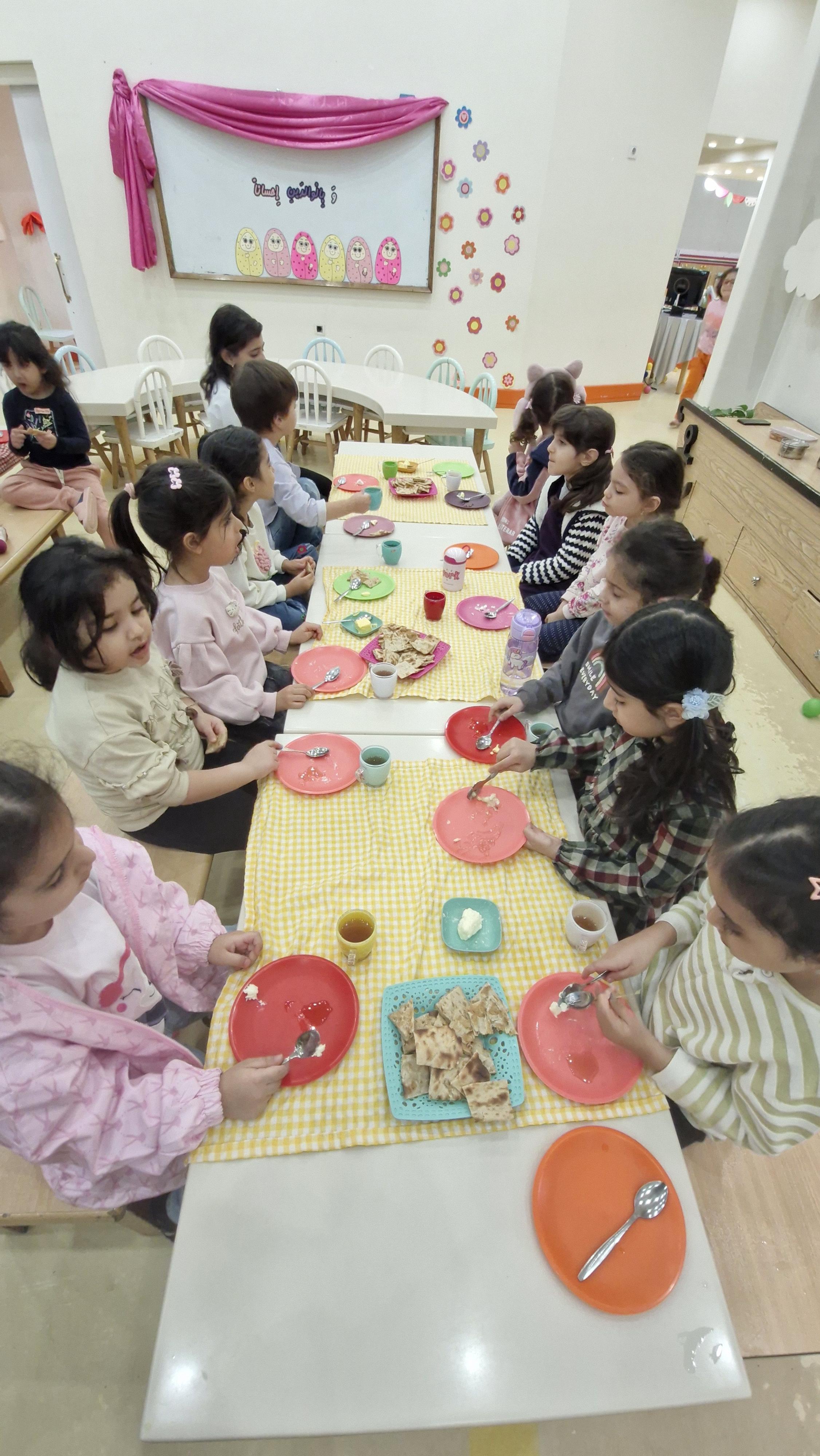 🌸بعد از خوردن صبحانه خوشمزه مون( نان وکره و عسل)🍞🍯 رفتیم صبحگاه پر انرژی شدیم با خوشحالی برای کلاس هامون آماده بشیم