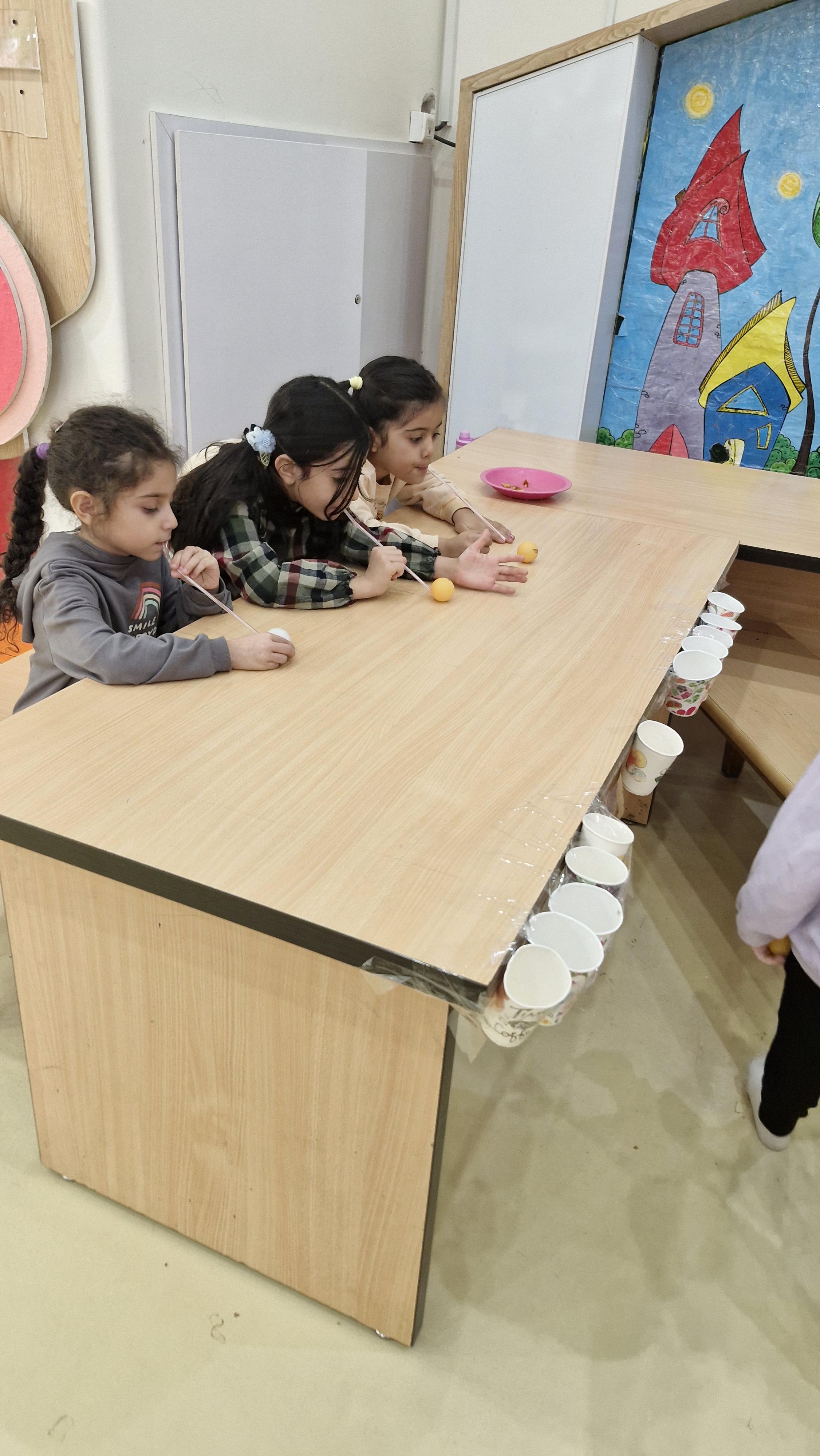 کلاس بدین صورت بود که با نی توپها را فوت میکردیم تا داخل لیوانهایی که به میز چسبانده شده بود بیفتد🏐