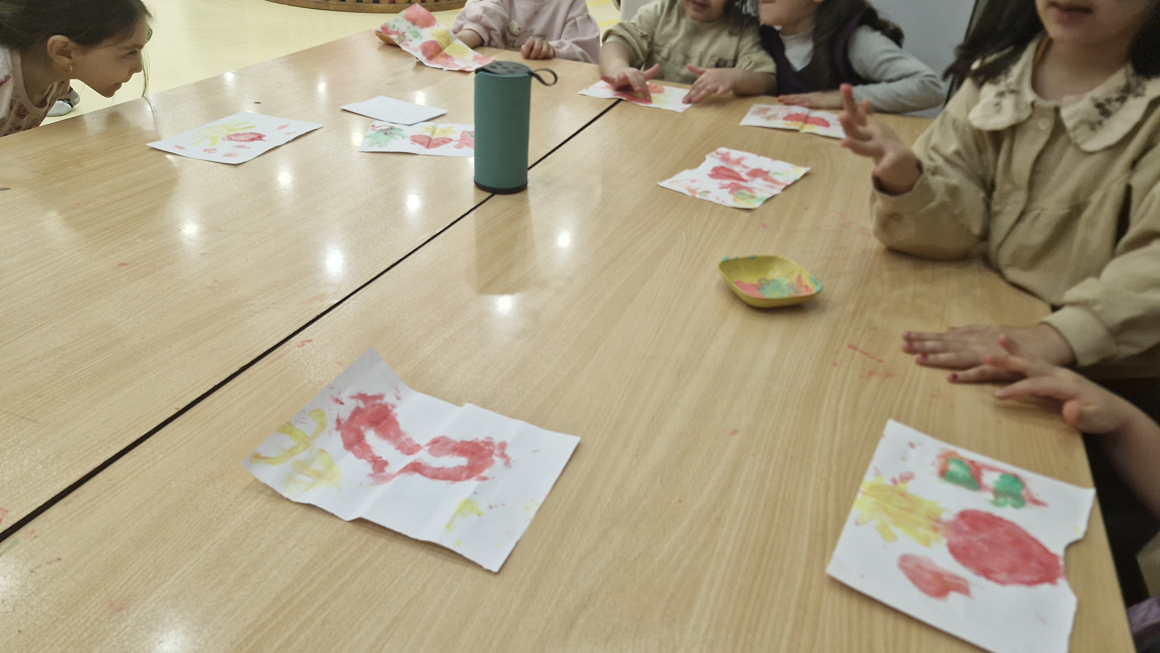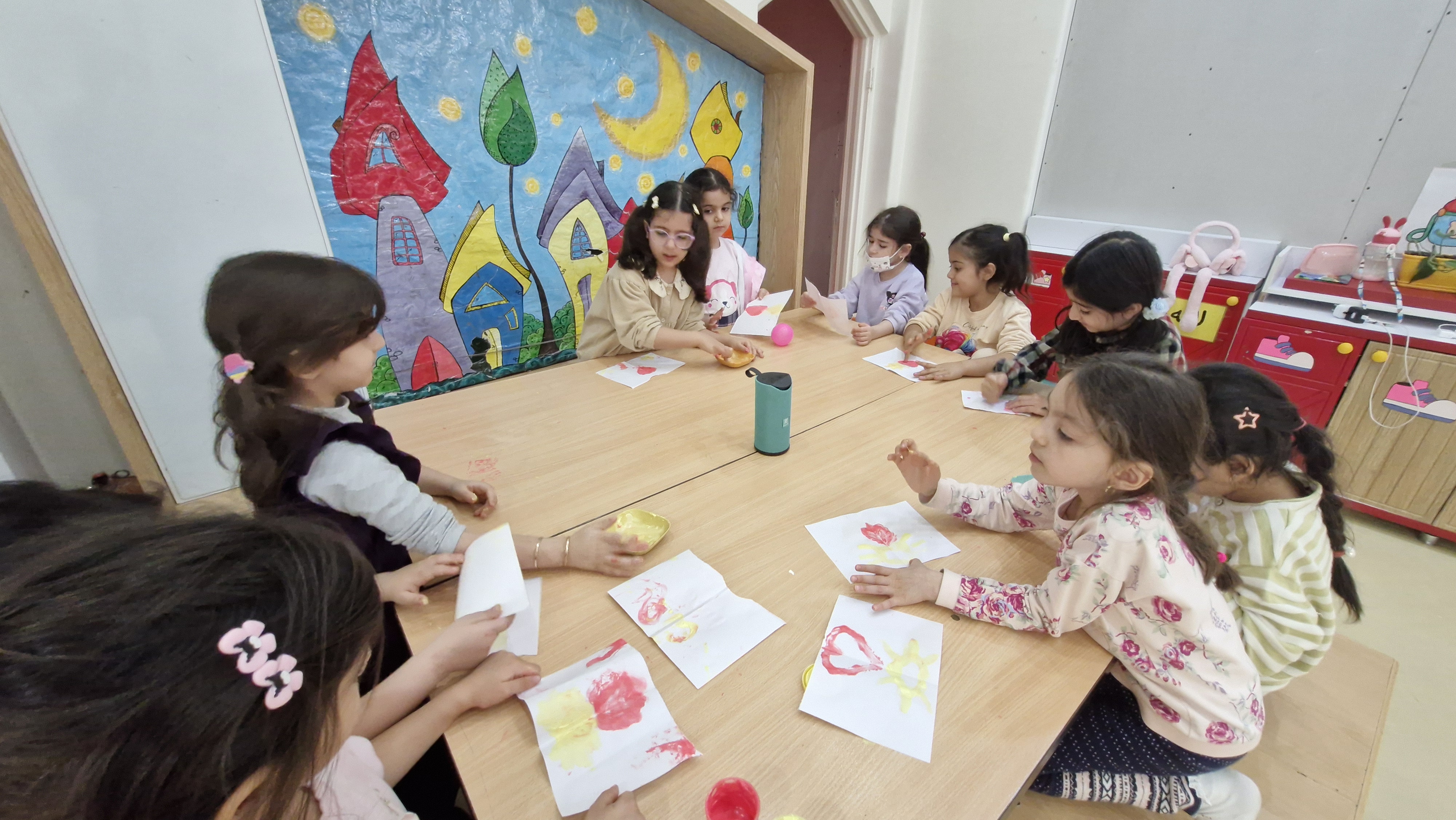 ابتدا کاغذهایی را که خاله به ما داده بود را نصف کردیم در یک نیمه نصف یک نقاشی را کشیدیم مثل نصف قلب و خورشید بعد کاغذ را به هم چسباندیم و نیمه دیگر آن شکل را کامل کرد ☀️❤️