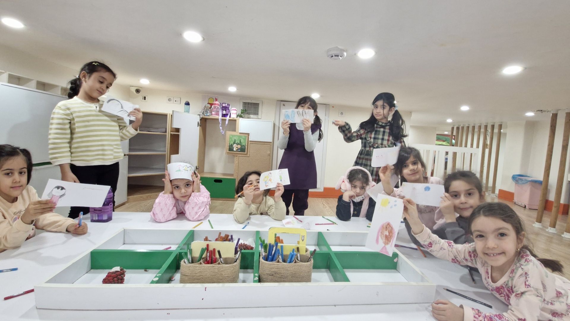 🌸بعد با خاله نادره نمایش خوانی داشتیم، این کلاس مون خیلی متفاوت بود خاله مارو به دو گروه کرد دو تا کتاب به ما دادند ما بر اساس شکلها داستانی خودمان برایشان میگفتیم بعد از آن برای همکلاسیهایمان داستان را تعریف میکردیم🎭