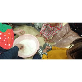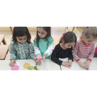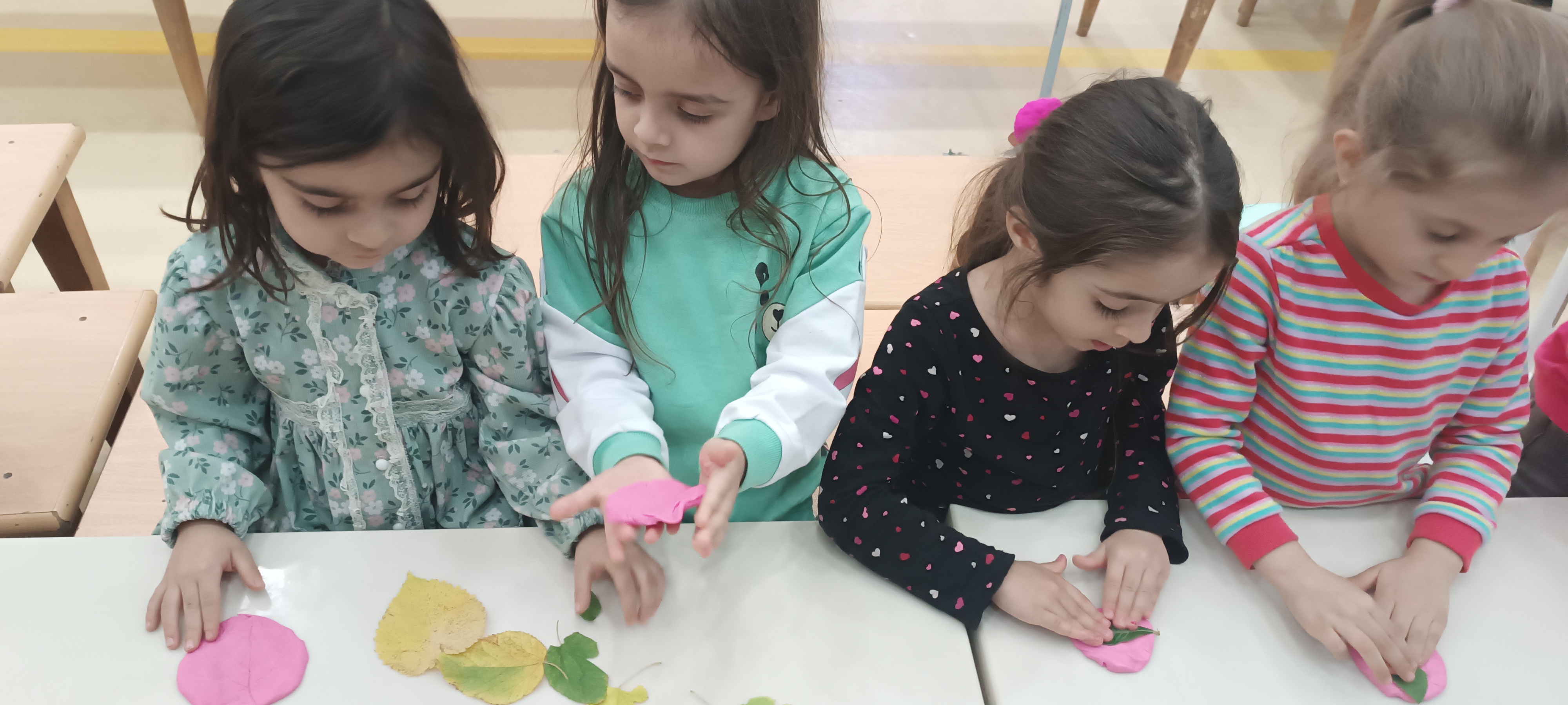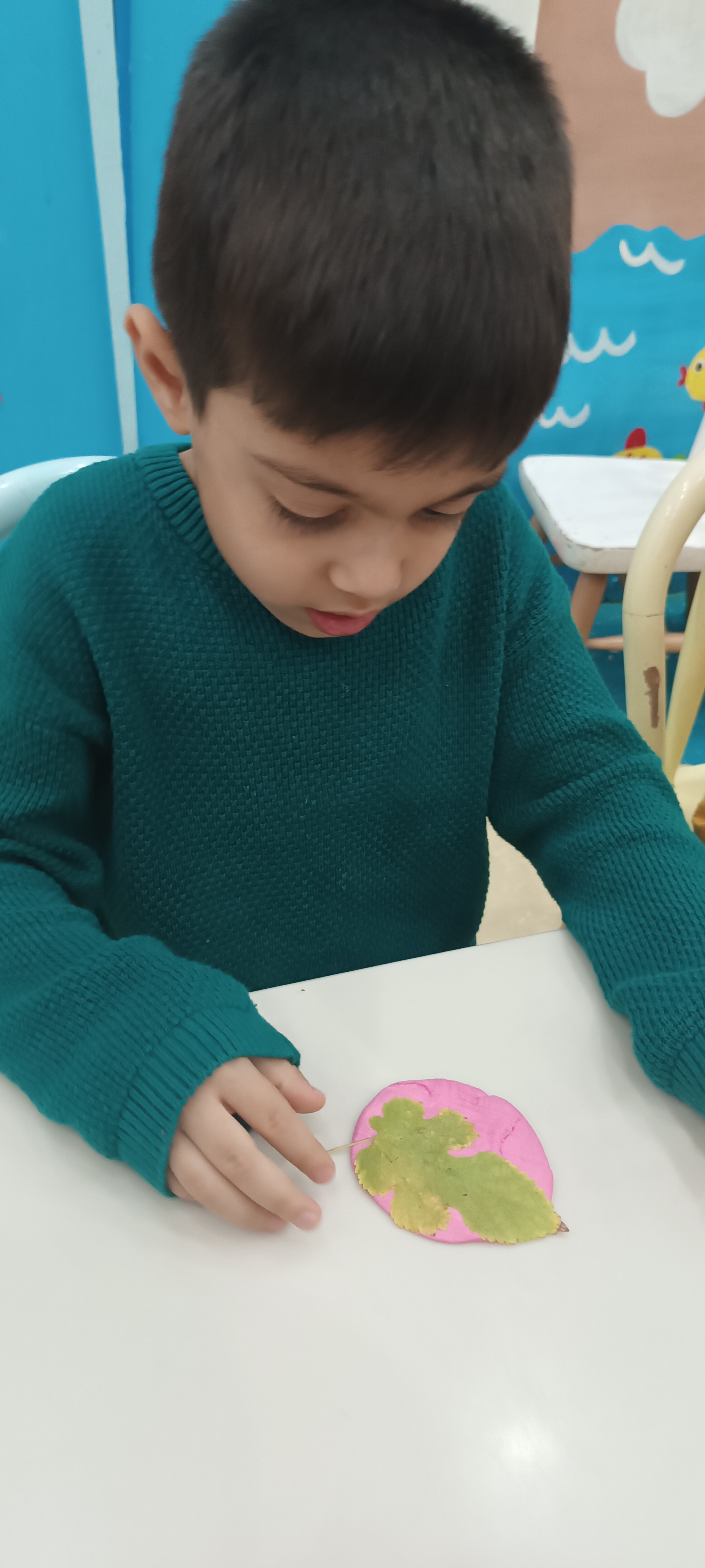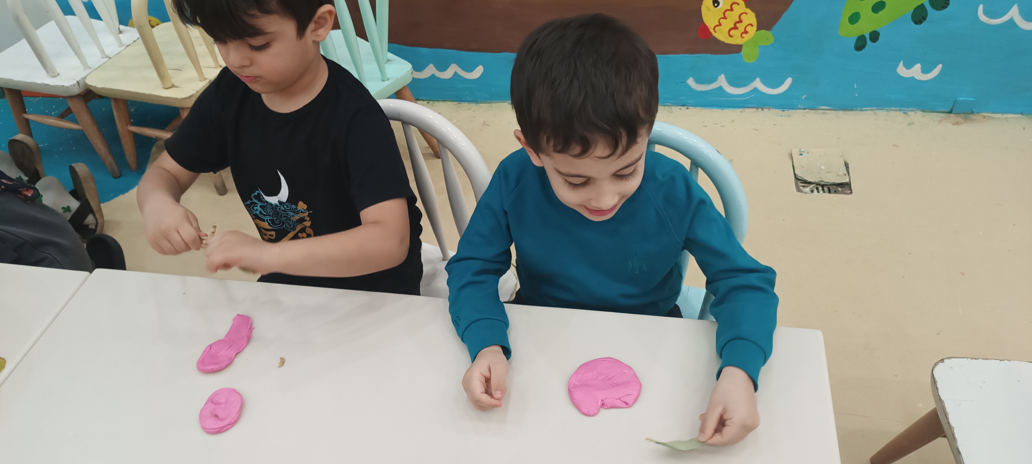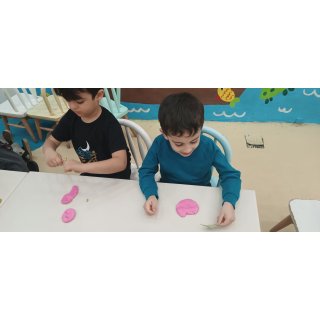 کلاس آخر یعنی کلاس خمیر بازی که این بار خاله خودش برای ما با کمک ما با چسب چوب رنگ و وازلین و اردذرت خمیر بازی درست کرد و با برگ عکس برگ ها روی آن چاپ کردیم بعد هرکس هرچیزی که دوست داشت درست کرد.