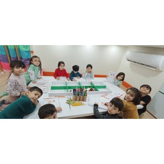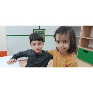 کلاس بعدی ما محاسن بود با خاله هانیه مهربان که برامون اذان پخش کرد در مورد نماز خواندن صحبت کردیم و نمادین نماز خواندیم و جایزه شکلات رنگی رنگی خوردیم و در اخر صف نماز جماعت رو نقاشی کشیدیم.🖼️