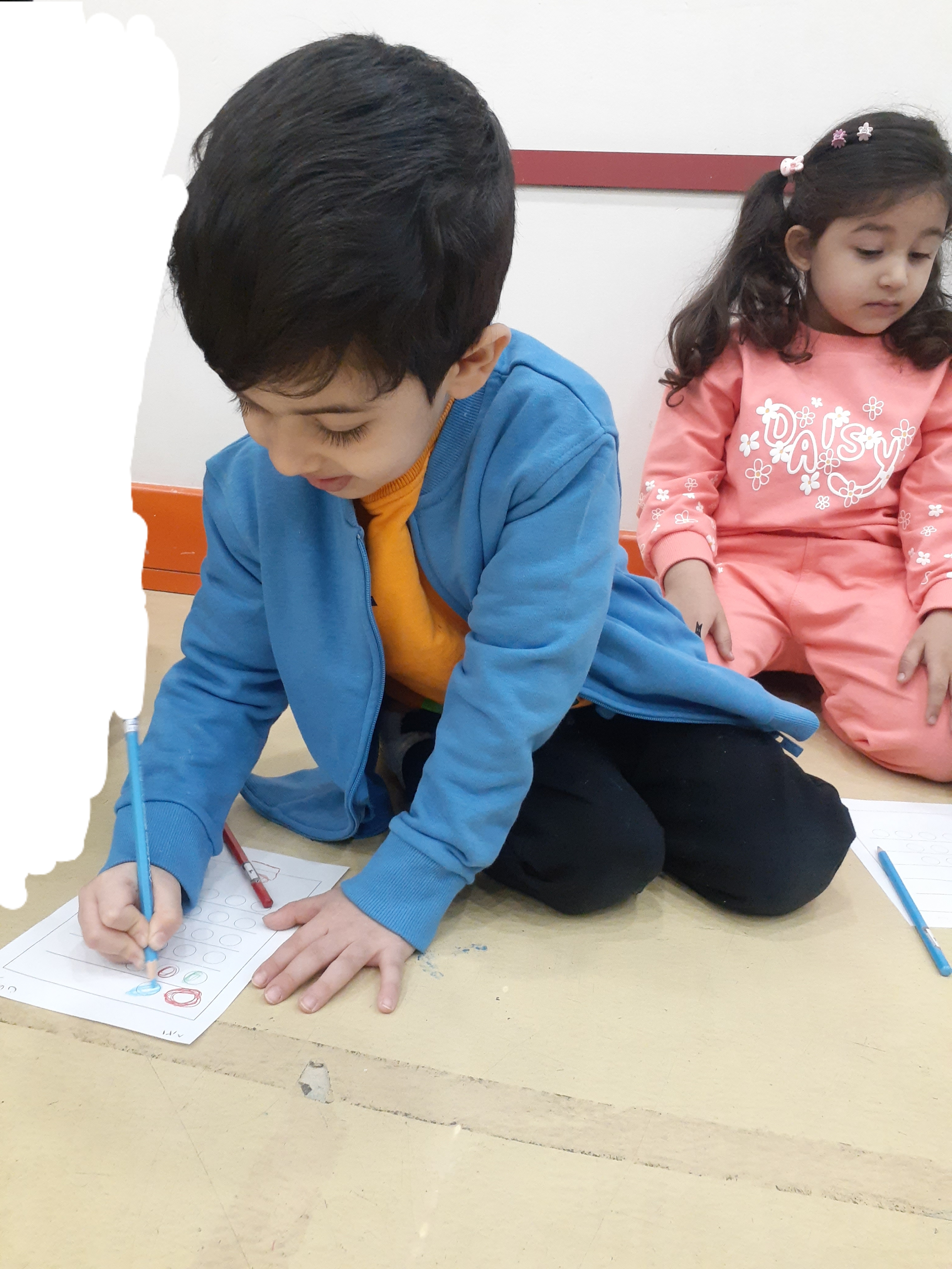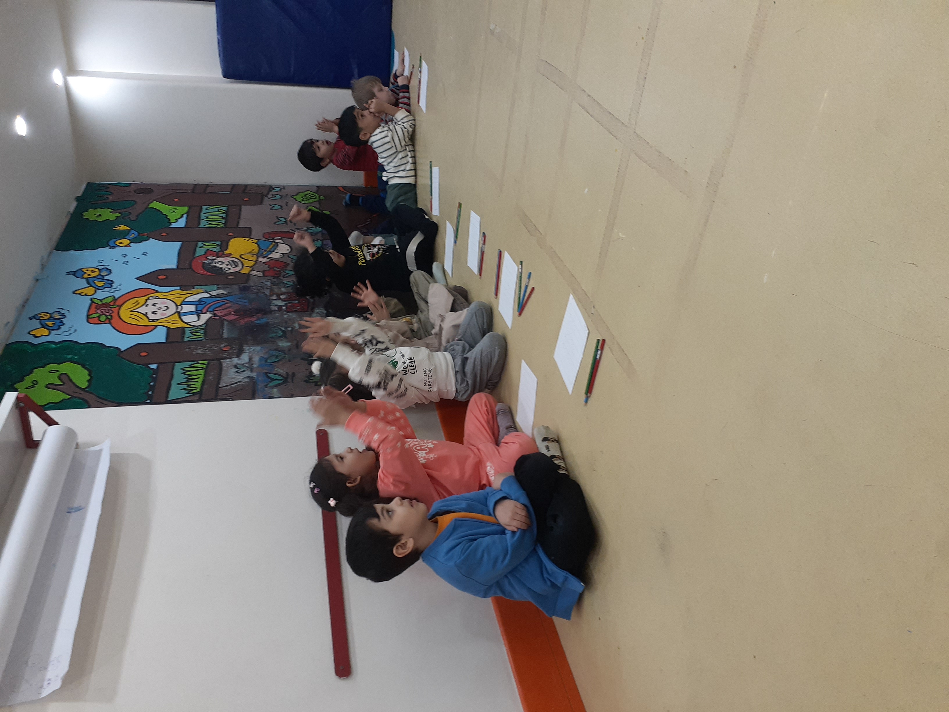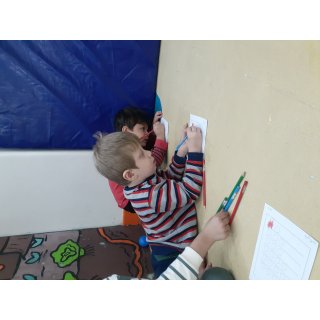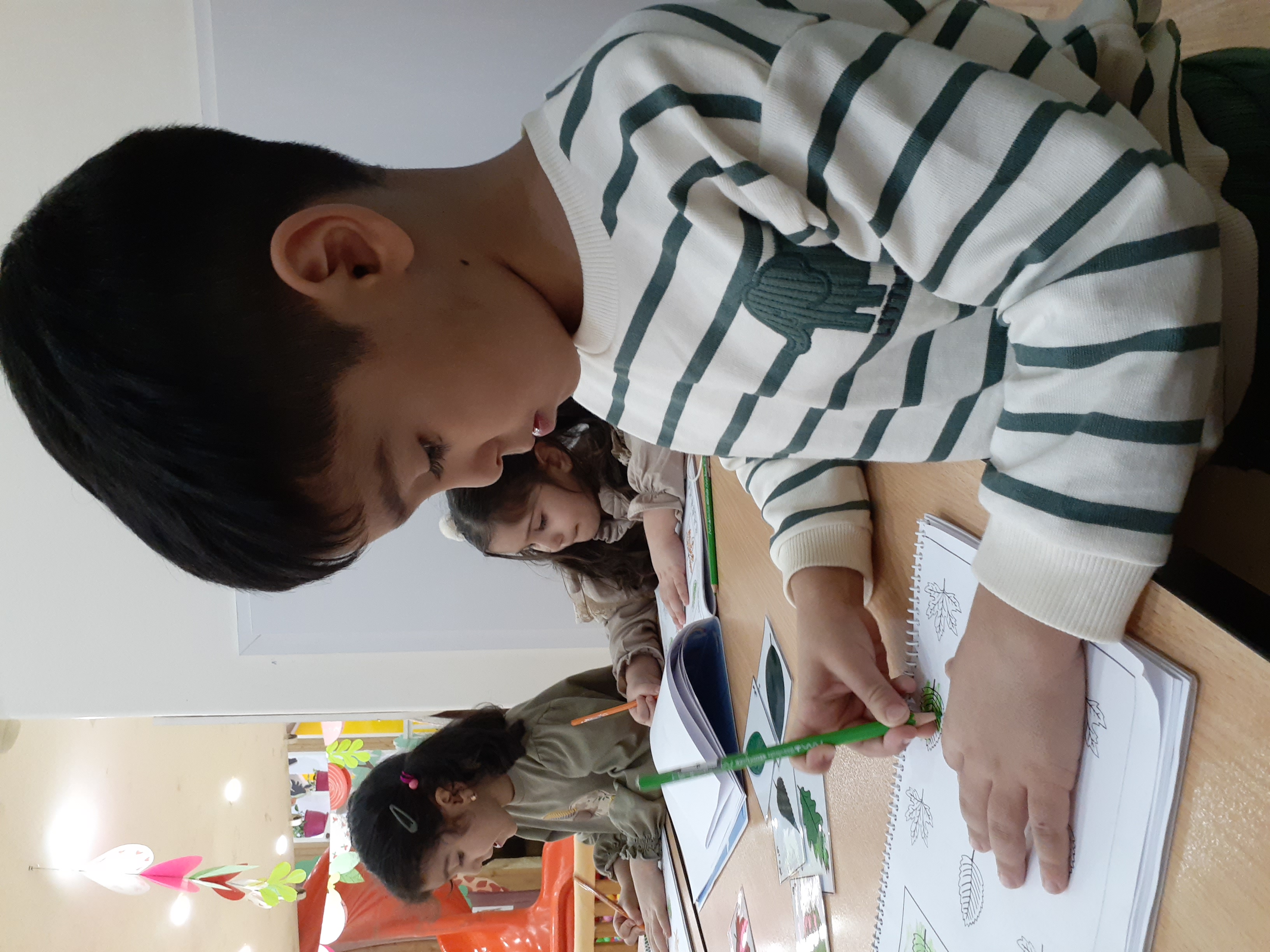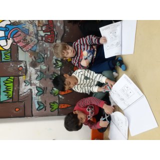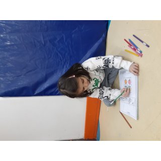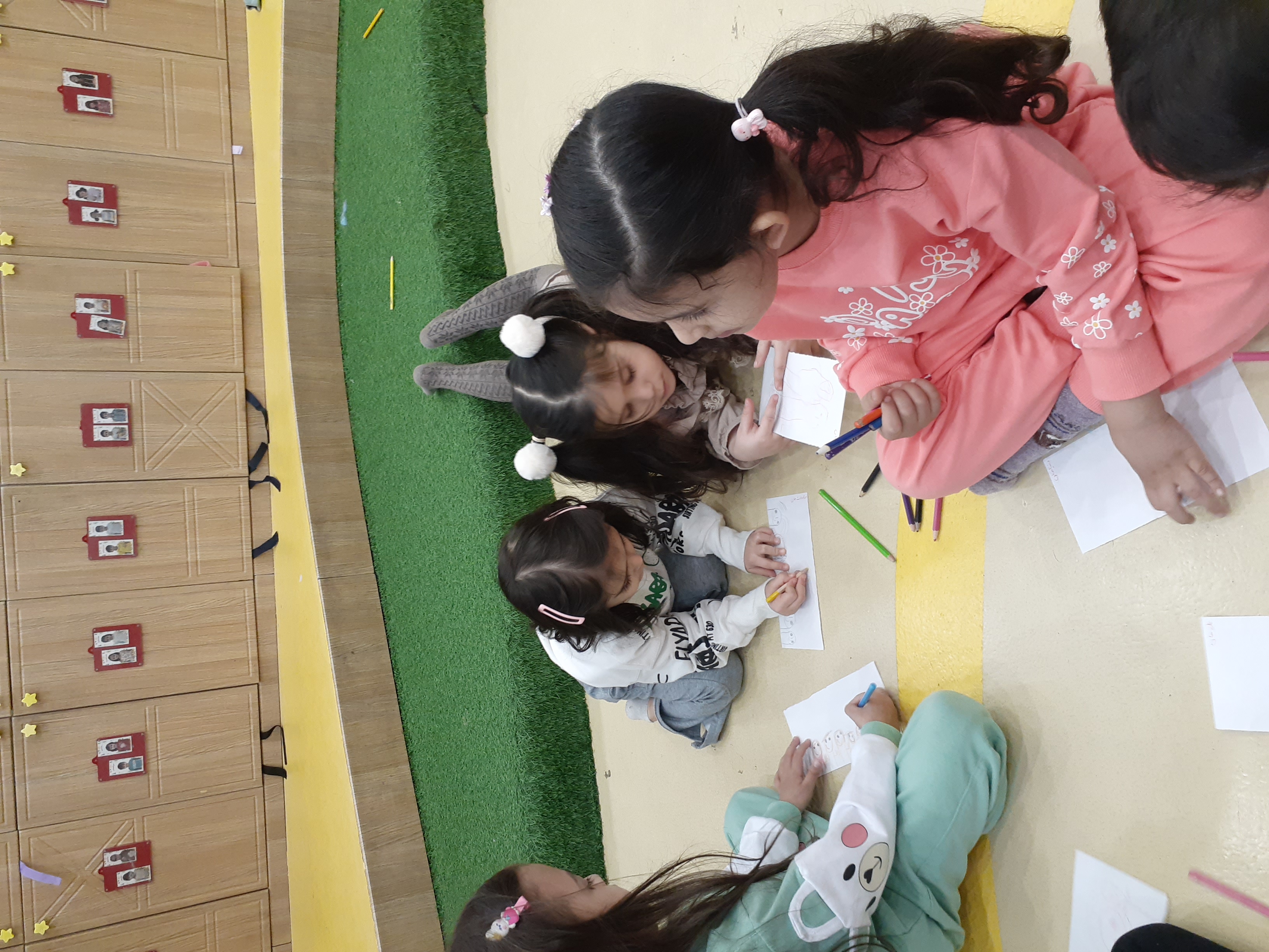 محاسن: امروز خاله هانیه ایستادن در صف نماز جماعت رو یاد دادند، اذان پخش شد. یادگرفتن بین دو نماز دعا کنند و سجده ی شکر به جا بیاورند. در آخر هم جایزه اسمارتیز رنگی رنگی گرفتند🤩 ایستادن در صف نماز جماعت رو نقاشی کردند.