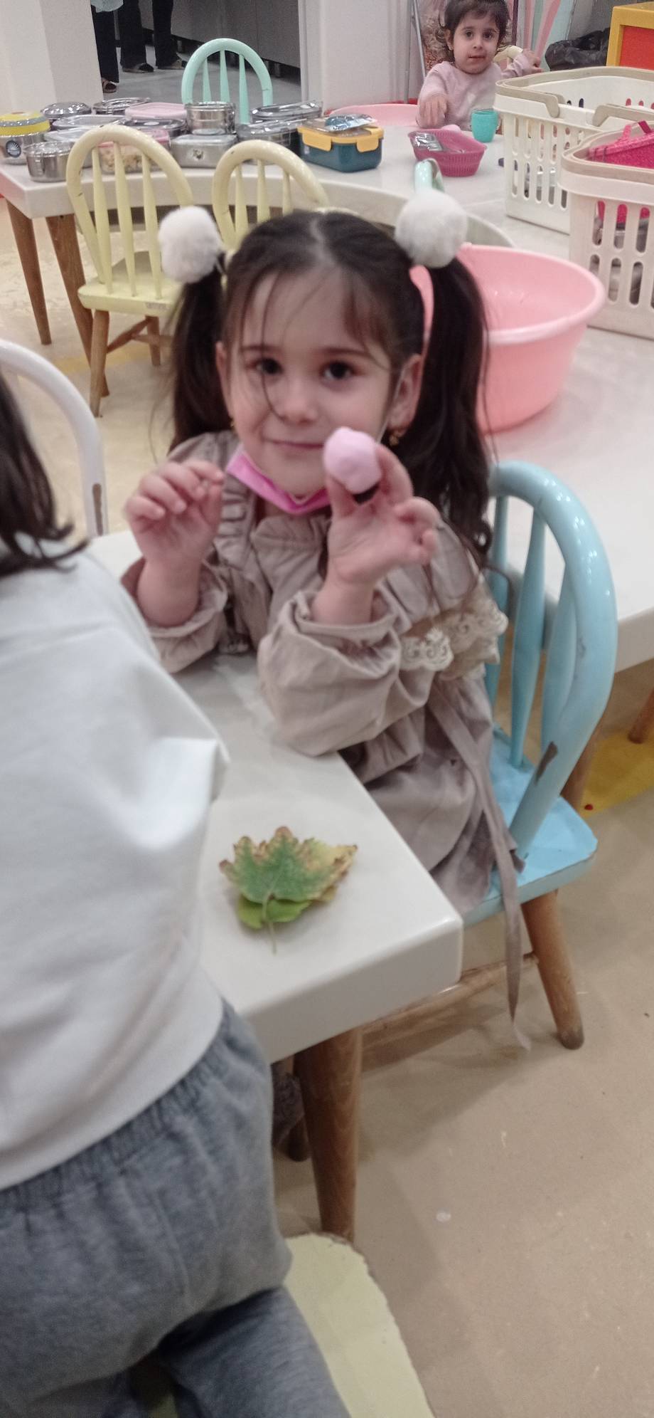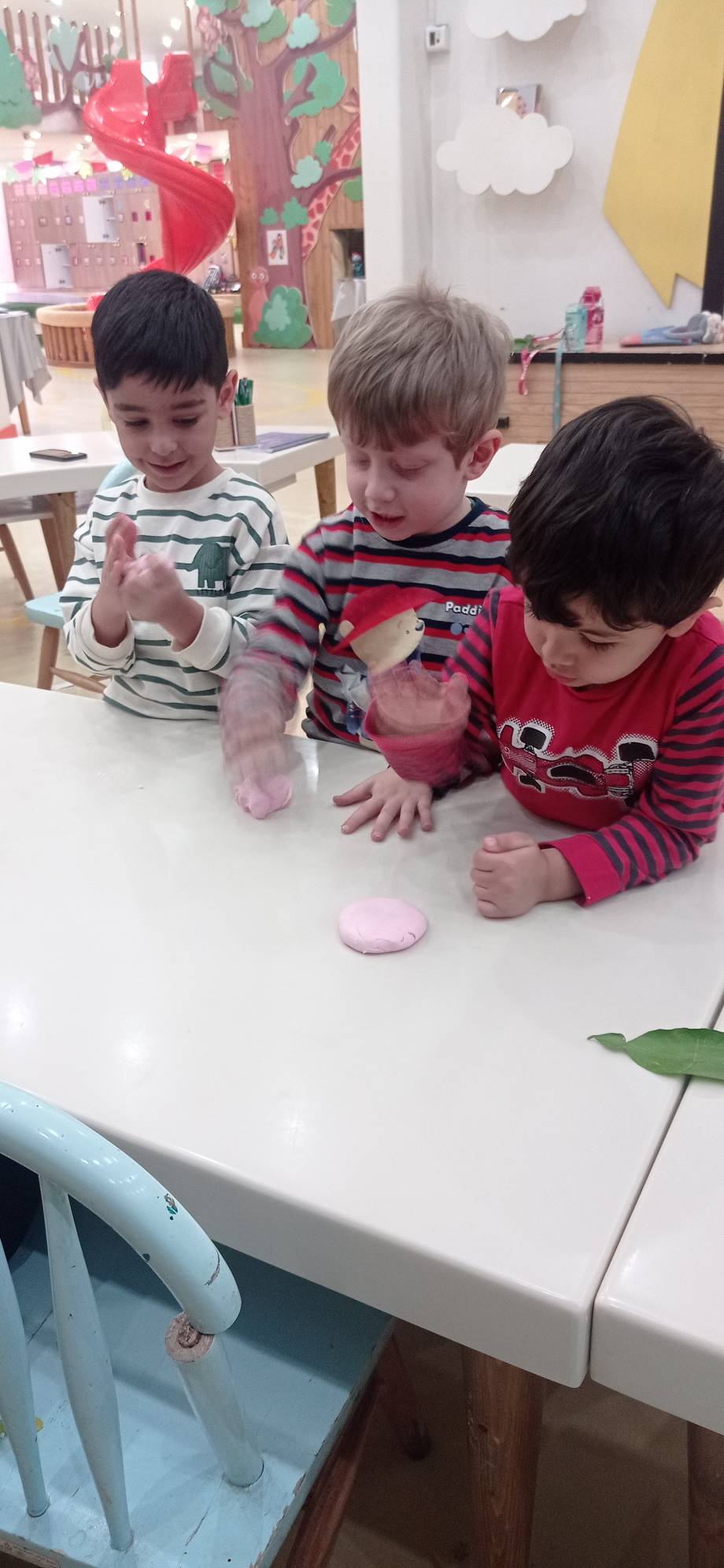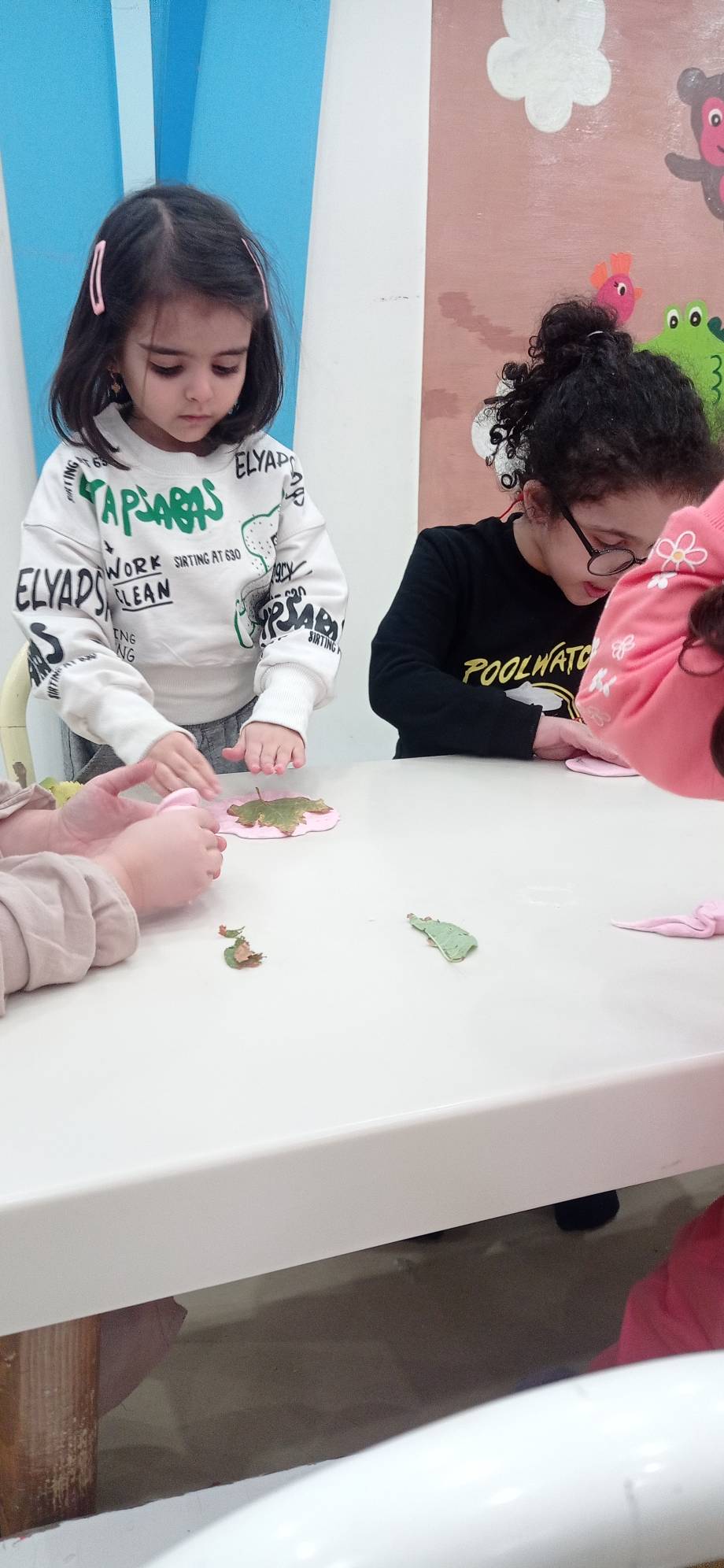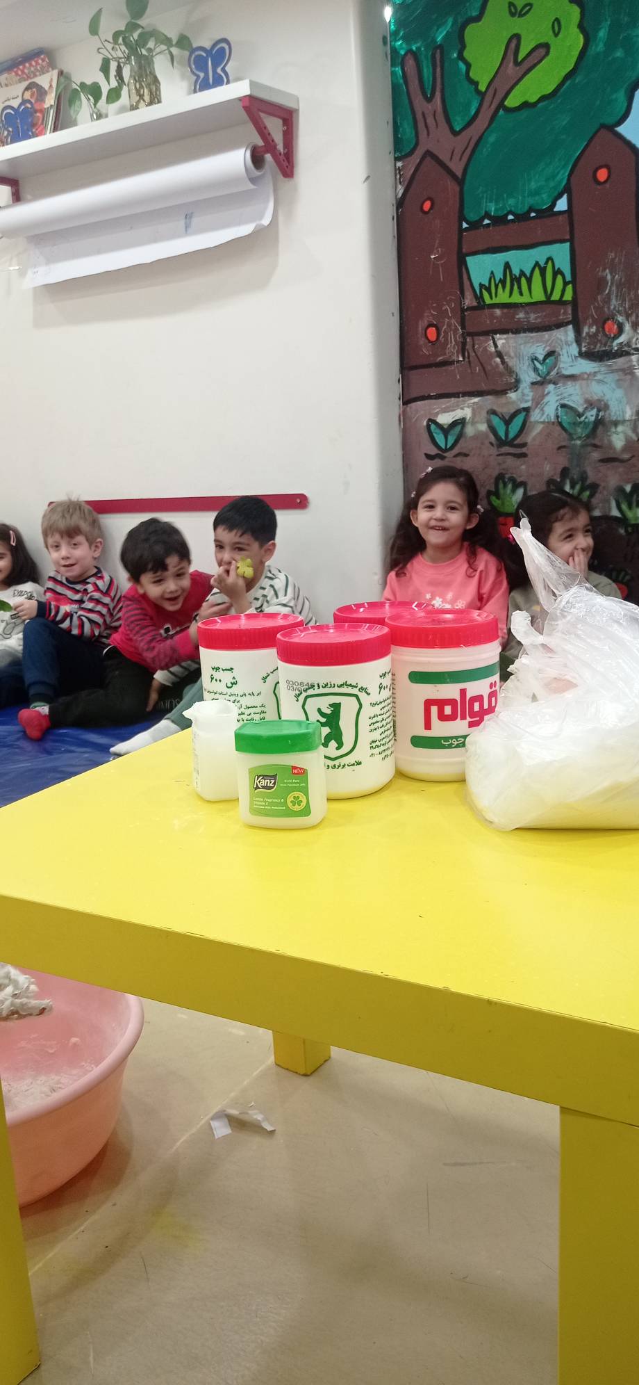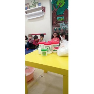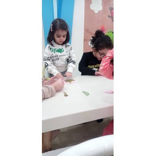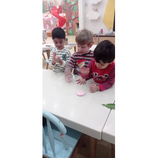 شهرک خمیر بازی داشتیم و خودمون با (نشاسته ذرت ،چسب چوب، وازلین،رنگ ) خمیر بازی درست کردیم و شکل برگ ها رو ، روی آن ها مینداختیم و در آخر با خمیرها بازی کردیم.😍