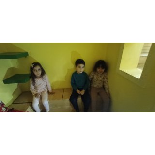 حالا برای تجدید انرژی رفتیم سراغ خوردن ناهارهای خوشمزه مان نوش جان کردیم🍗🍗🍔🍖 و رفتیم سراغ کلاس بعدی یعنی کلاس سخنوری با خاله ریحانه مهربان که این بار برای ما یک قصه تعریف کردند و شخصیتهای قصه را روی دیوار در اتاقی با نور کم نشان دادیم🌑🌒🌓