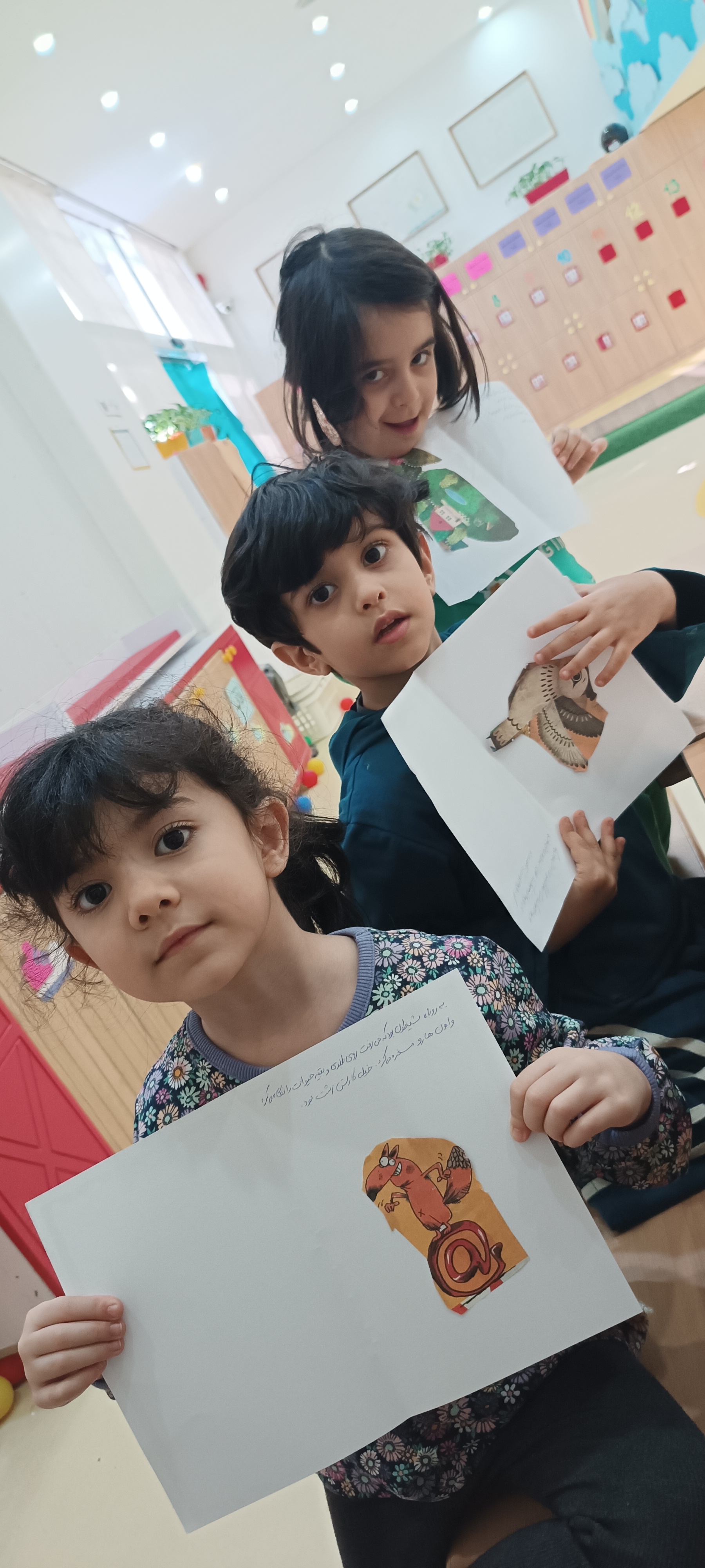 کلاس بعدی ما قصه کاغذ و قیچی بود که امروز متناسب با موضوع هفته مان با کمک خاله یک کتاب نوشتیم!و خودمون صفحش رو رنگ امیزی کردیم یعنی نویسنده این کتاب ماییم🤩
