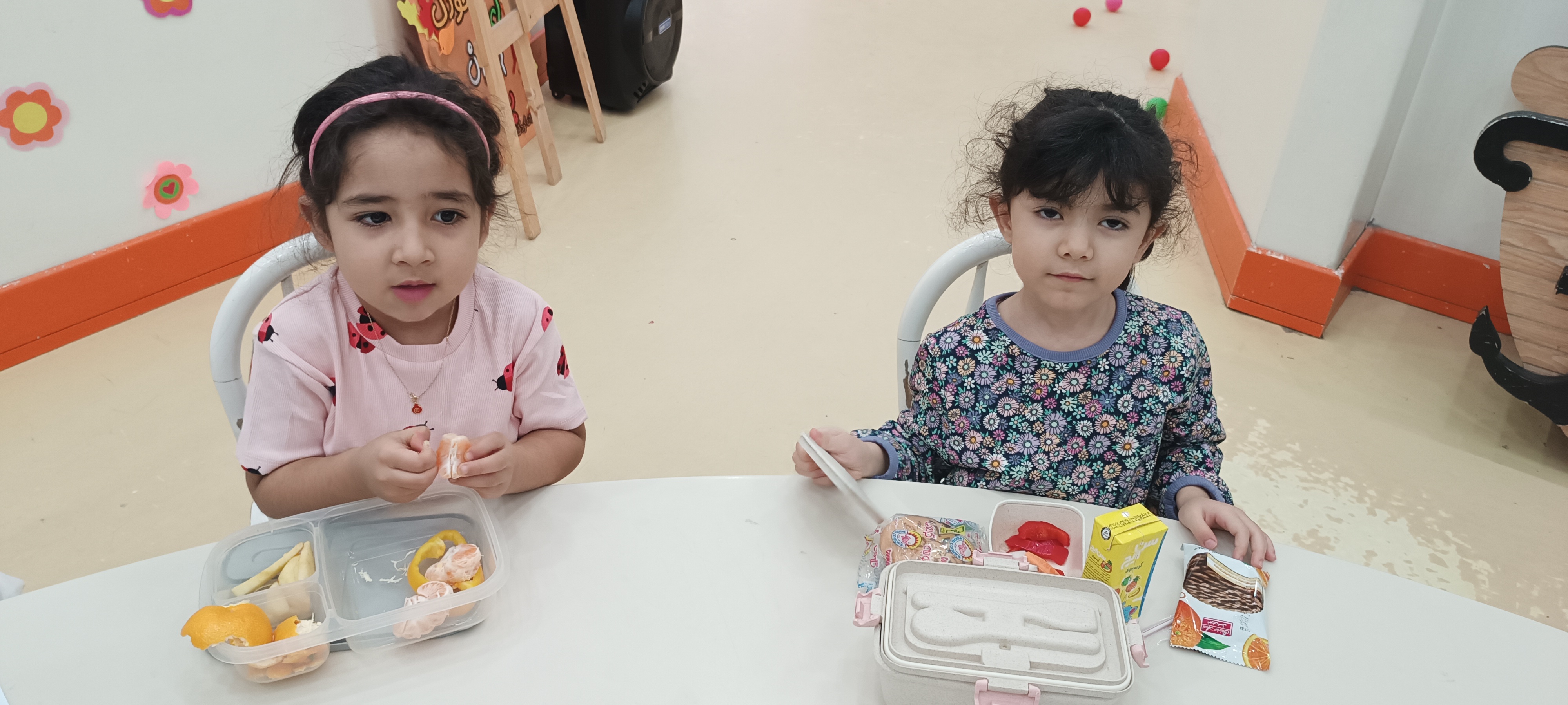 حالا نوبت میان وعده خوشم خوشمزه بود یعنی شیرین عسل و میان وعدههایی که مامان باباهای عزیز زحمت کشیدن 🍌🍎🌮