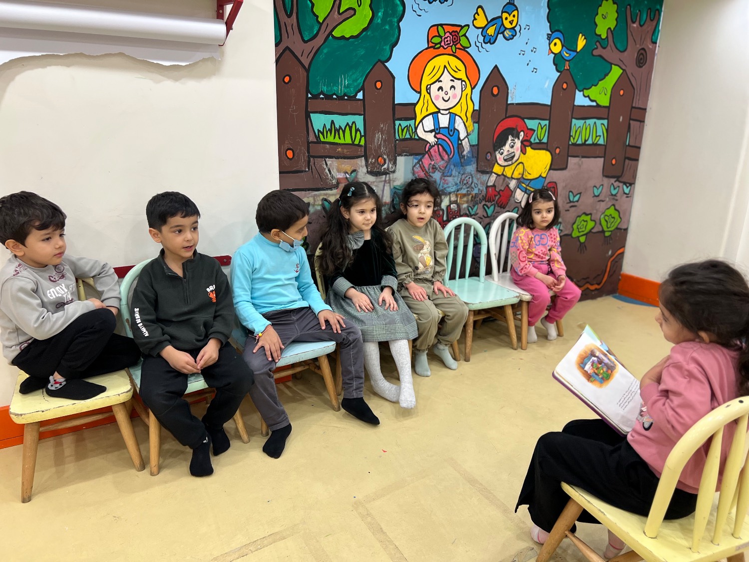 با بچه های گلم به کلاس رفتیم ، حضور غیاب رو انجام دادیم و بعد از گفت و گوی کلاسی مون ، بنیتا جونم یکی از دخترای گل کلاس ،کتاب داستانی که به همراه داشت رو برای بچه ها خواند(فرانکلین می بخشد)😍