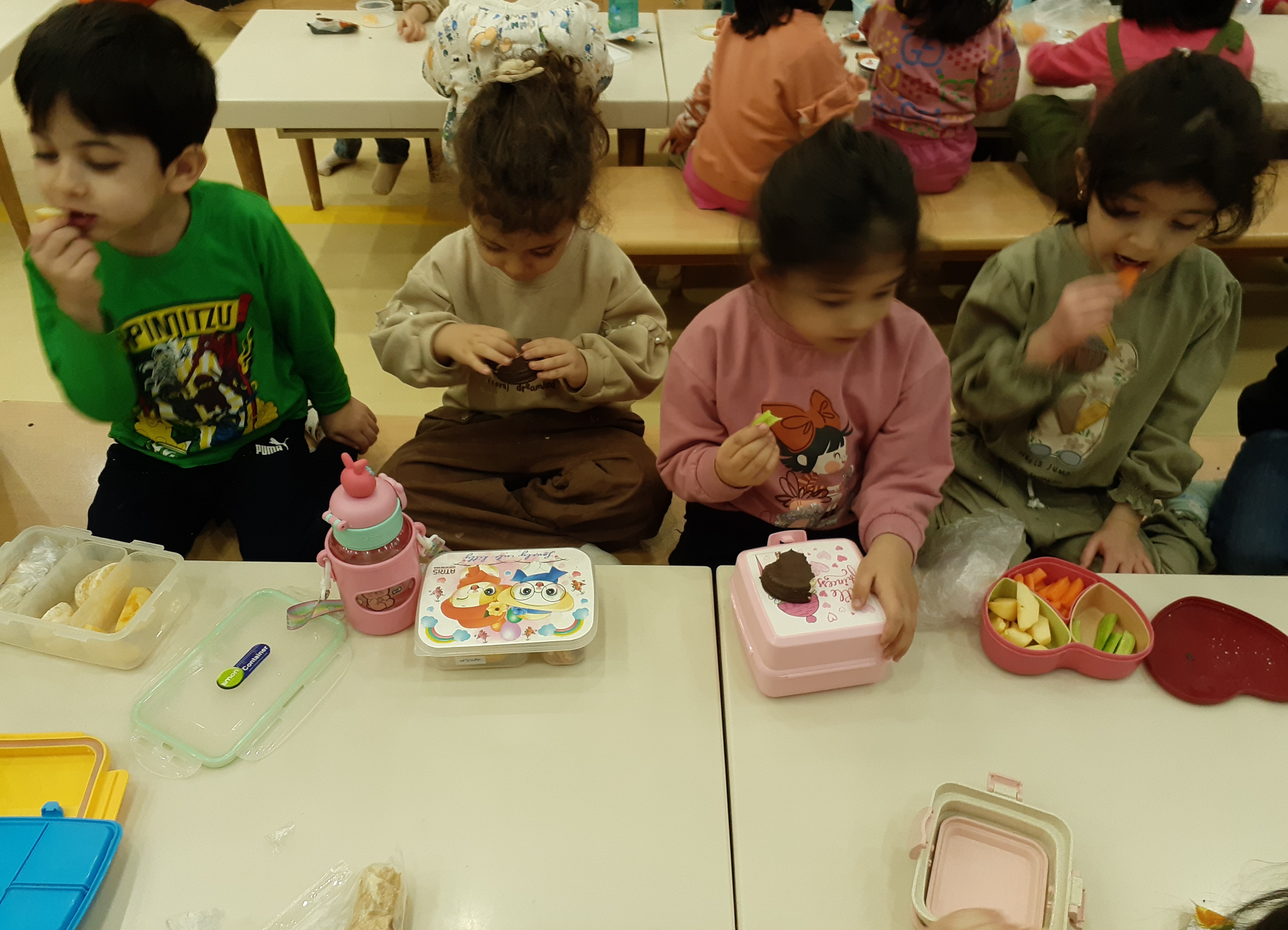 وقت زنگ تفریح رسید و رفتیم بازی 😍 بعدش هم دستها شسته و میان وعده هاشون رو میل کردند.( شیرین عسل)