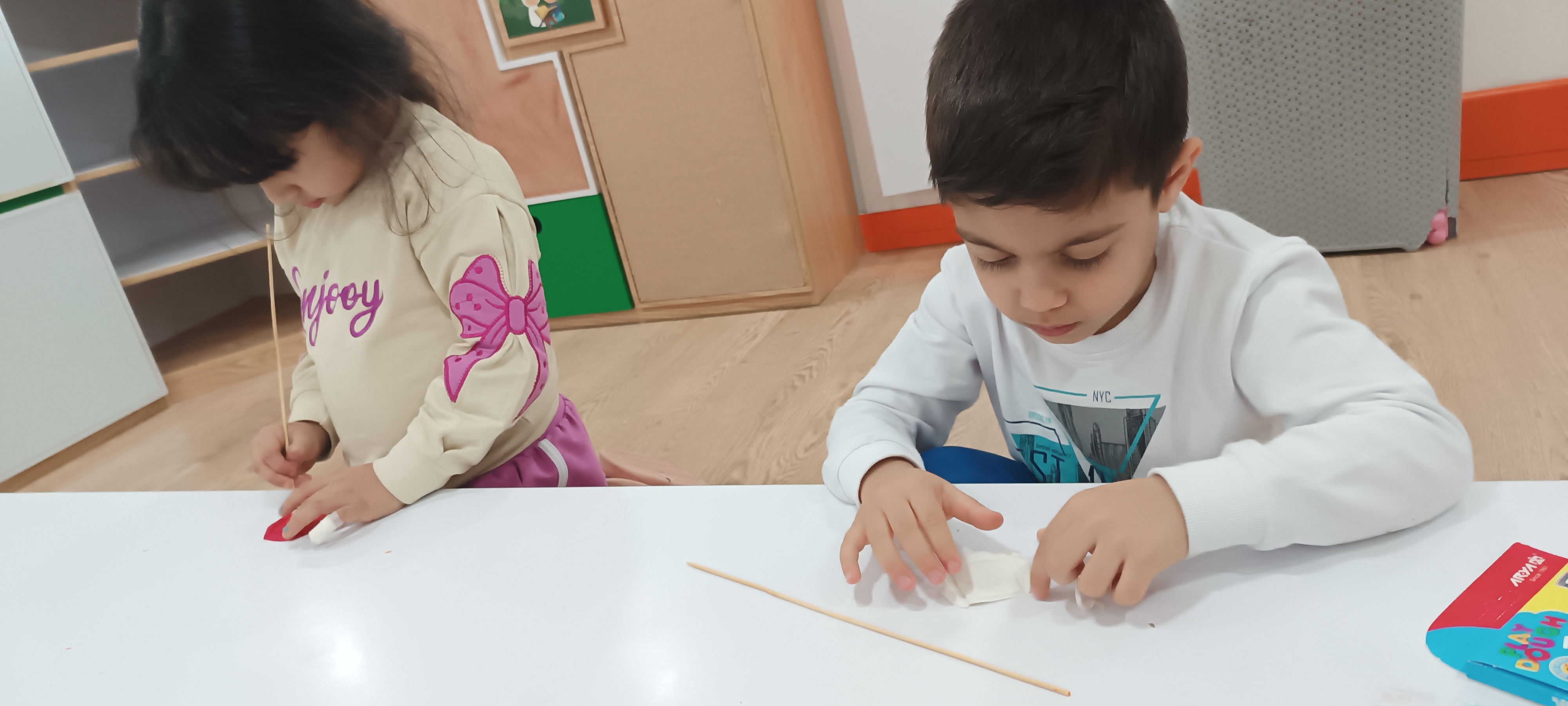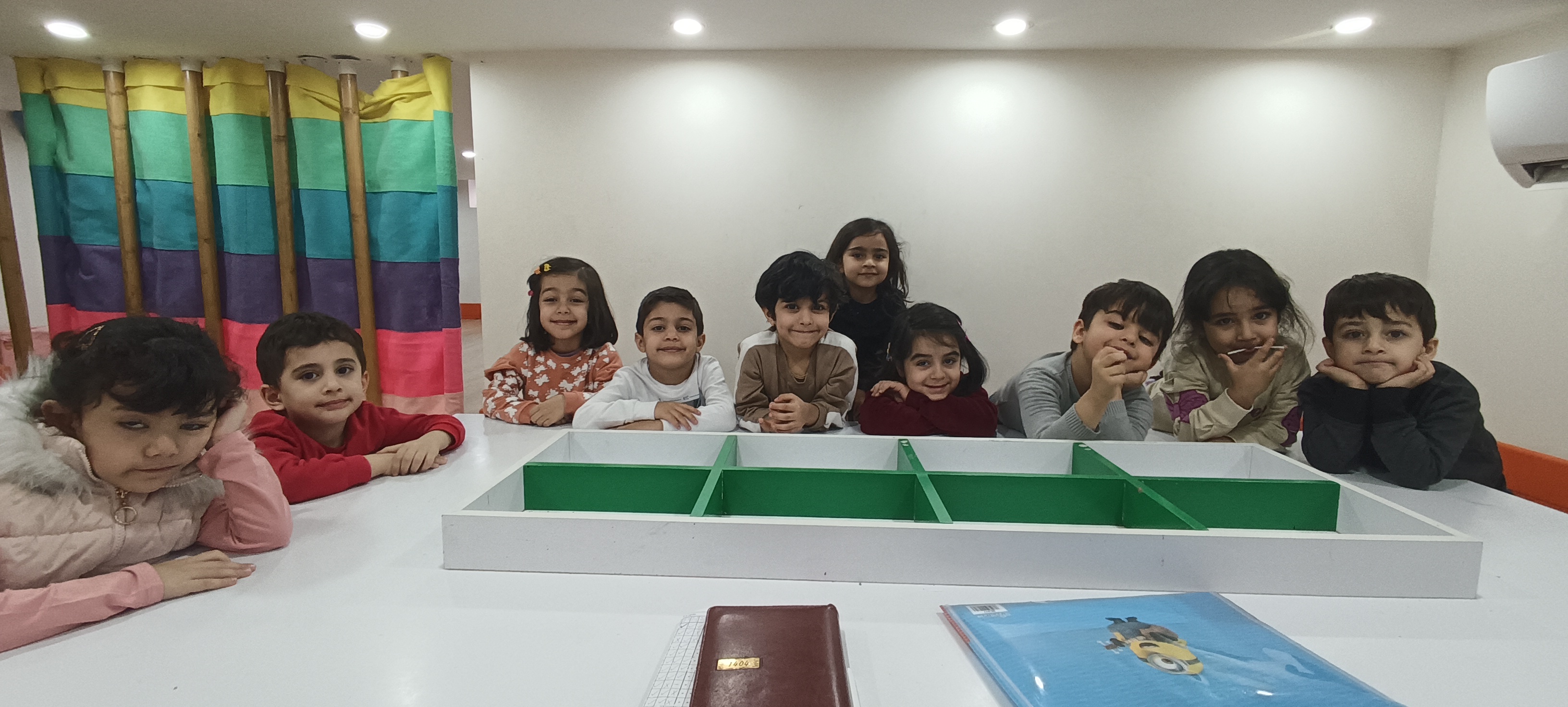 کلاس آخر یعنی کلاس خمیر بازی که که با کمک خمیر یک مربع درست کردیم که کتاب ما بود و روی جلد آن را با سیخهای چوبی تزیین کردیم و نقاشی کشیدیم.
