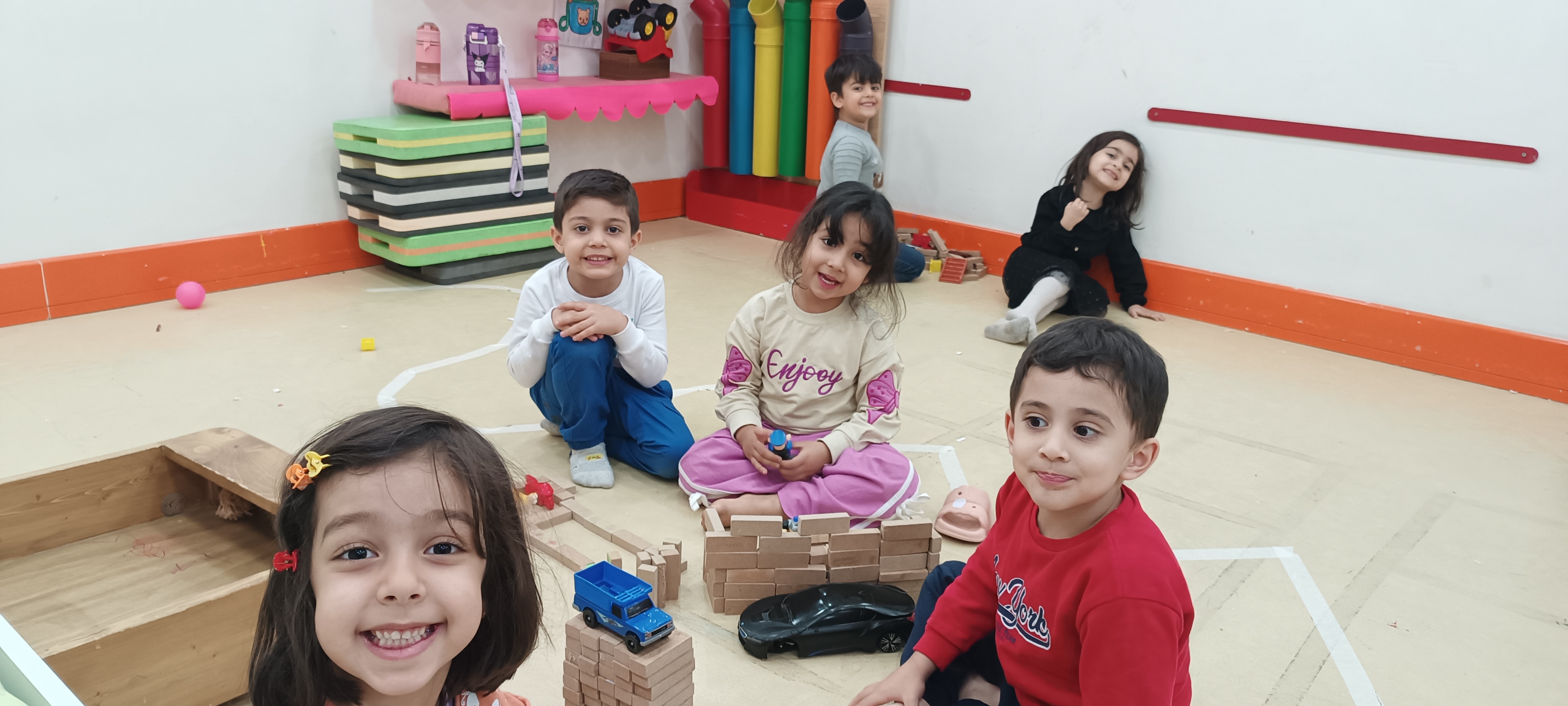 بعد نوبت غذا خوردن بود ناهارهای مان را نوش جان کردیم🍗🥘 و بعد از کمی سرسره بازی رفتیم سراغ کلاس بعدی یعنی پارک ترافیک 😍با ماشینهایی که همراه خودمان آورده بودیم کلی بازی کردیم 🚗🚙🛻